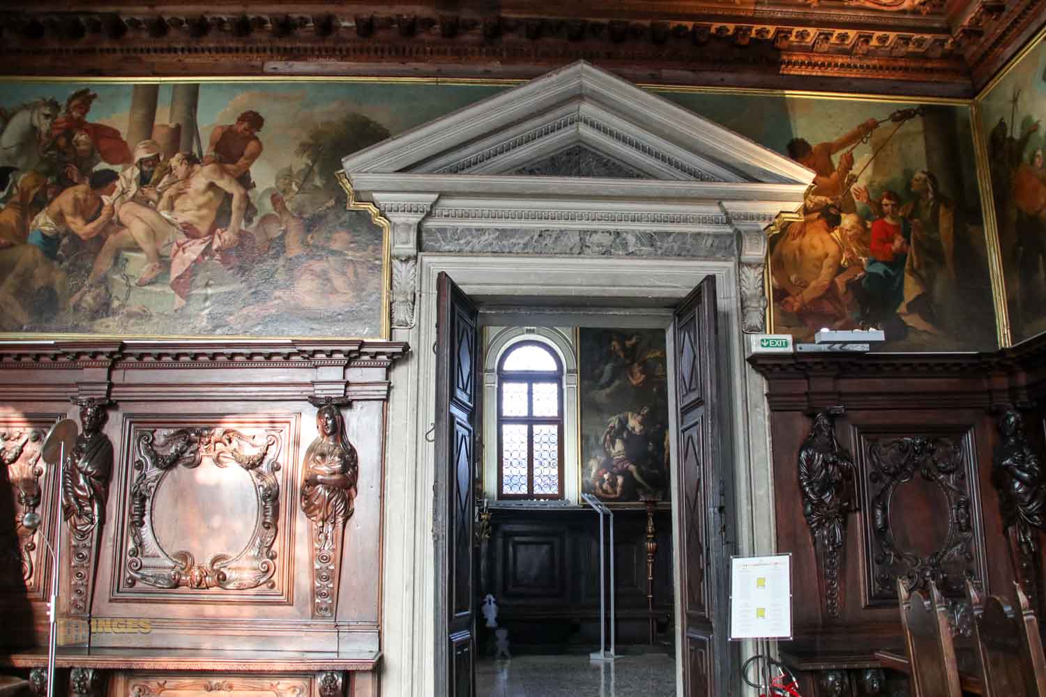 Die Wände im Kapitelsaal der Scuola Grande dei Carmini
