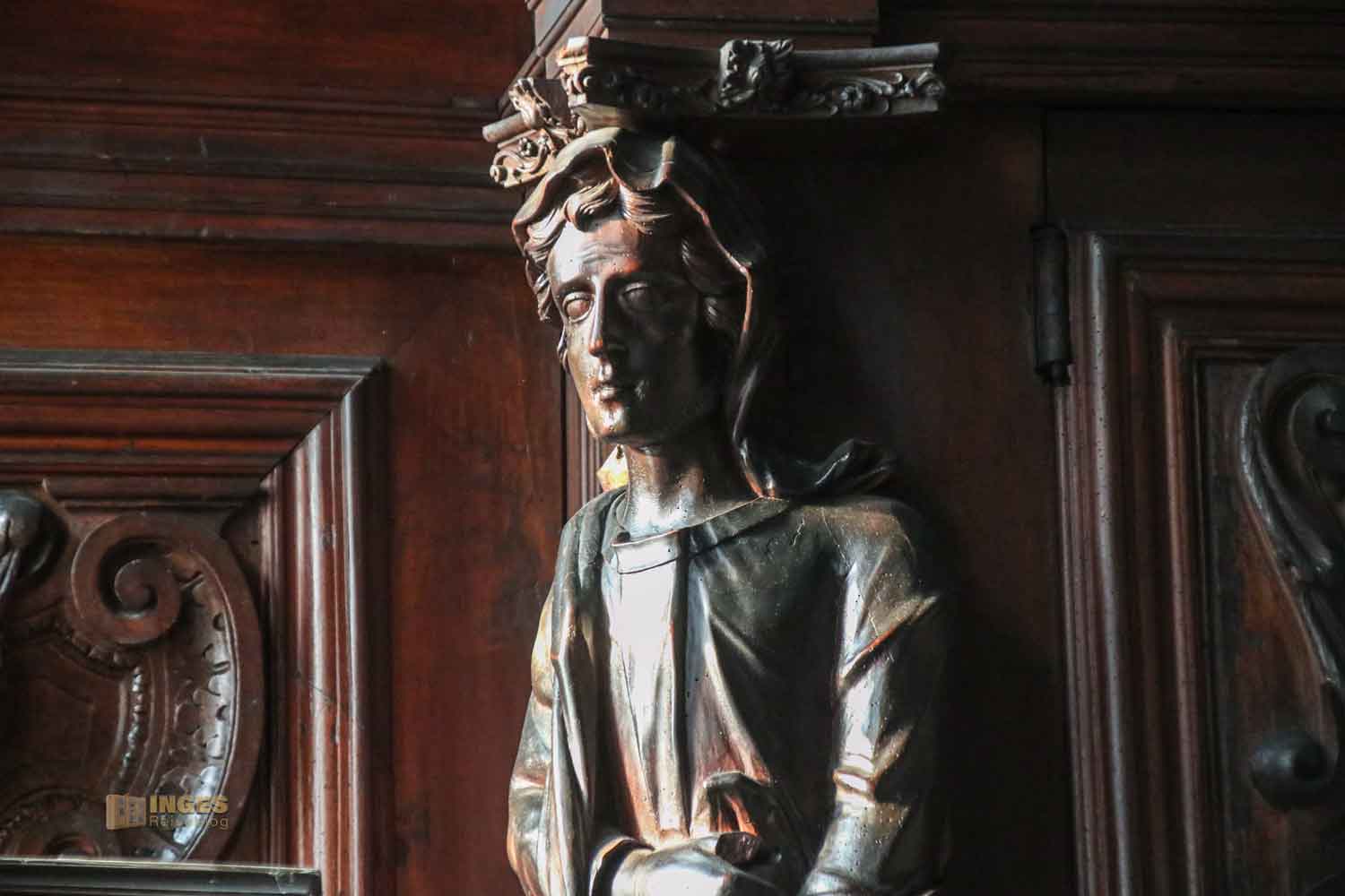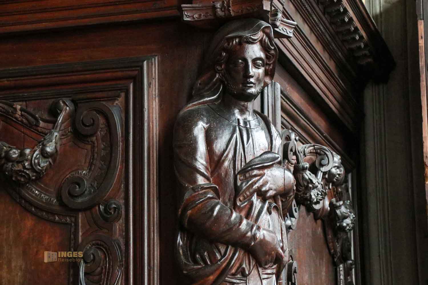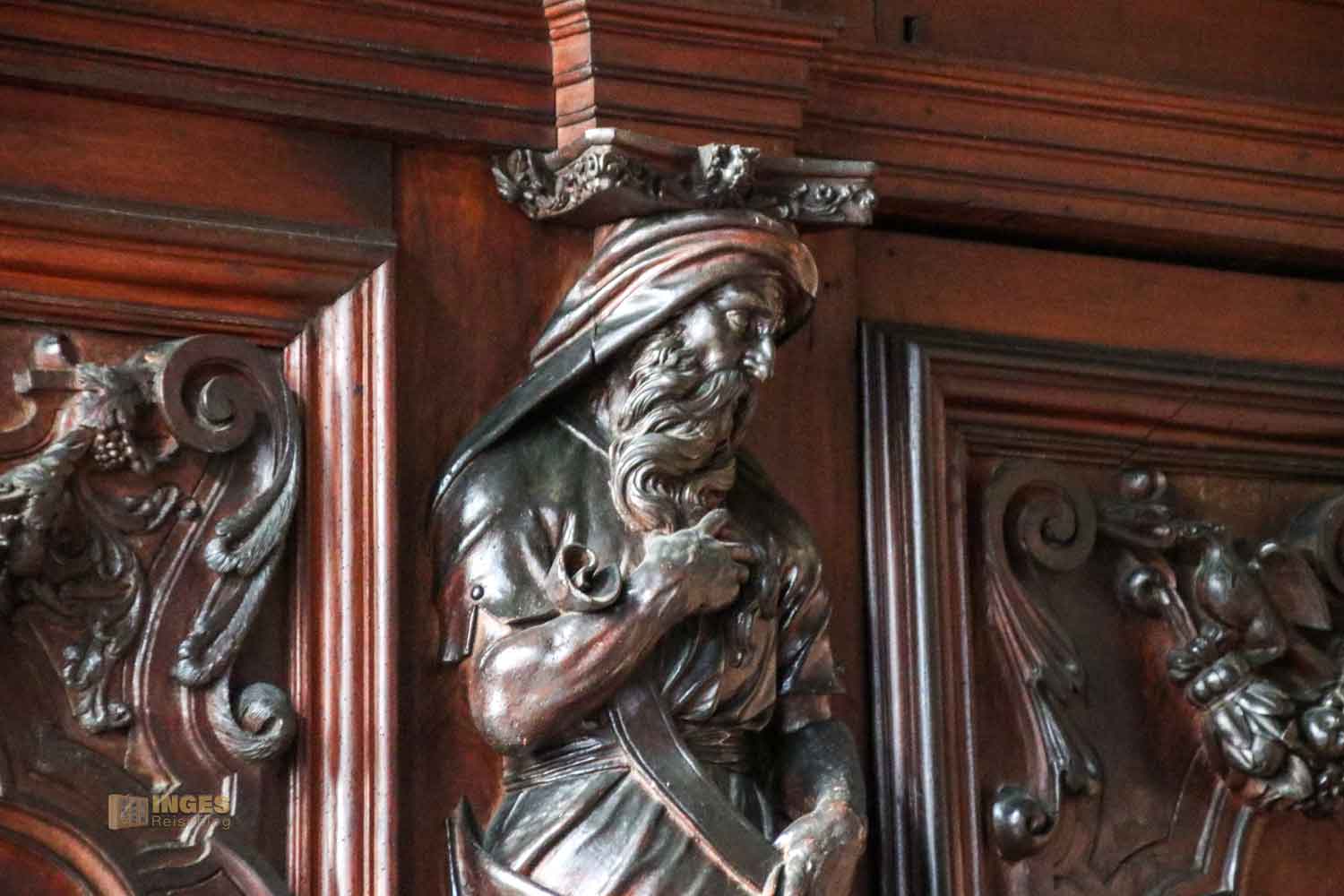 Die Holzfiguren im Archivsaal der Scuola Grande dei Carmini