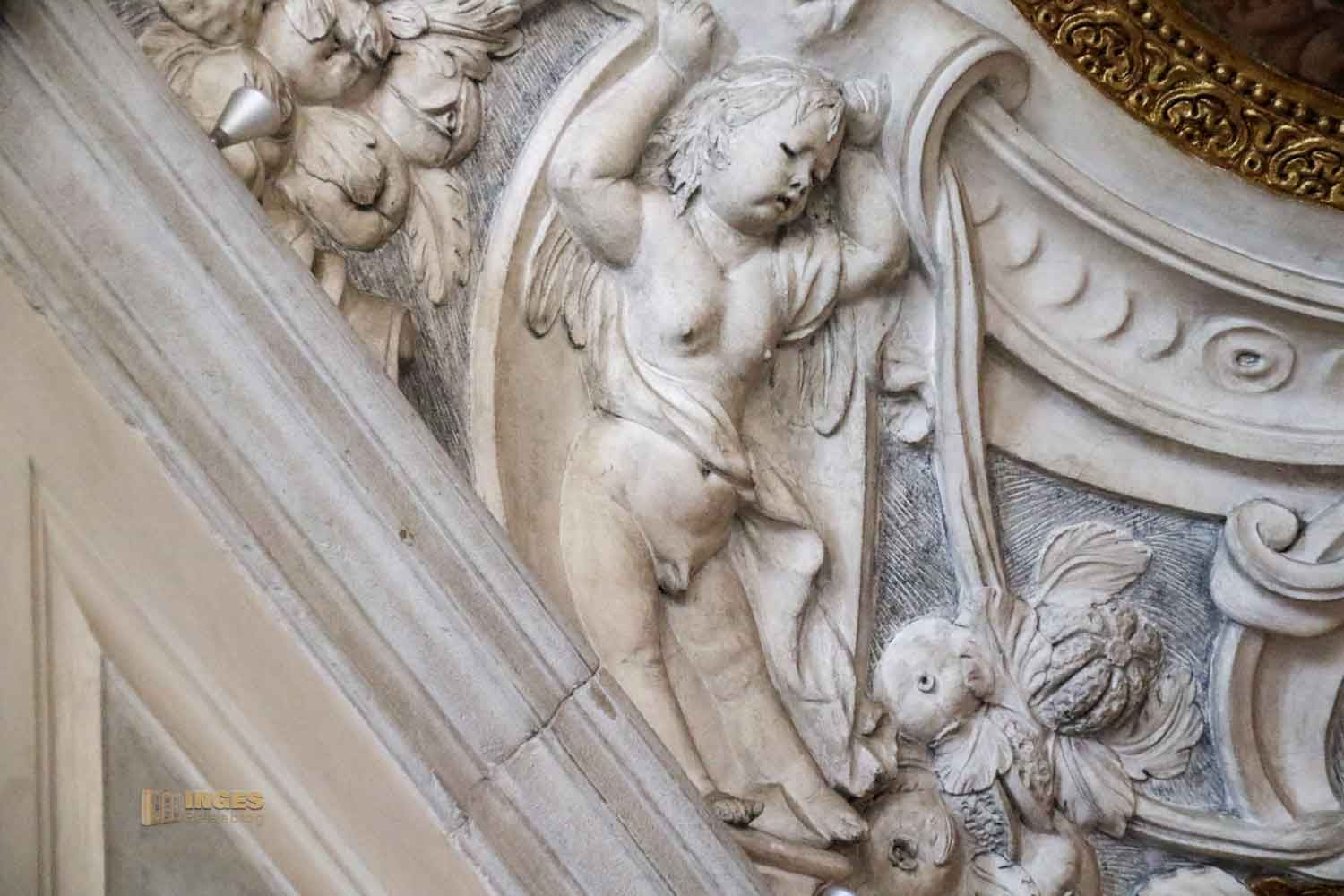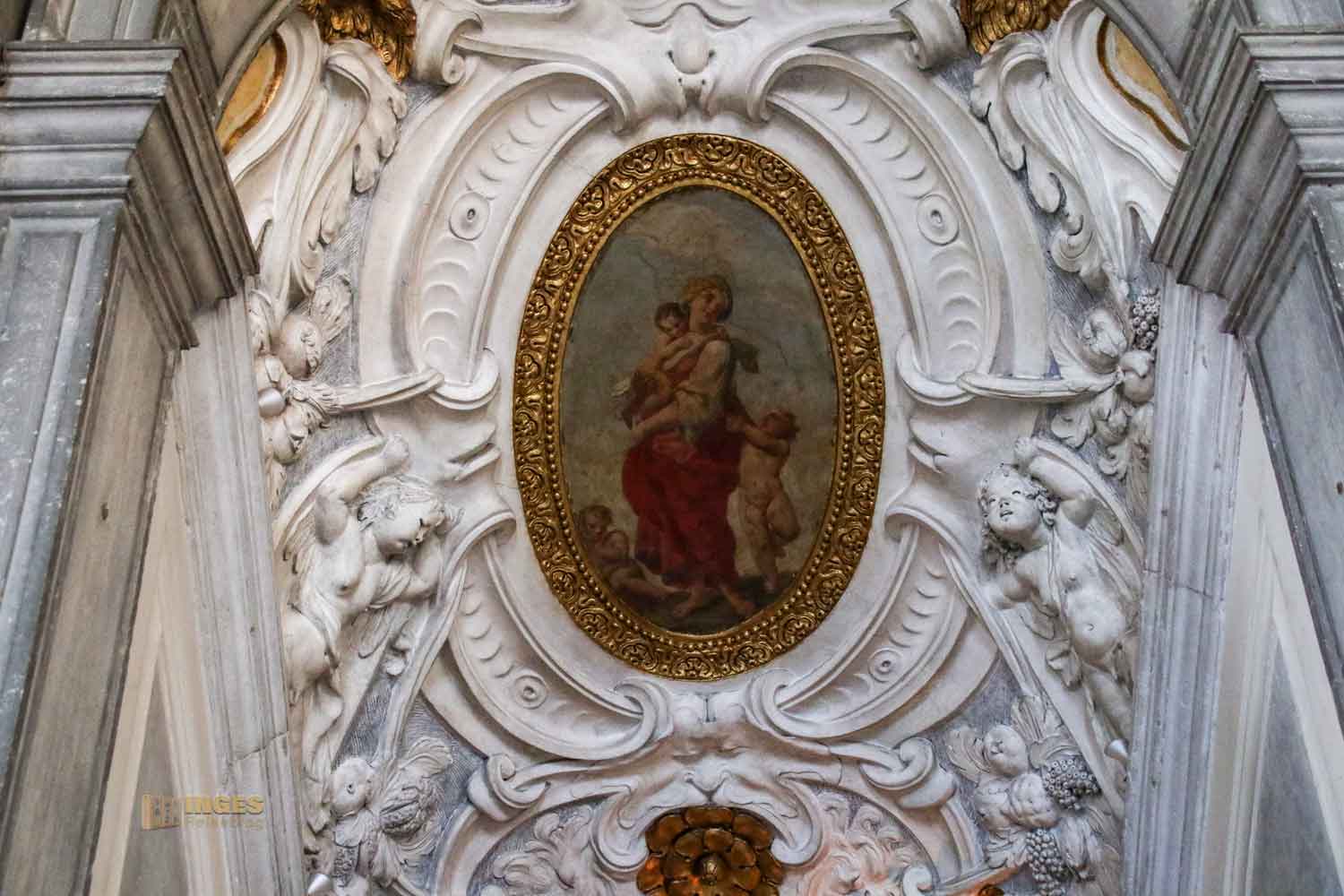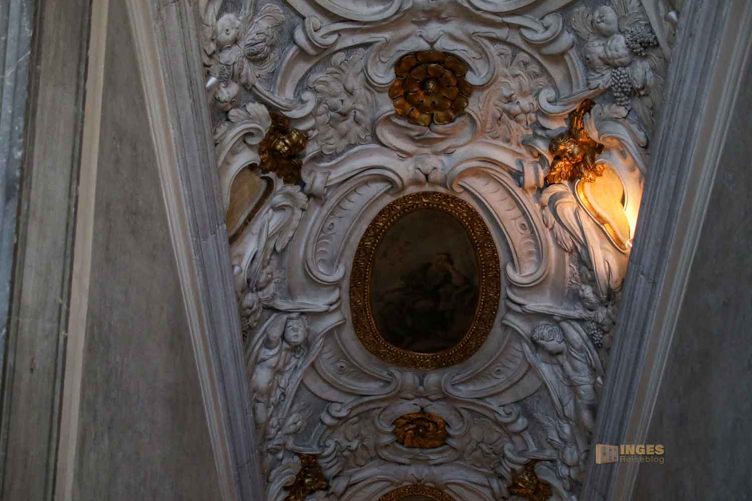 1740 kam um die Gemälde von Stazio der Stuck, der dann von Carpoforo Mazzetti ab 1742 vergoldet wurde.