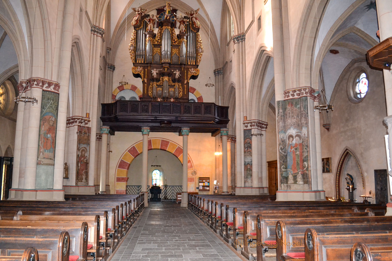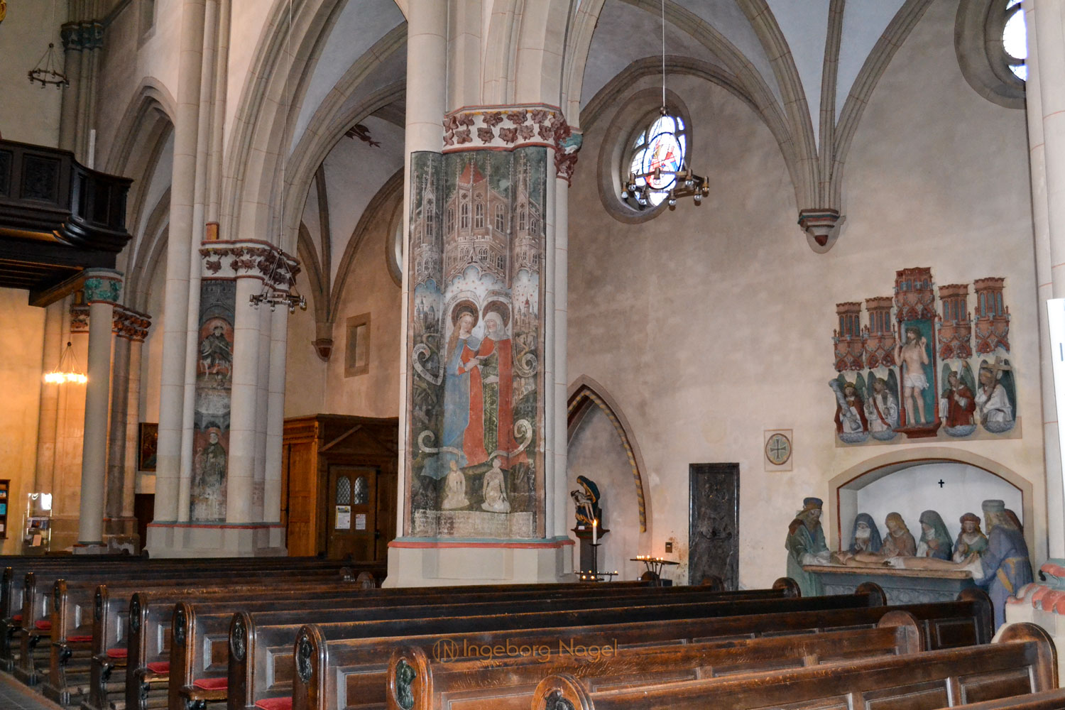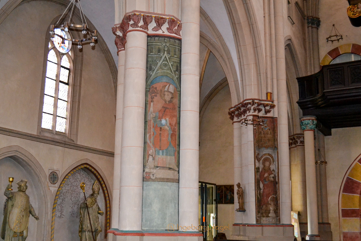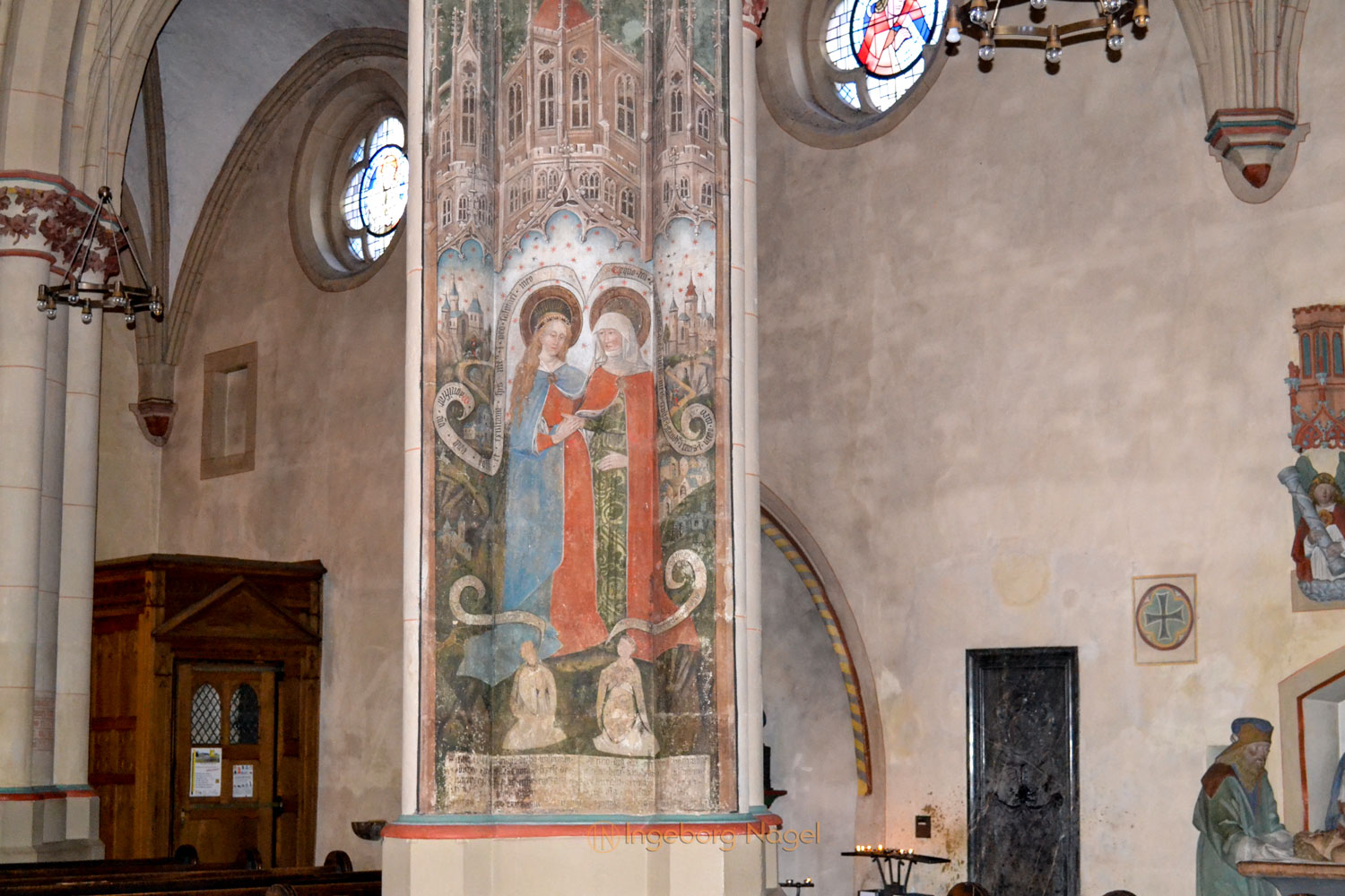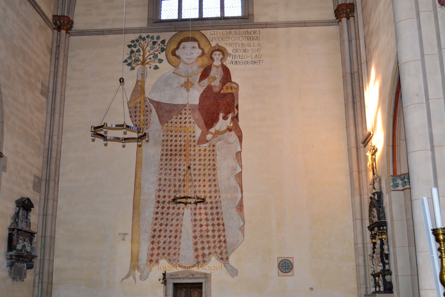 Beeindruckend ist an der Stirnwand des nördlichen Querschiffes das 8 Meter hohe Gemälde des hl. Christophorus mit dem Gotteskind auf dem Arm. Es stammt aus dem 13. Jahrhundert. Ebenso beeindruckend sind die alten Wandmalereien, die bei der vorletzten Indstandsetzung der Kirche sichtbar geworden sind und gesichert werden konnten.