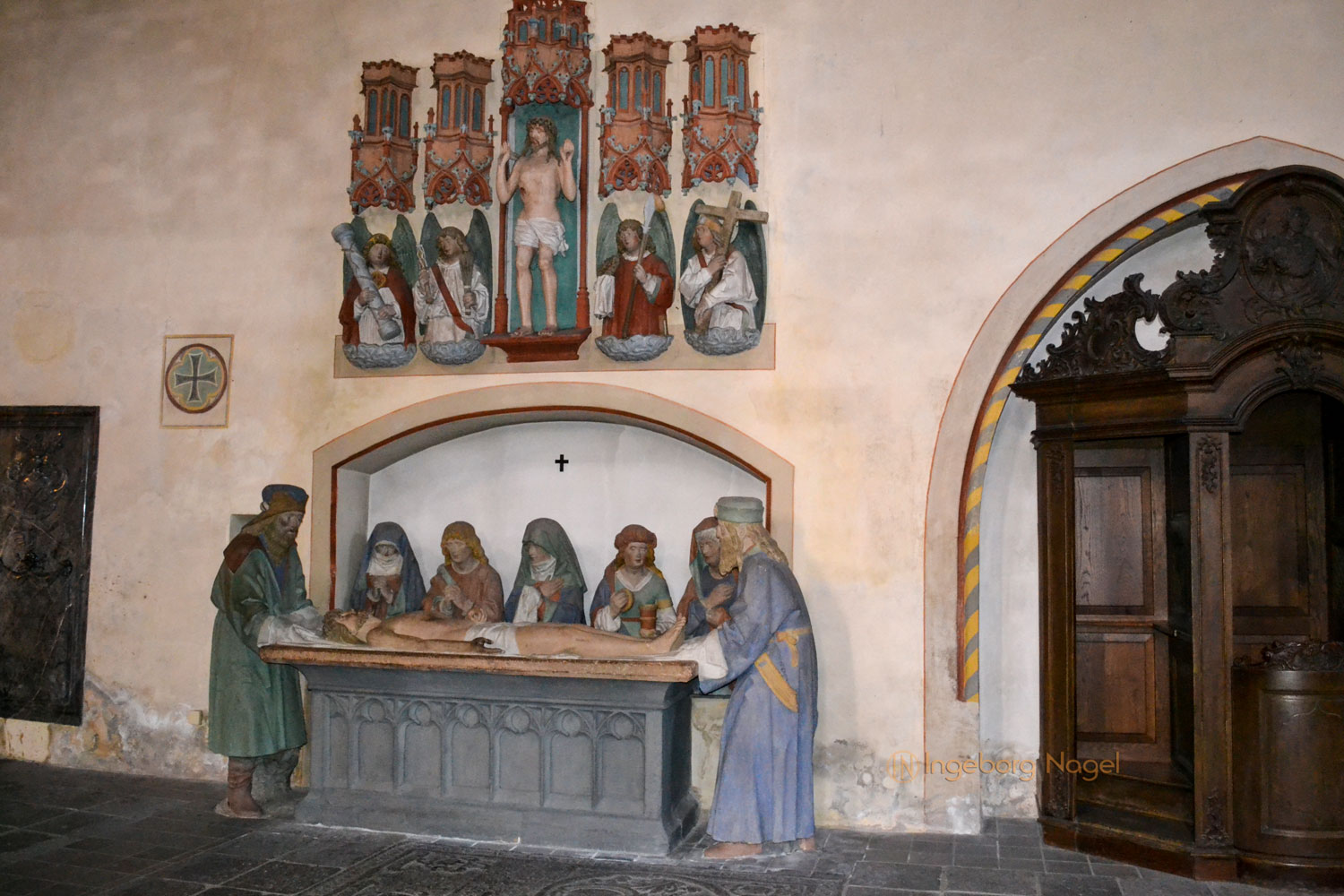 Es gibt noch so unglaublich vieles in der Kirche zu entdecken - wie z.B. die Darstellung der Grablegung Christi mit sieben Figuren aus Tuffsein. Über dem Hl. Grab die Darstellung von Christus zwischen vier Engeln mit Leidenswerkzeugen. Oder der Taufstein aus belgischem Marmor aus Ende des 12. Jahrhunderts. Ebenso sind in der Stiftskirche die Eltzer Gräber, sowie ein Marmordenkmal von Johann Wilhelm Antonius Bertramus Herr zu Eltz, der Domherr zu Trier.