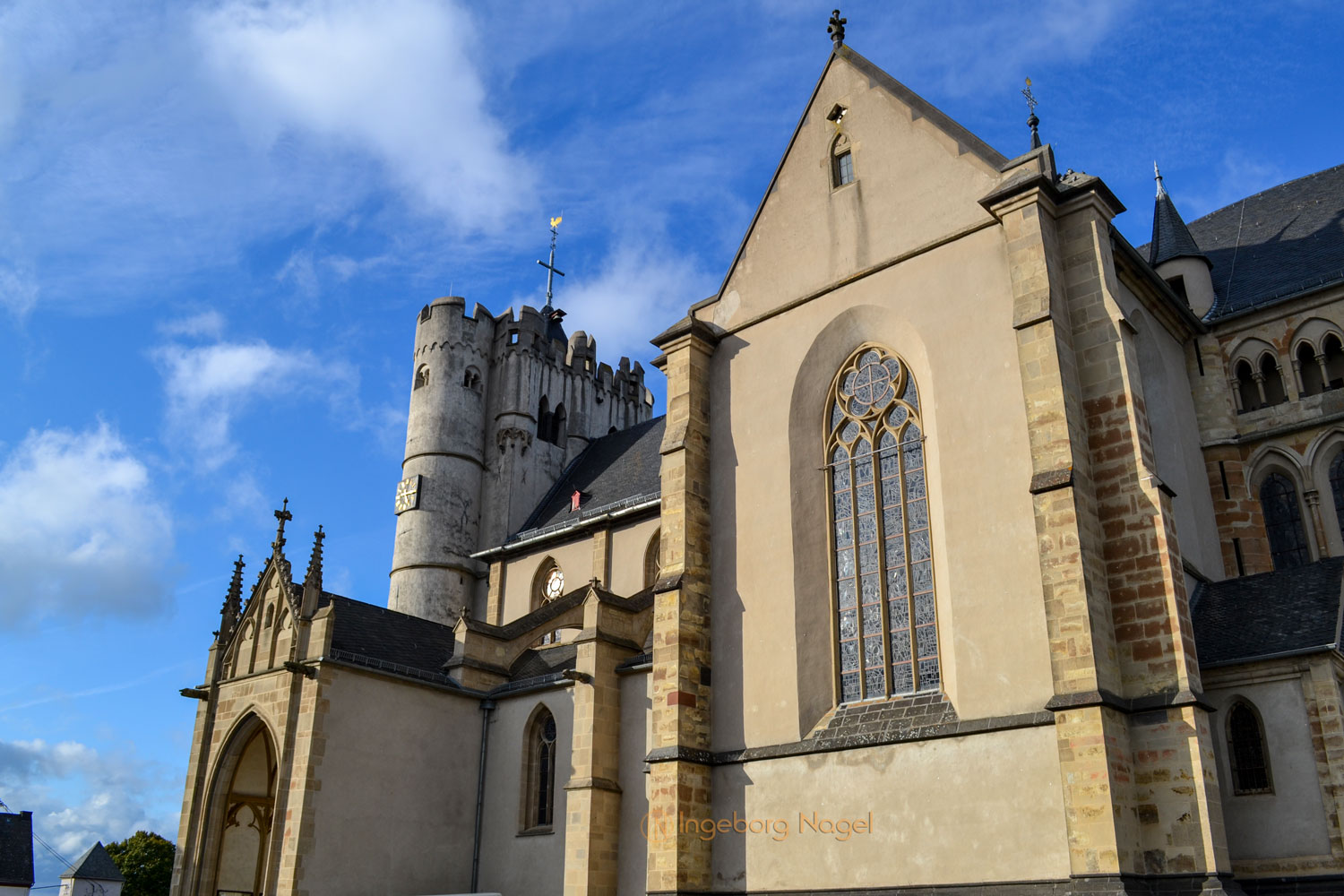Eigentlich stand diese Kirche überhaupt nicht auf unserem Besichtungsplan, ich wusste nichtmal dass es diese imposante Kirche gibt. Als wir von der Burg Eltz auf der Rückfahrt waren, fiel mir dieses riesige Gebäude auf. 'Was ist das? Noch eine Burg?' Diese erste Wahrnehmung war so beeindruckend, dass wir spontan beschlossen haben - suchen und anschauen. Als wir dann, zugegeben mit einmal verfahren, durch den Ort auf das Gebäude zugefahren sind, haben wir realisiert: Das ist eine Kirche!!