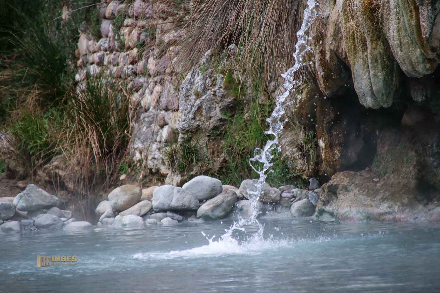 Kopfkino an 😊: Stellt euch einen herrlichen Sonnentag vor, baut euch einen Liegestuhl direkt am Bachbett auf und genießt. Gell, so könnte man es aushalten, oder? Tief ist der Farma an dieser Stelle nicht, aber zum Abkühlen reicht er allemal, vor allem nach einem Bad im 43 Grad warmen Wasser.
