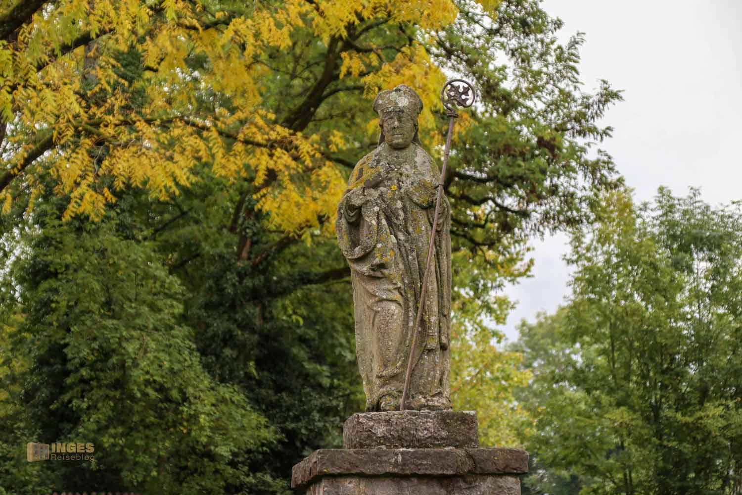 Mir bot die Prälatur einige Motive. Wer der steinerne Bischof auf dem Brunnen ist? Keiner weiß es. Lassen wir ihm sein Geheimnis hier inkognito zu stehen und hoffen, dass der Zahn der Zeit nicht weiter schlimm an ihm nagt.