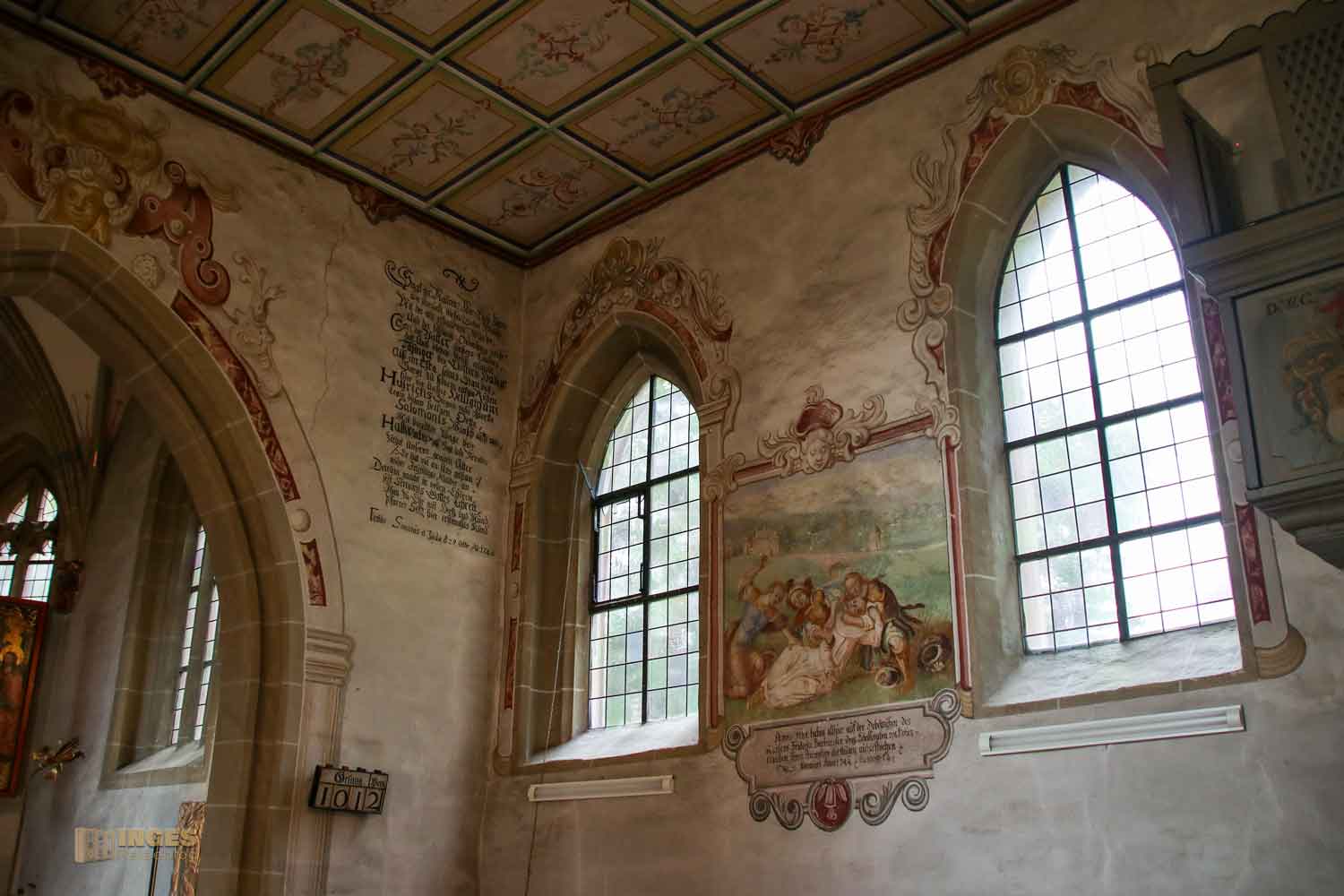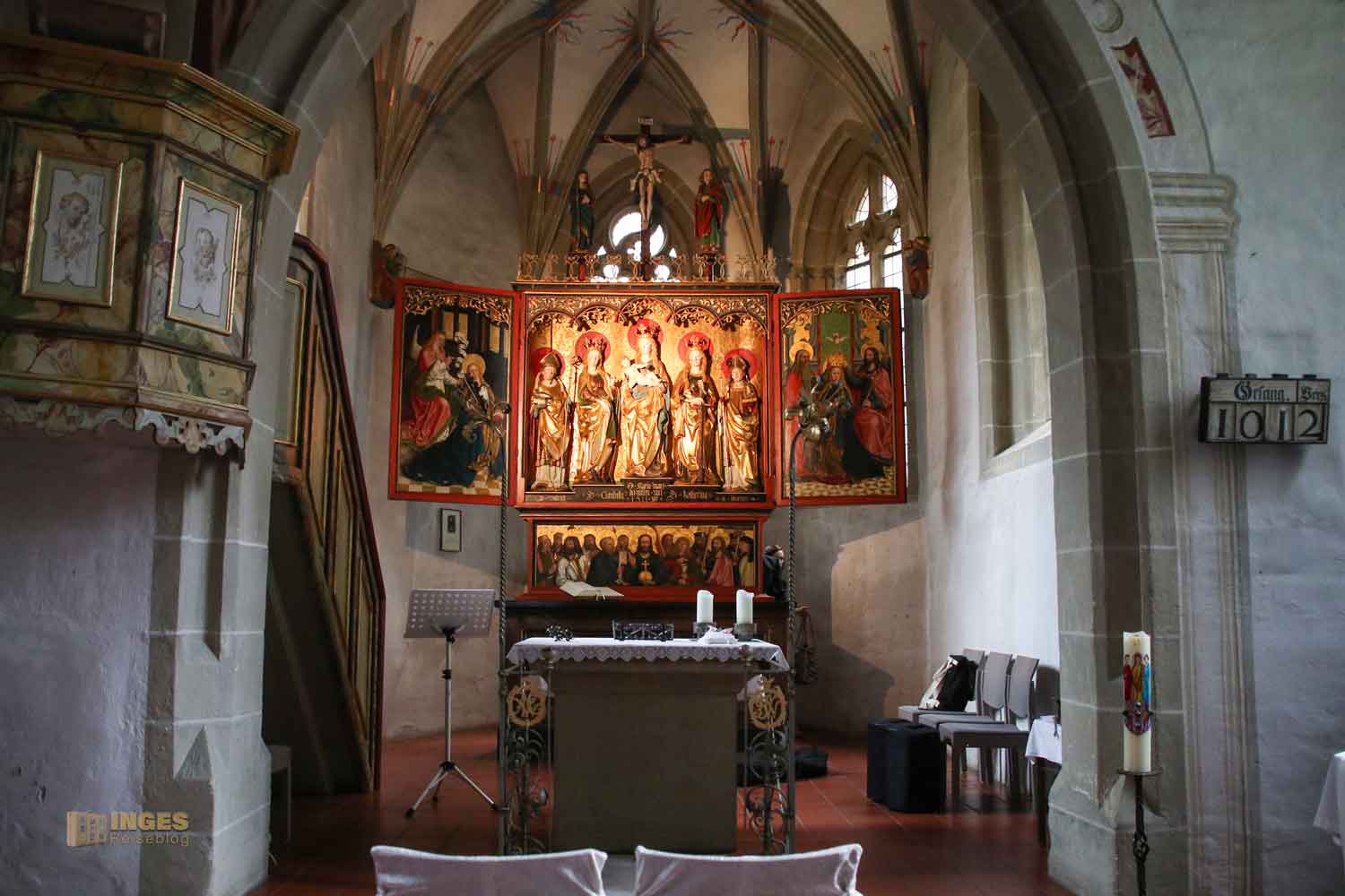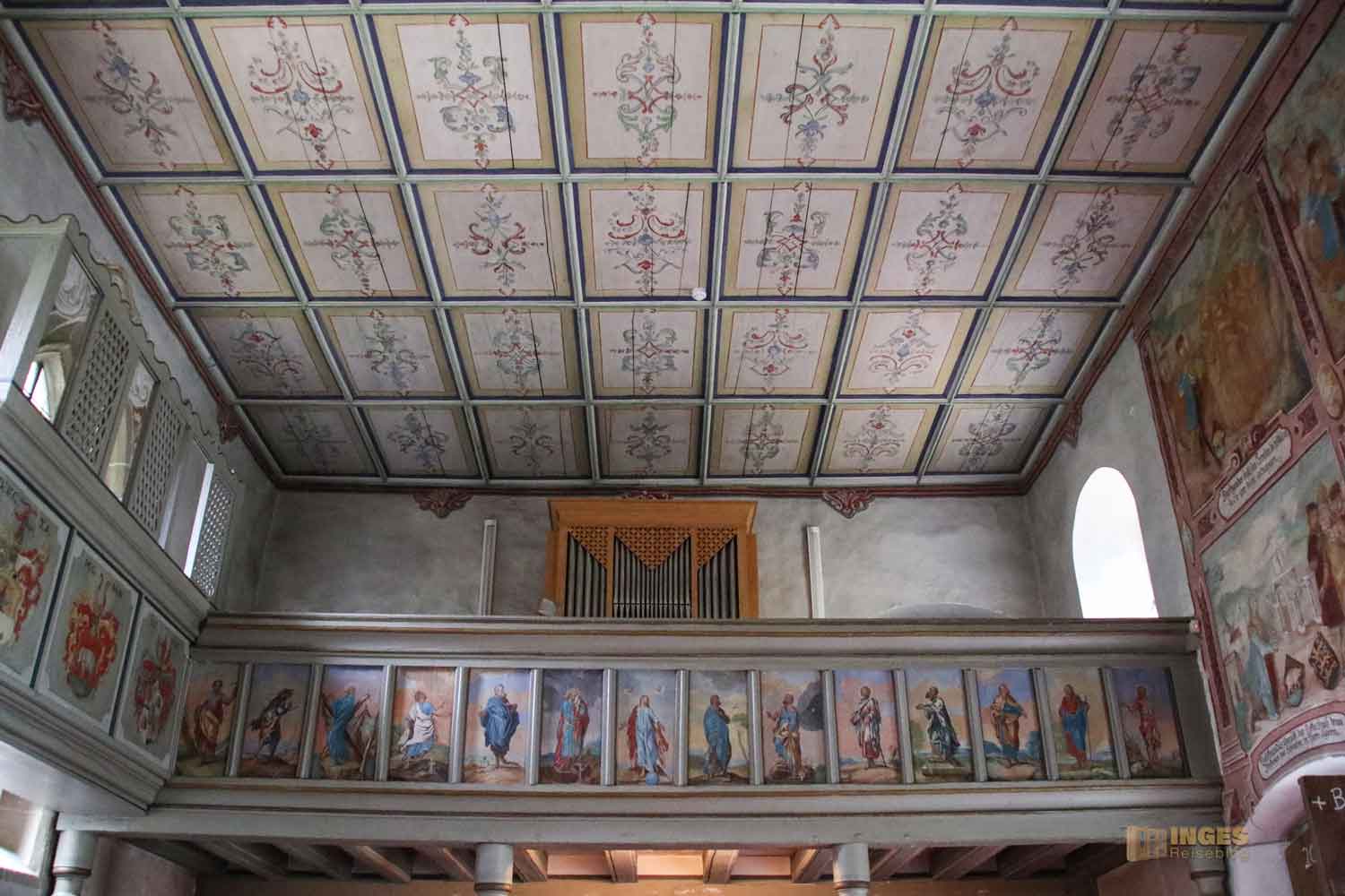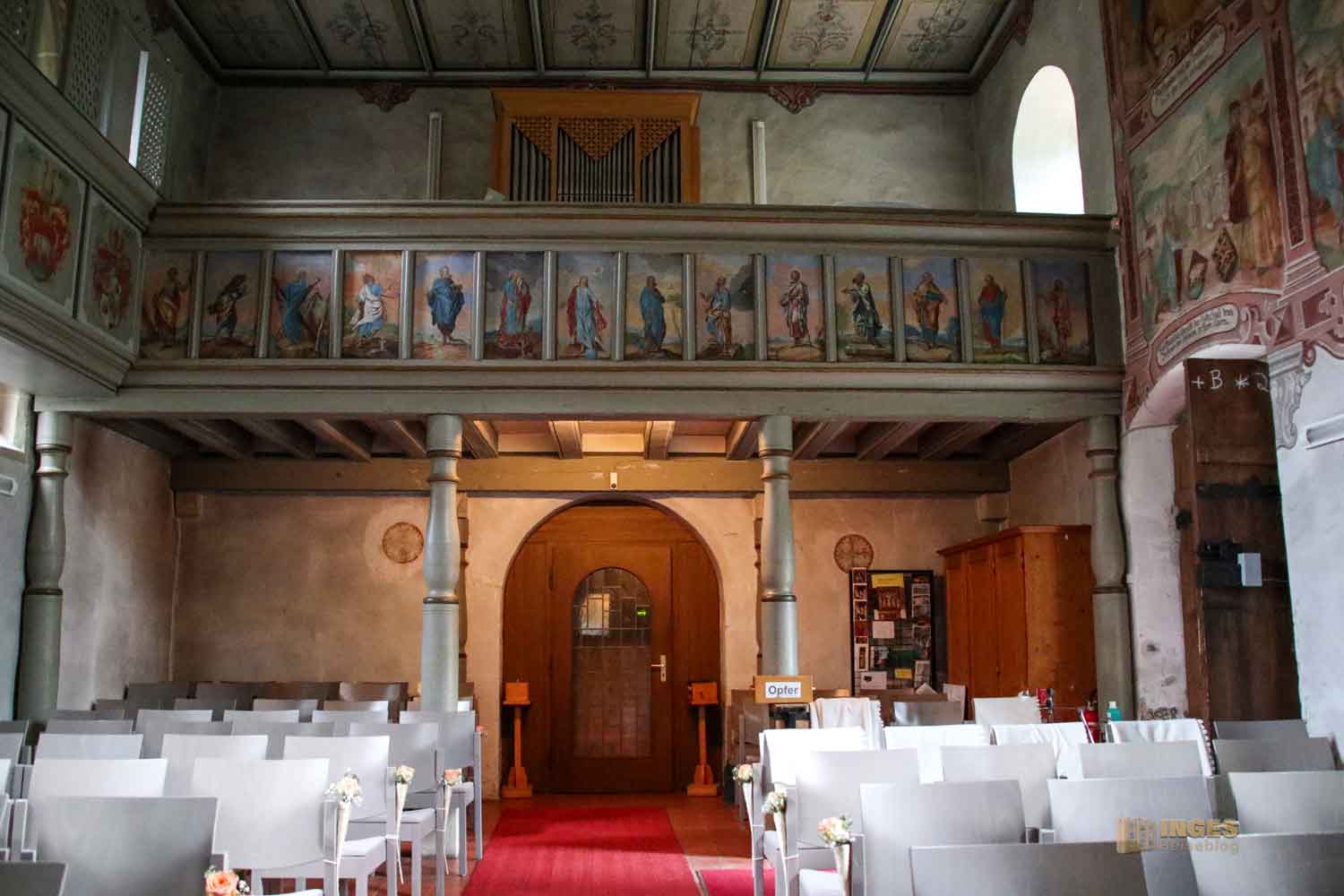 in der ich bei meinem ersten Besuch wirklich geflasht war. ABER - nur schauen, nicht fotografieren! Es hat mir während meines Besuchs in der Kapelle keine Ruhe gelassen und ich fragte die nette Dame am Eingang, ob man denn nicht für einen Bericht auf meinem Reiseblog vielleicht eine Ausnahme machen könnte? Tage später erhielt ich vom evangelischen Kirchengemeinderat die Erlaubnis für meinen Bericht Fotos zu machen.
