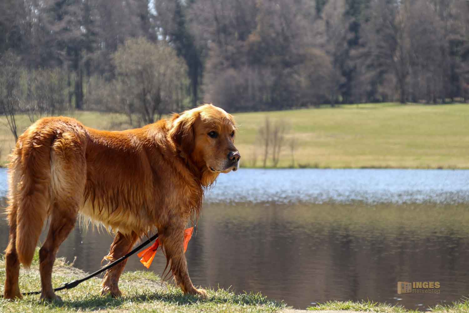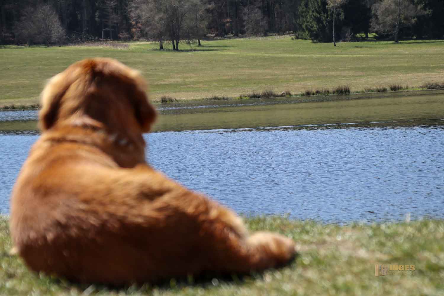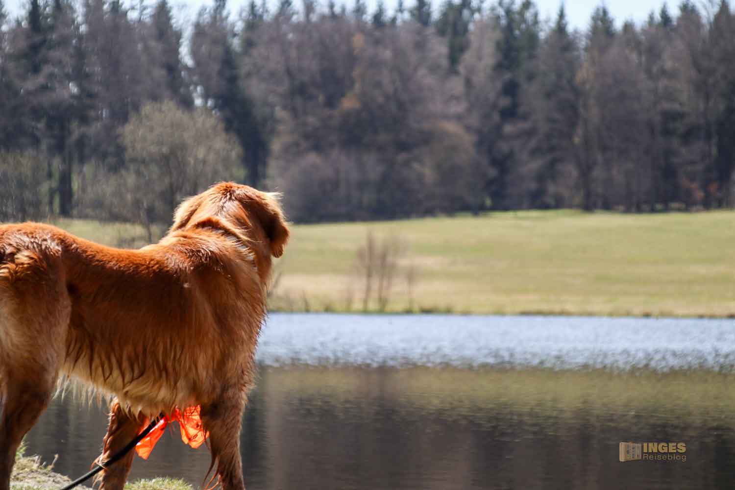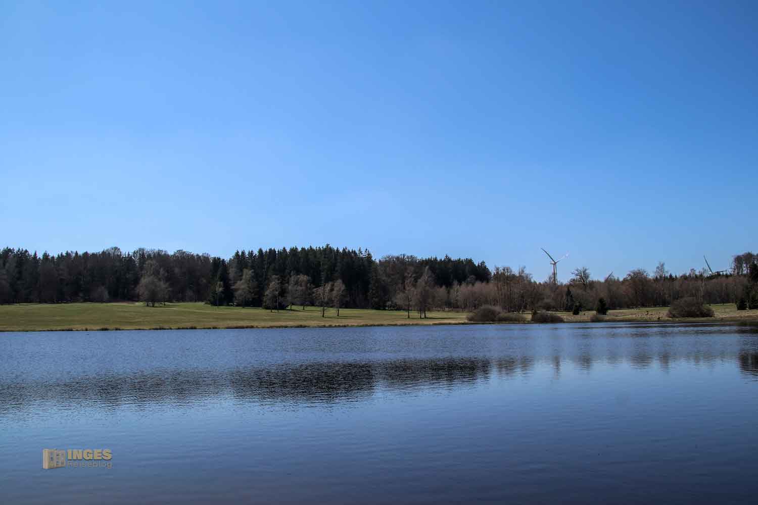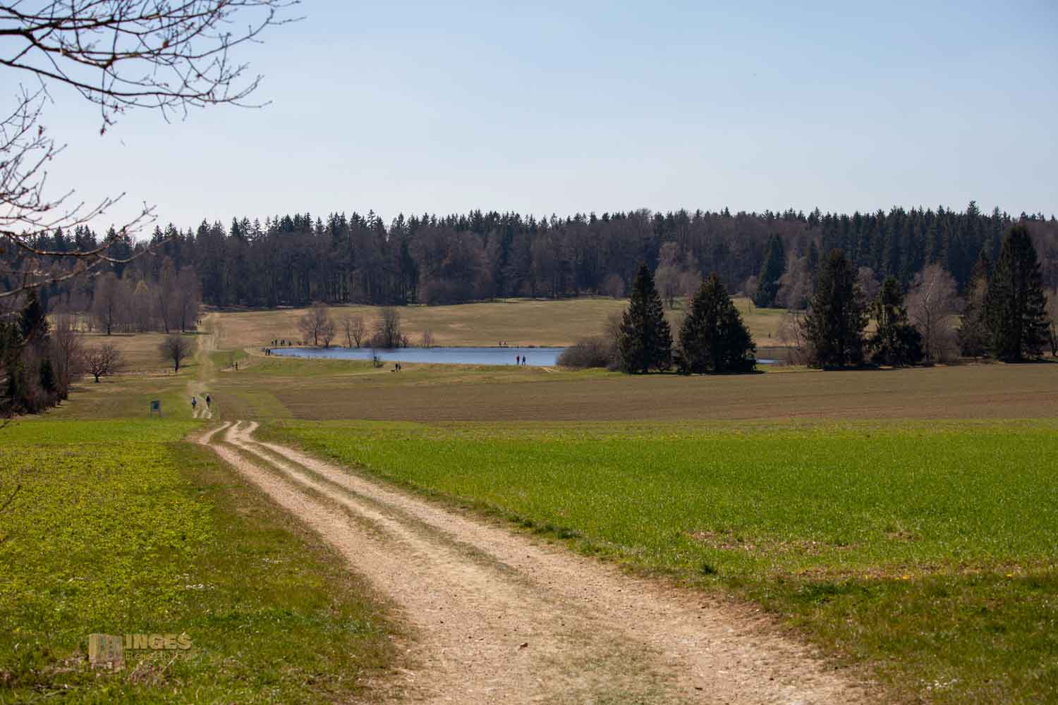 Durch den Ort Essingen durch und Richtung Tauchenweiher, Fridolin fand den Weg ohne Probleme, und durfte uns am Ende der Straße auf einem großen Parkplatz 'ausladen'. Von hier erstreckt sich ein Wandergebiet, das seinesgleichen sucht.