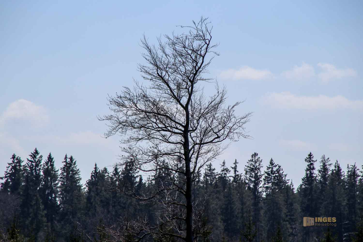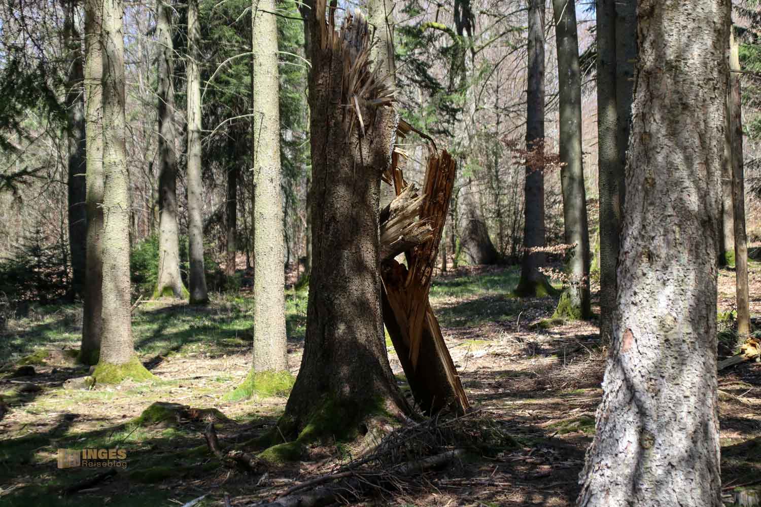Wie ihr in meinen vielen Natur-Berichten sicher schon gelesen habt, wir werden ständig von anderen Ausflüglern überholt, weil wir selbst im Wald, wo doch 'nur' Bäume sind, ganz viel Futter für die Kamera finden. Da fällt mir doch spontan eine nette Unterhaltung im Felsenmeer Wental (gleich nebenan) ein, wo uns zwei Frauen beim Fotografieren beobachtet haben und uns staunend fragten "Was ist da jetzt so interessant? Sind doch nur Bäume!" Wir machten sie auf eine Baumgruppe aufmerksam die wir entdeckt hatten - tote und lebende Bäume in verschiedenen Formen. Für uns war es ein aussagefähiges Fotomotiv 🙂
