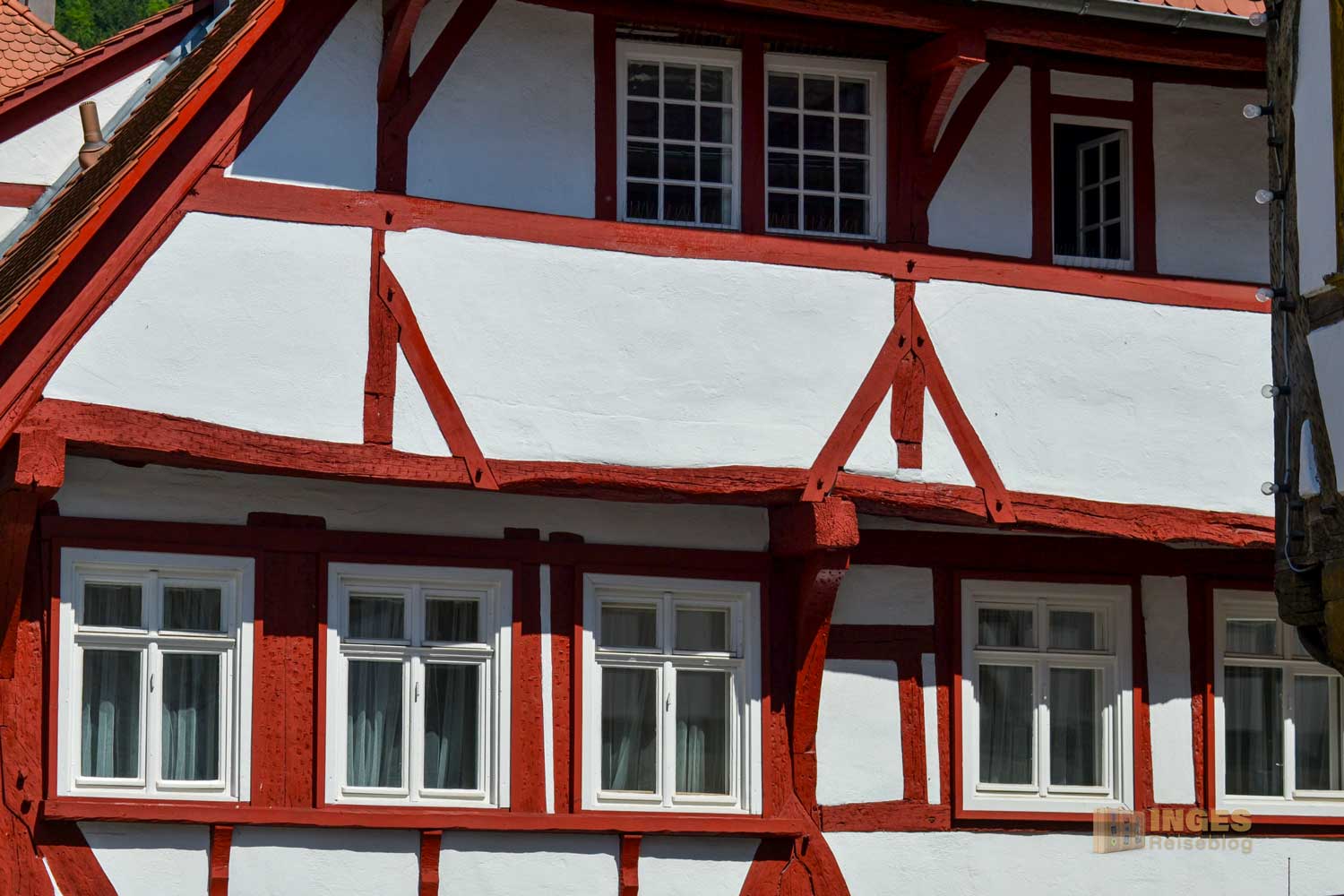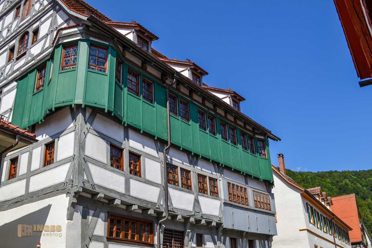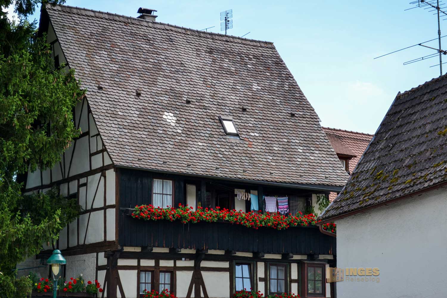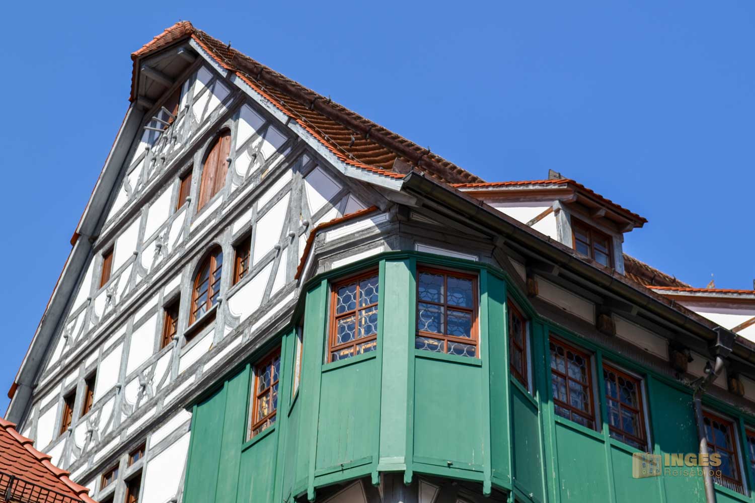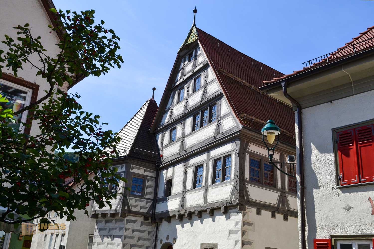 Das Große Haus (ab dem 2. Foto) wurde 1429 ebenfalls im alemannischen Stil erbaut. Verblattetes Fachwerk und ein gotischer Erker ziehen da meinen Blick an. Der 2. Stock wurde 1594 vom Bauherr aufgesetzt und zeigt seine Stellung, die er mit dem Renaissancebau hervorhebt.