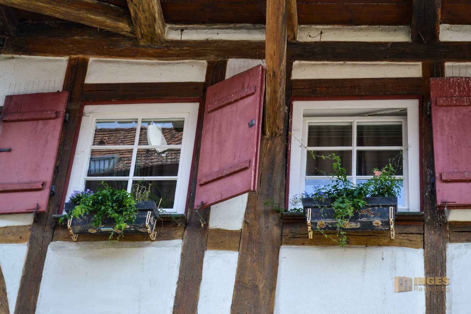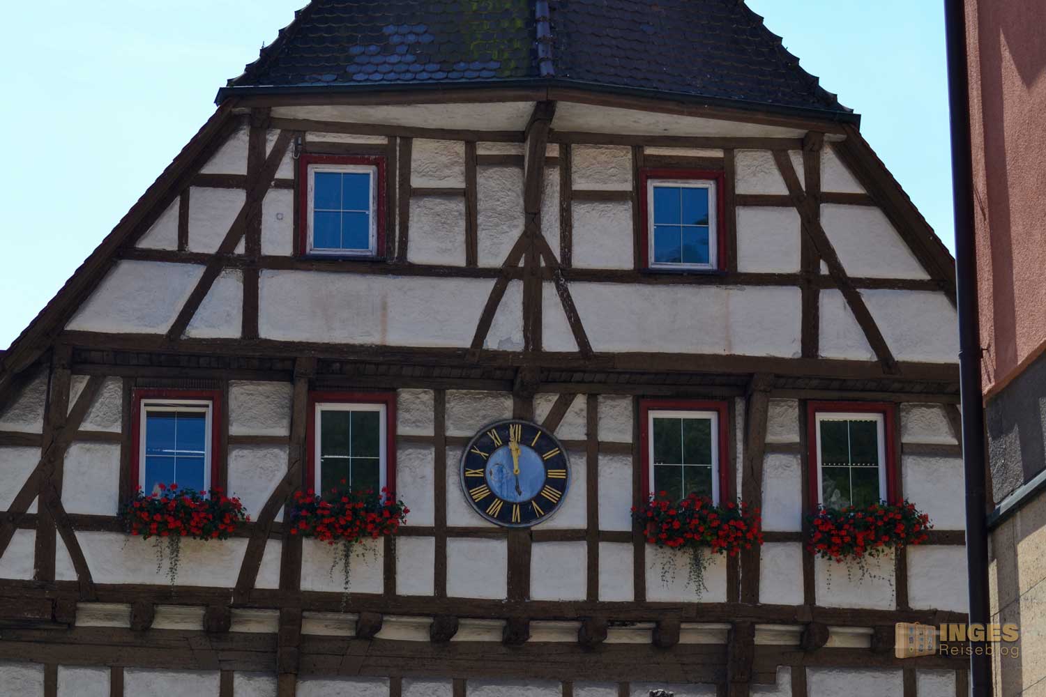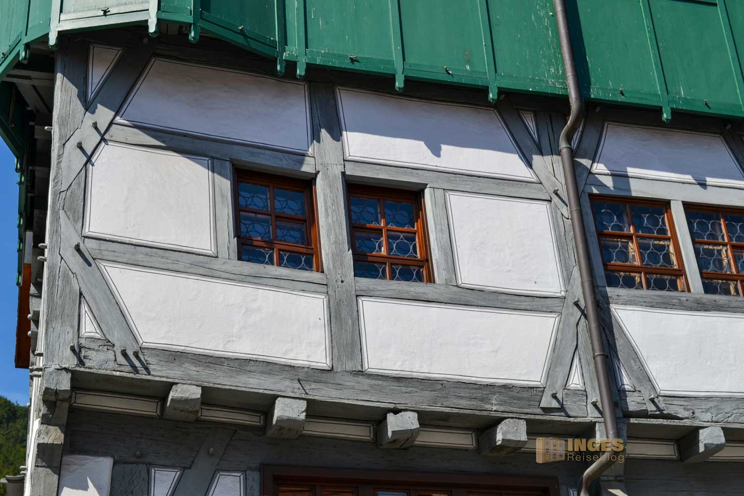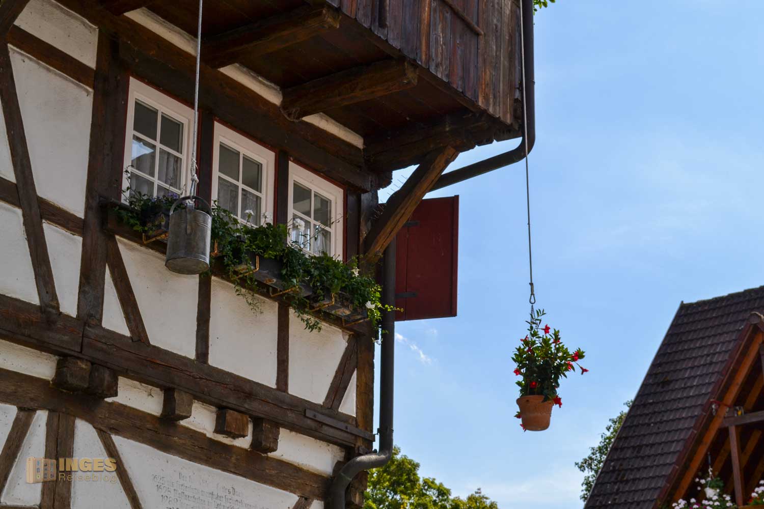 Das Große Haus (ab dem 2. Foto) wurde 1429 ebenfalls im alemannischen Stil erbaut. Verblattetes Fachwerk und ein gotischer Erker ziehen da meinen Blick an. Der 2. Stock wurde 1594 vom Bauherr aufgesetzt und zeigt seine Stellung, die er mit dem Renaissancebau hervorhebt.