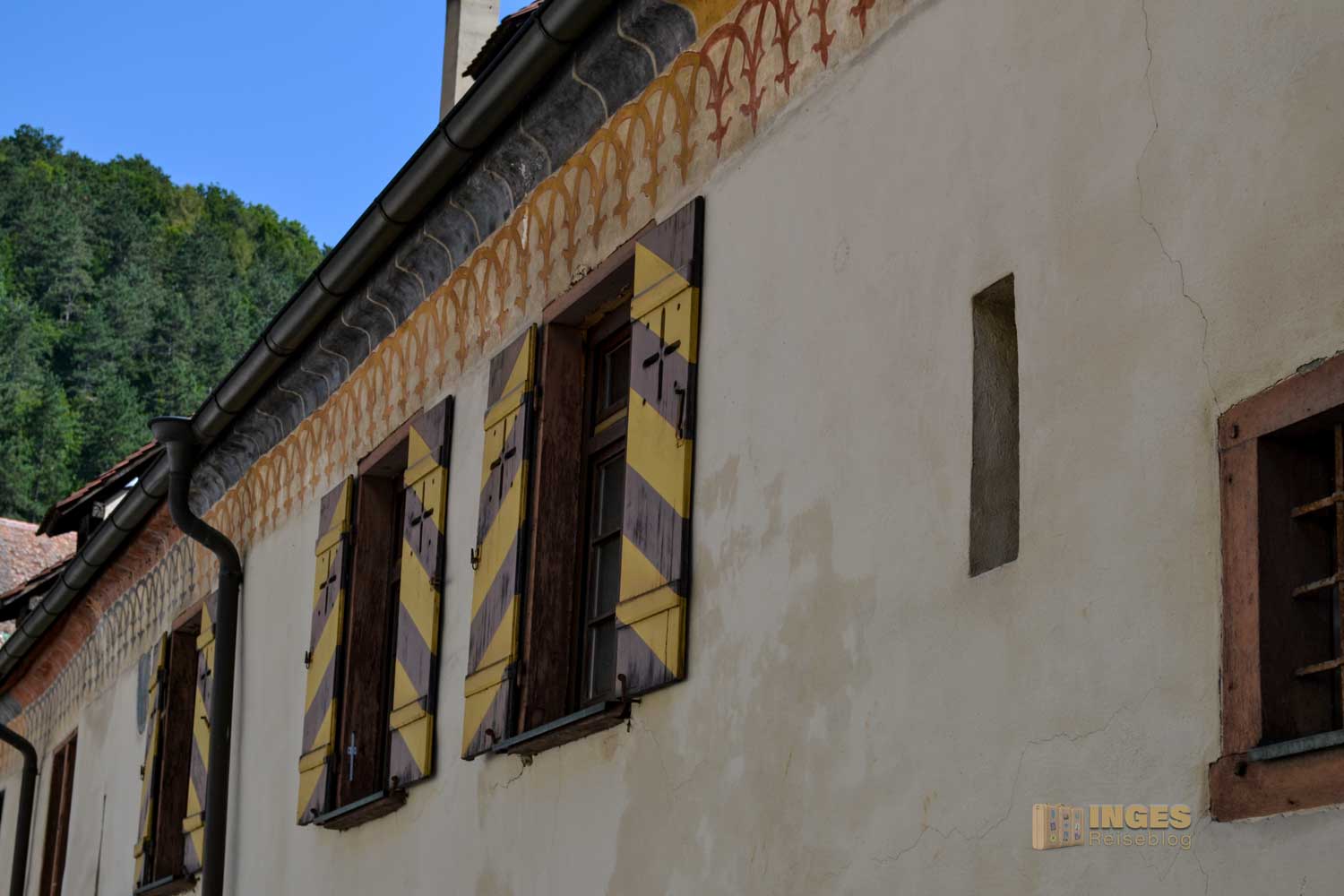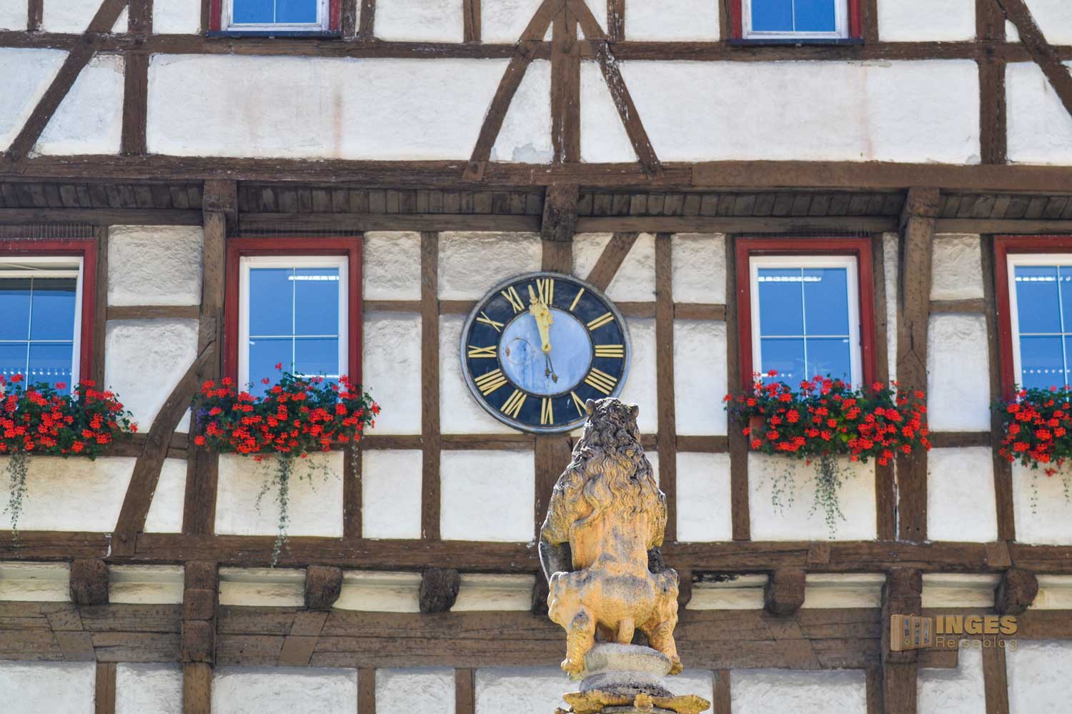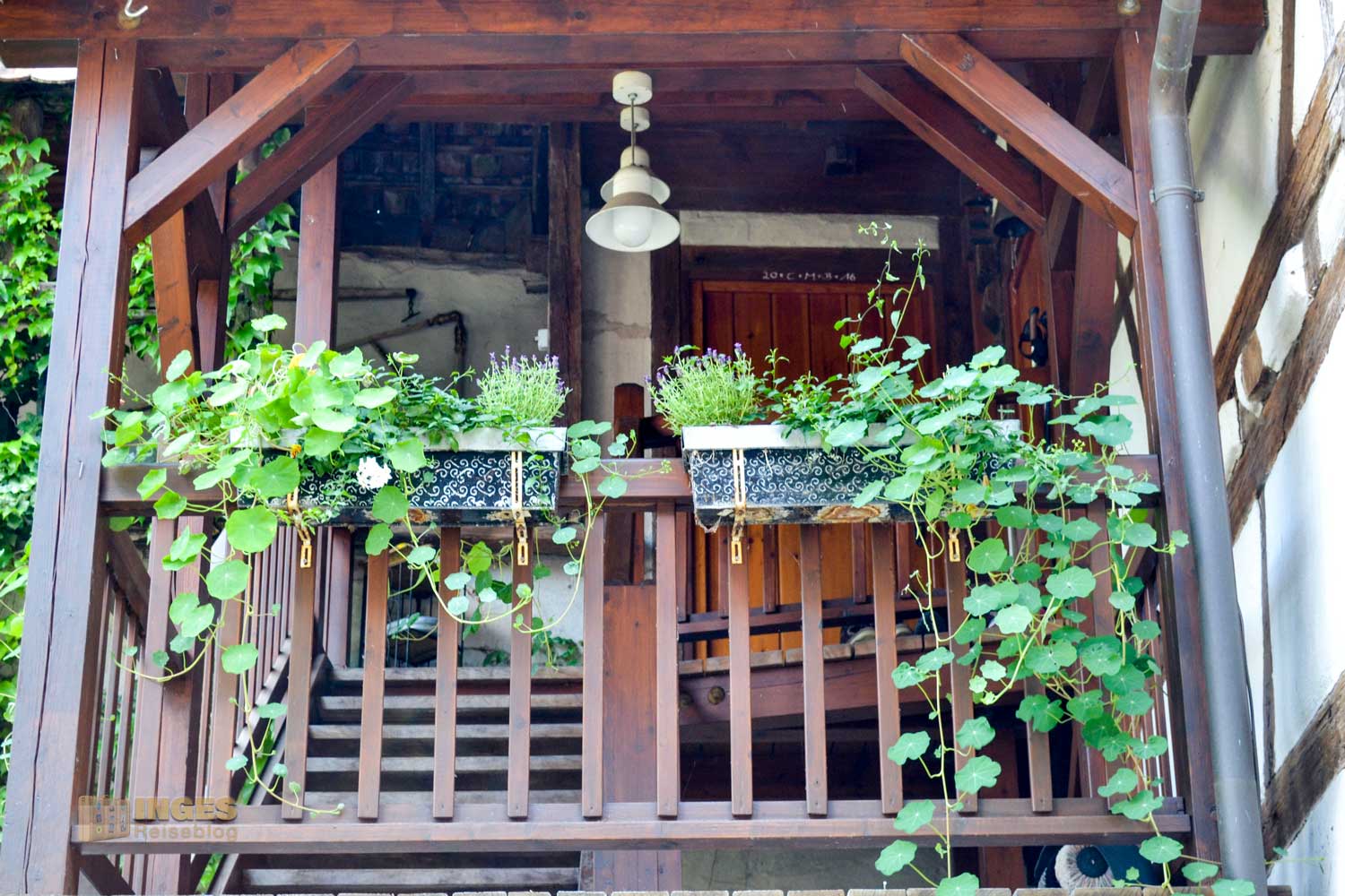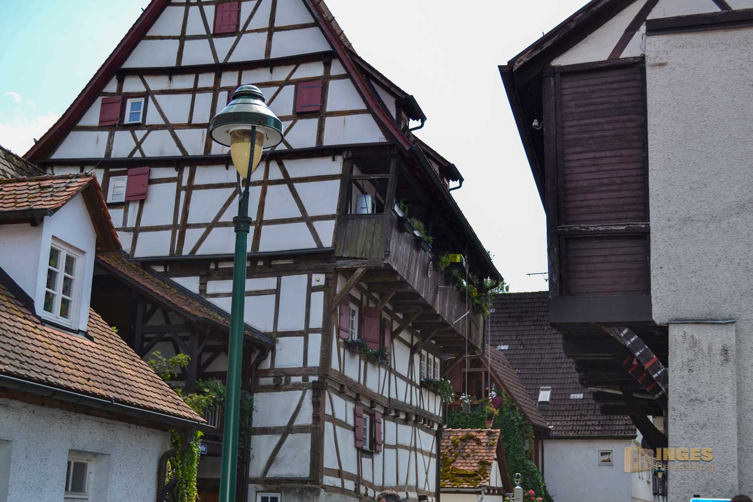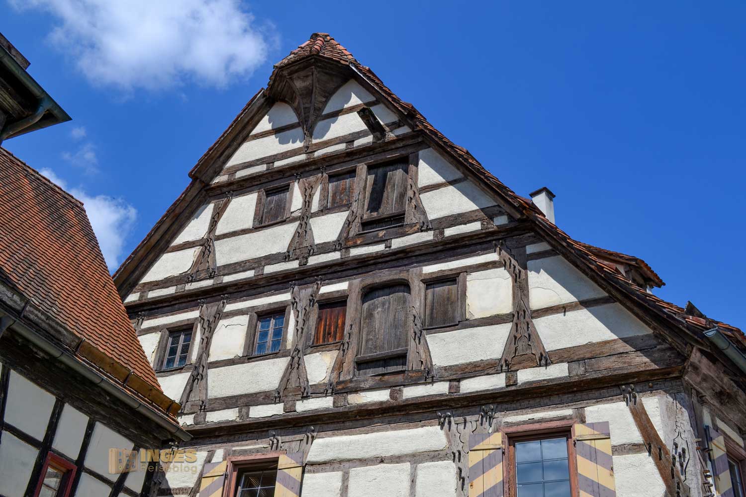 Das Große Haus (ab dem 2. Foto) wurde 1429 ebenfalls im alemannischen Stil erbaut. Verblattetes Fachwerk und ein gotischer Erker ziehen da meinen Blick an. Der 2. Stock wurde 1594 vom Bauherr aufgesetzt und zeigt seine Stellung, die er mit dem Renaissancebau hervorhebt.