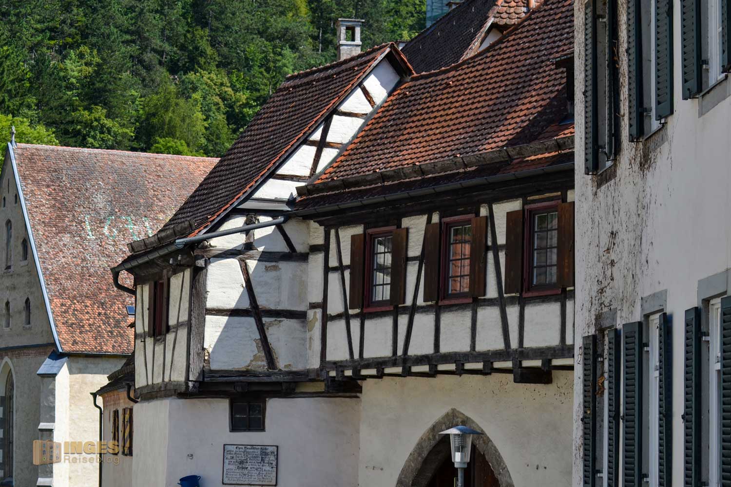 Durch die Aachgasse ging es wieder zurück zu unserem Ausgangspunkt. Aber diese kleine Gasse dürft ihr in eurer Stadtbesichtigung nicht auslassen. Denn sonst würdert ihr erstens nicht das schönste Fachwerkhaus in der Blaubeurer Altstadt sehen - und ihr würdet auch "Klein-Venedig im Schwabenland" verpassen, das alte