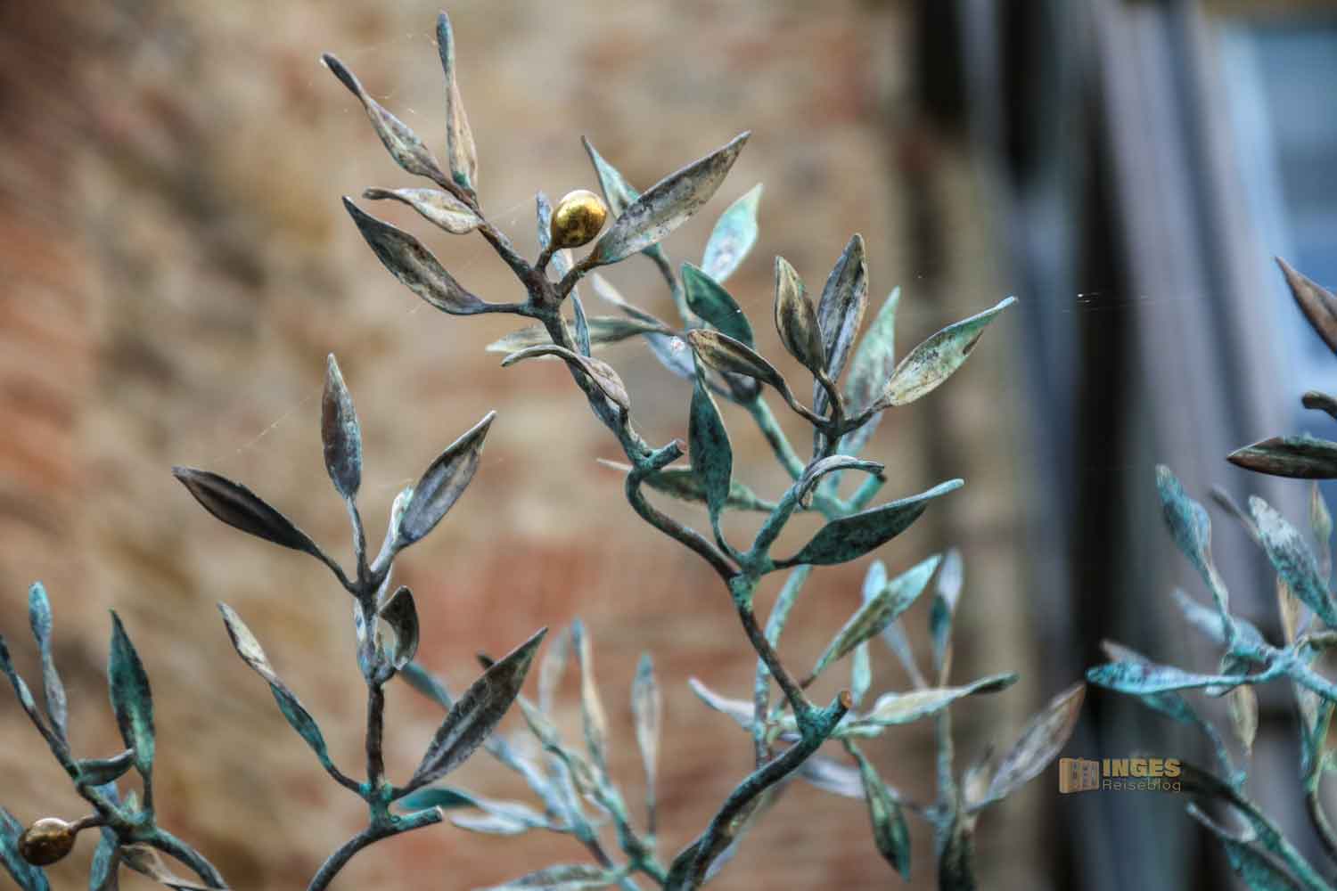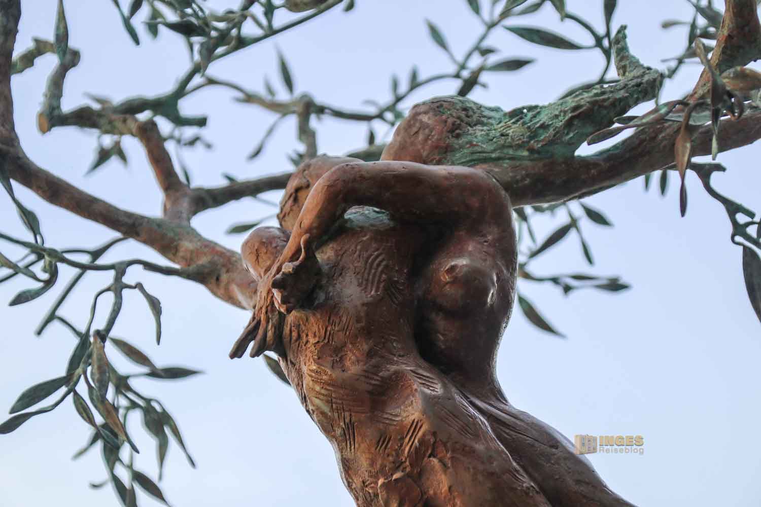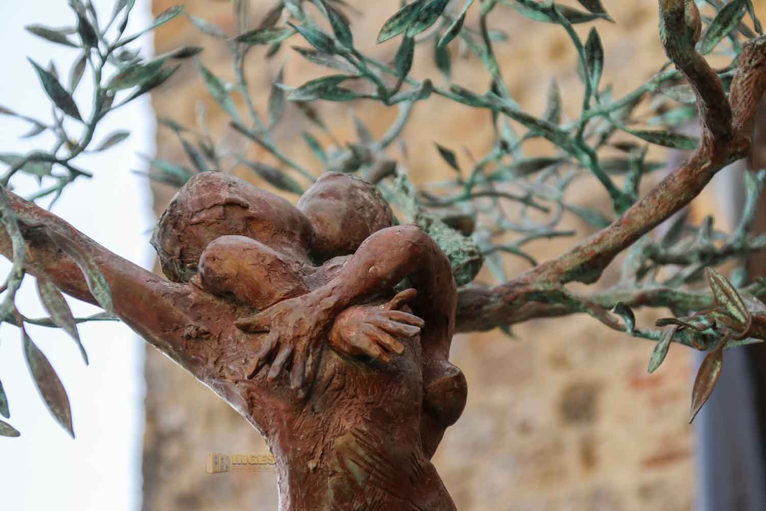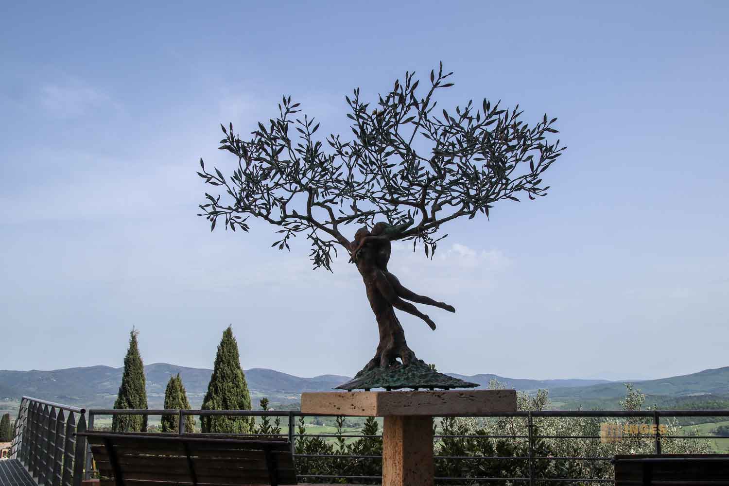 Andrea Roggi hat sie geschaffen, und die beiden Liebenden in den Stamm eines Olivenbaums integriert. Wunderschön! Gratis dazu gibt es herrliche Blicke über Land.