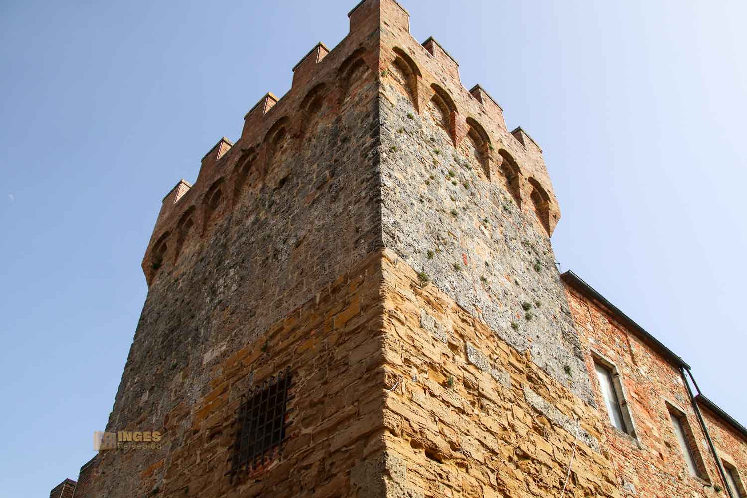 Im 14. Jahrhundert, um genau zu sein 1352 wurde die Festung an der Südseite der Mauer erbaut. Heute hat die Gemeindeverwaltung ihren Platz in diesem historischen Gebäude. Die viereckige Anlage mit ihren zwei ungleichen Türmen zählt zu den bedeutendsten Burgen im Val d'Elsa.