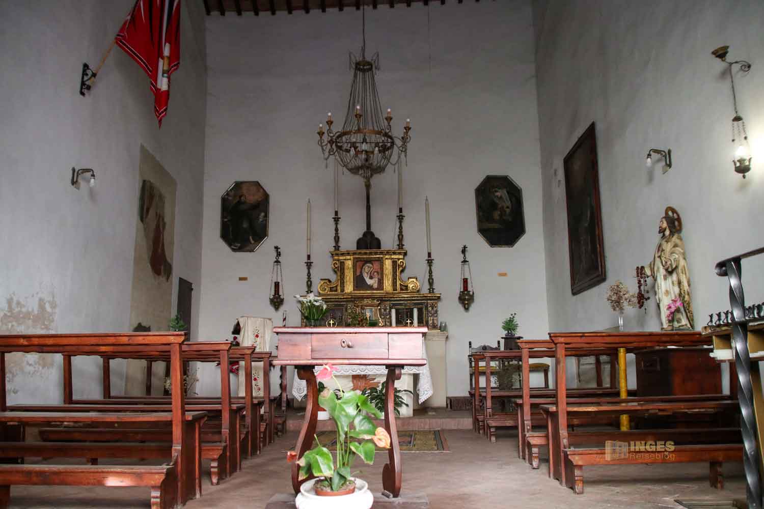 bei der es für uns bei einem Blick aus der Ferne blieb. Der Aufnahmespeicher war von den vielen Besichtigungen heute gut gefüllt. Jetzt noch da rüberfahren, und dann womöglich auf eine verschlossene Kirchentüre treffen? Die Entscheidung war schnell getroffen. Für euch aber trotzdem ein paar Informationen zur Kirche, die im Stil der Romanik erbaut wurde. Die einen sagen, die Kirche wäre auf den Überresten eines etruskischen Tempels erbaut worden, andere Stimmen sprechen die Anfänge einer Krypta ohne Kirche zu. Das Innere der Kirche soll Fresken aus dem 17. Jahrhundert zeigen. Vielleicht macht ihr euch selber ein Bild, wenn ihr nach Casole d'Elsa kommt.