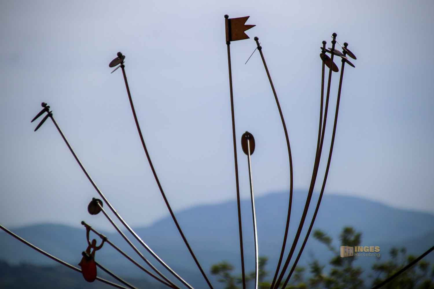 Bei meiner Tourenplanung für den heutigen Tag waren die Terme Bagni di Petriolo, die Kirche ohne Dach San Galgano und die Einsiedelei Montesiepi die Hauptpunkte. Für den Rückweg bis Casole d'Elsa habe ich mir dann bei Google Maps noch interessante Zwischenstopps ausgesucht. So stand der Skulpturenpark "Parco di sculture" von Kurt Laurenz Metzler mit über 50 seiner Werke in einem großen Park auf dem Zettel. Ebenso wie der Traumwald "Selba di Sogno" vom deutschen Künstler Deva Manfredo. In einem Eichenwald führt ein Rundweg durch seine Kreationen.