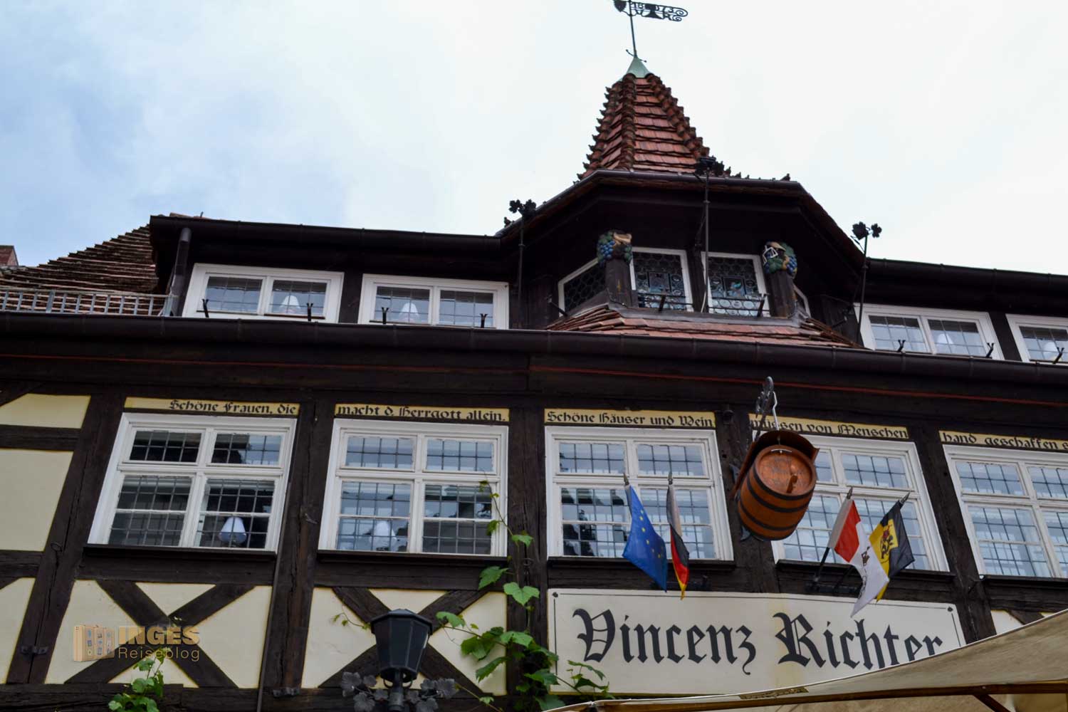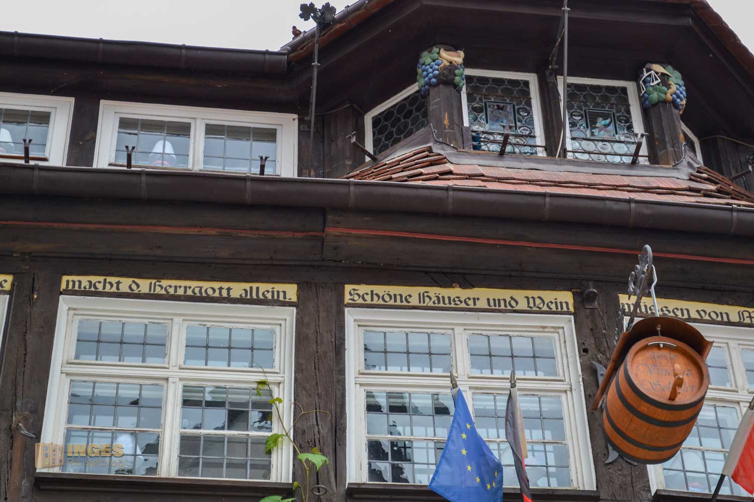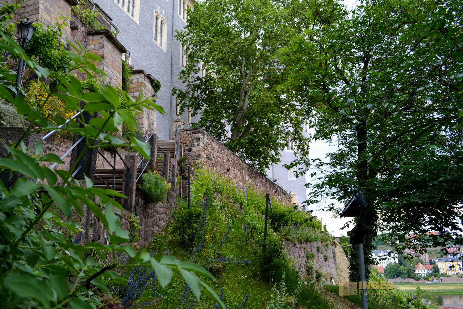 Wir haben den Blick auf außen beschränkt, denn wir hatten ja auch noch die Weiterfahrt nach Dresden vor uns. Aber es ist sehenswert. 1873 wurde das Weingut von Vincenz Anton Richter gegründet, ist mittlerweile in der vierten Generation im Familienbesitz und zeigt im inneren des Hauses eine Antiquitätensammlung aus mehreren Jahrhunderten.