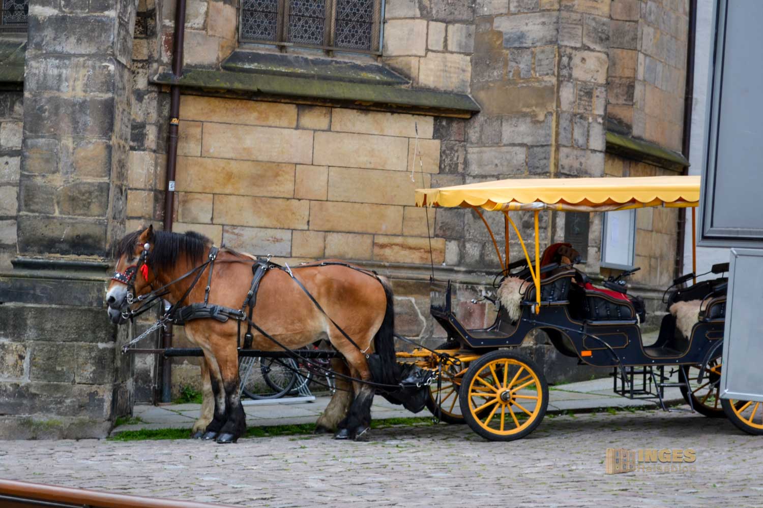 Geduldig haben die beiden Pferde auf Touristen gewartet, die sie zur Sightseeing-Tour durch Meißen bringen konnten. Sie haben lange gewartet - auch noch als wir in die
