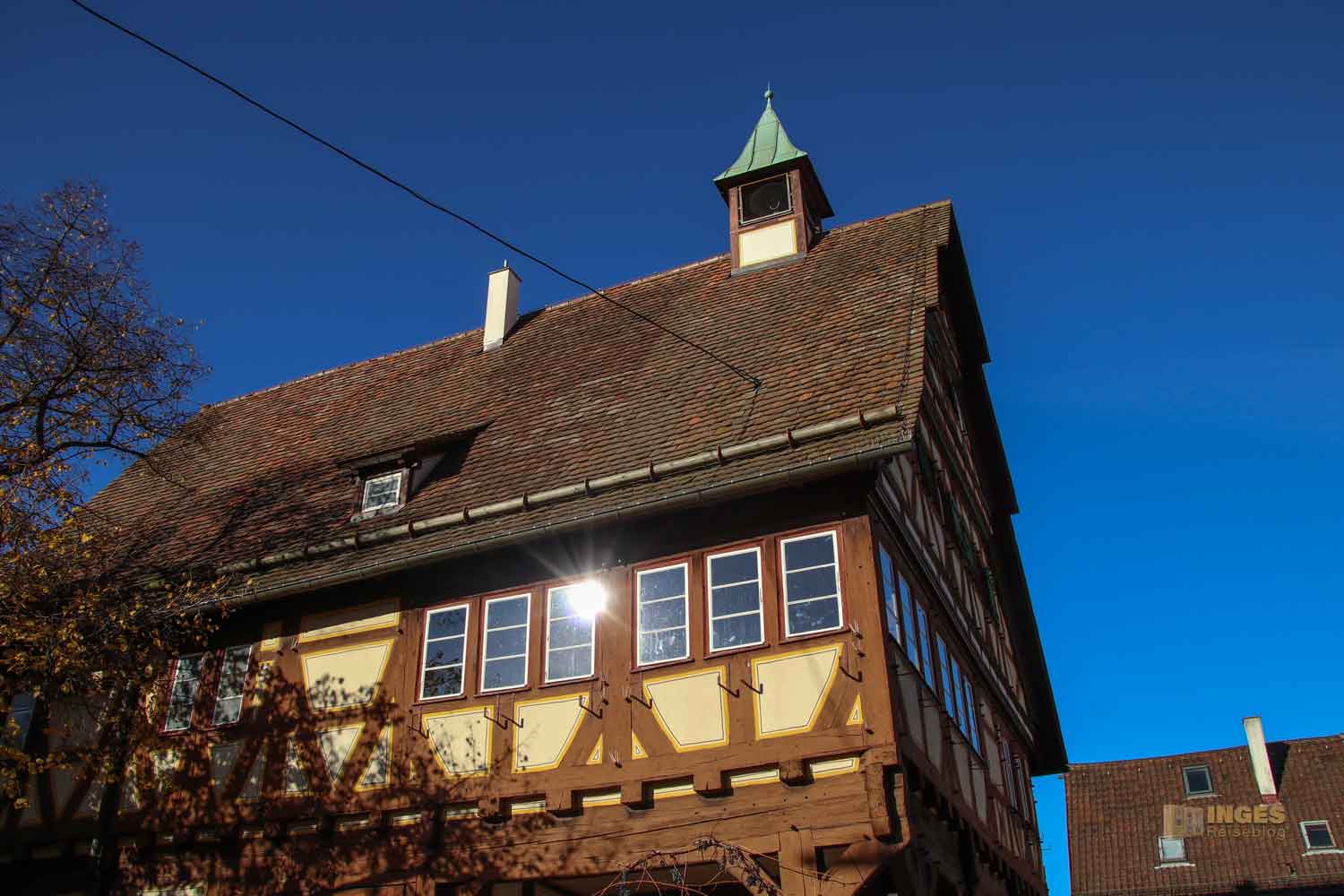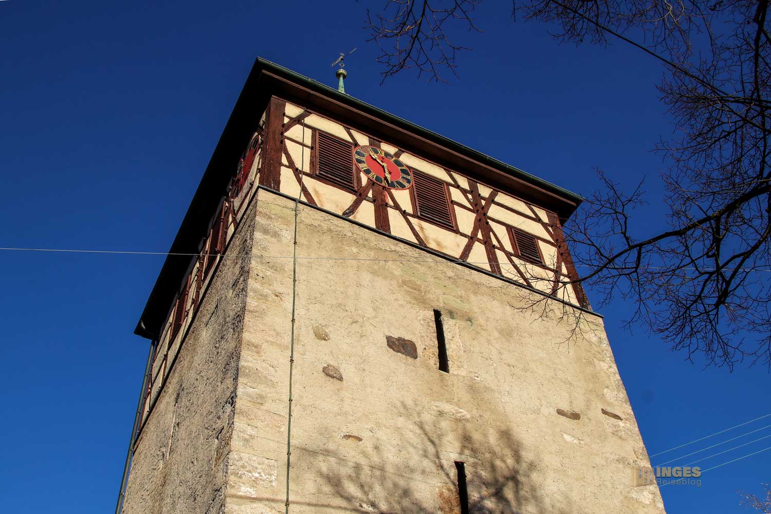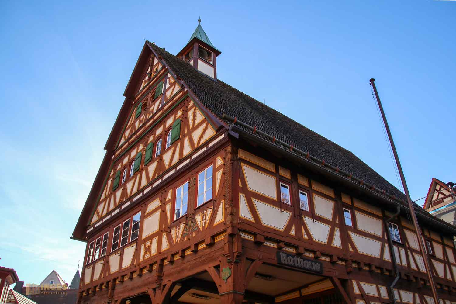 Ihr könnt es absolut nicht übersehen, mit seiner Länge von 14,5 Meter und über 10 Meter Breite steht es da mitten im Weg an der Ortsdurchfahrt. Luftige gut 17 Meter gehts nach oben, wird aber als Rathaus nicht mehr genutzt.
