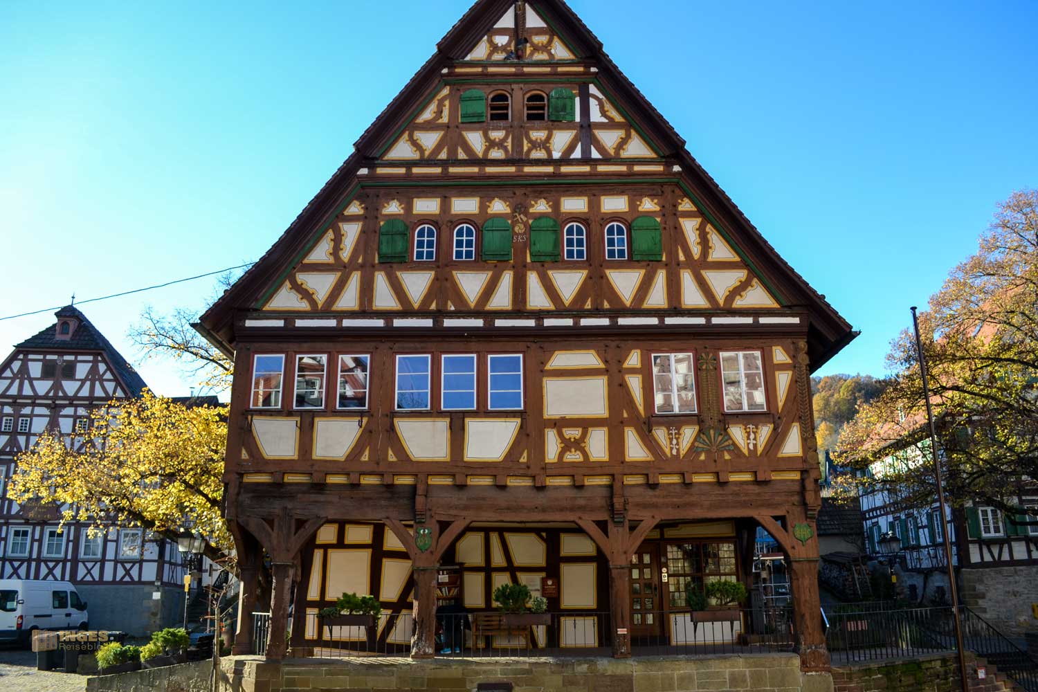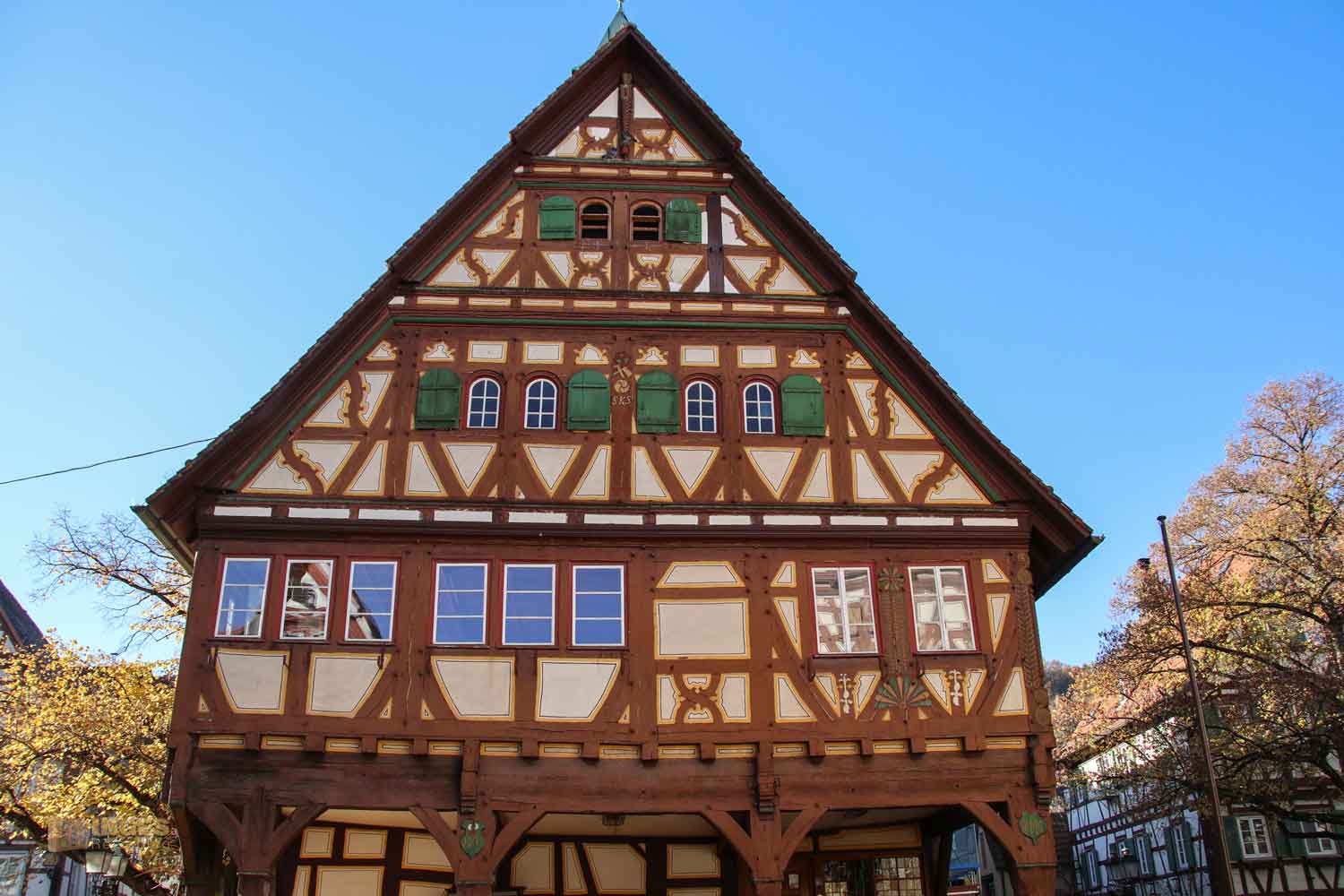Eigentlich sollte man jedem dieser Fachwerkhäuser in Strümpfelbach einen Blick schenken. Wenn ihr mit offenen Augen durch den Ort geht und beim Alten Rathaus einen Blick um das Haus werft, oder genauer in einen Treppenaufgang schaut, dann begegnen euch
