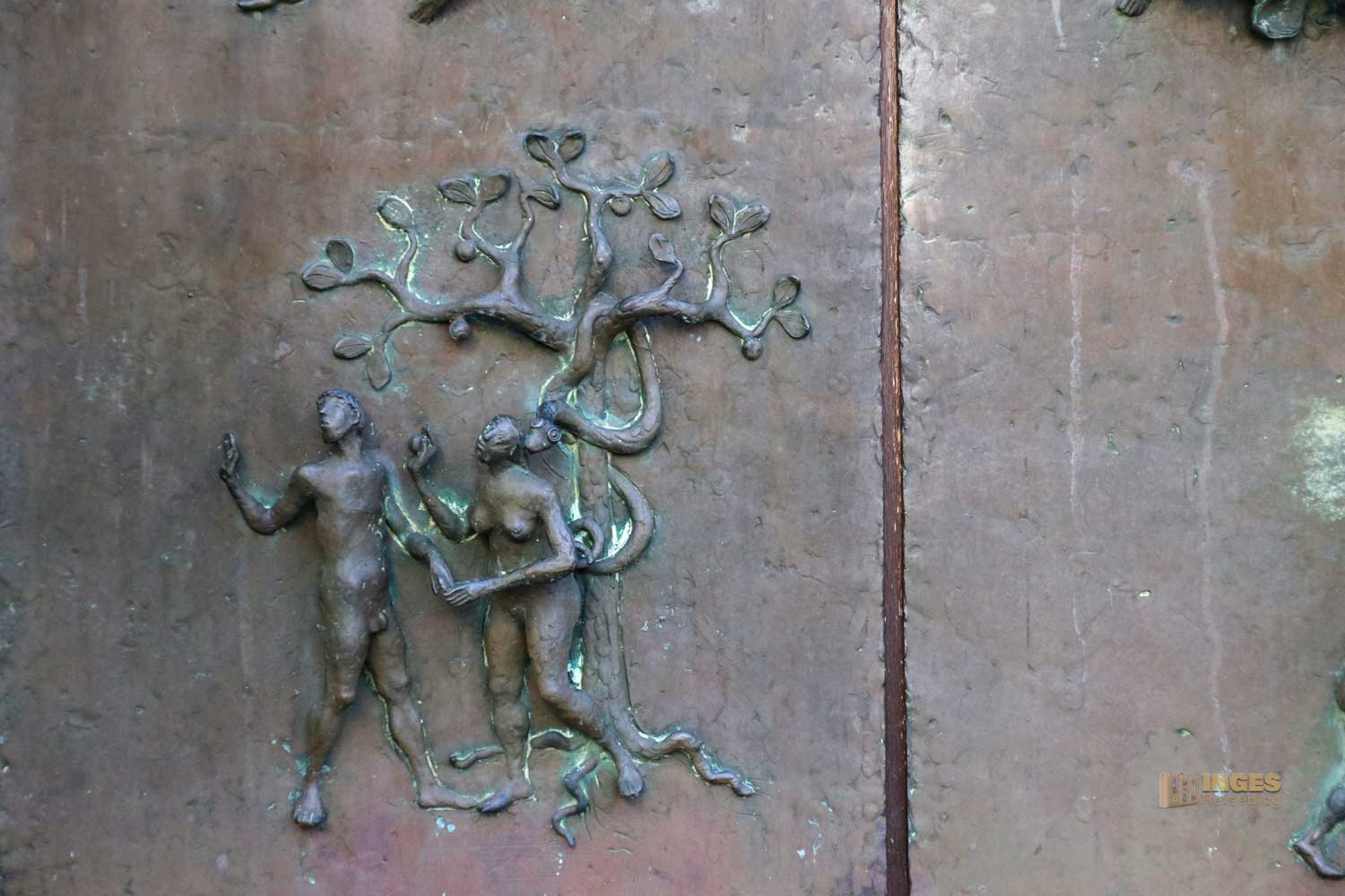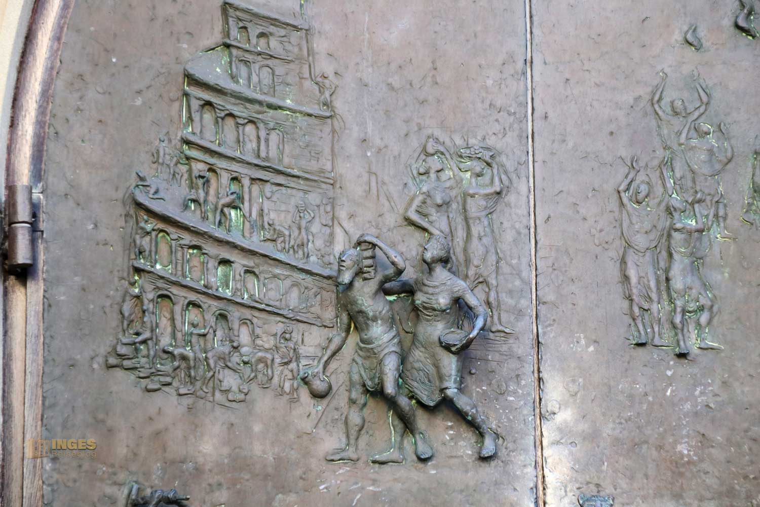 Sind da nicht Parallelen zu heute? Der Turmbau zu Babel (ganz oben links) und die Verwirrung der Sprachen. Auch wenn wir alle, auch heute, mit den gleichen Wörtern reden - die Menschen verstehen einander nicht mehr. Oder links unten die Vertreibung aus dem Paradies. Die Symbolik an dieser Türe (genauso wie in Göppingen) darf wirken (vor allem in heutiger, aktueller Zeit finde ich).