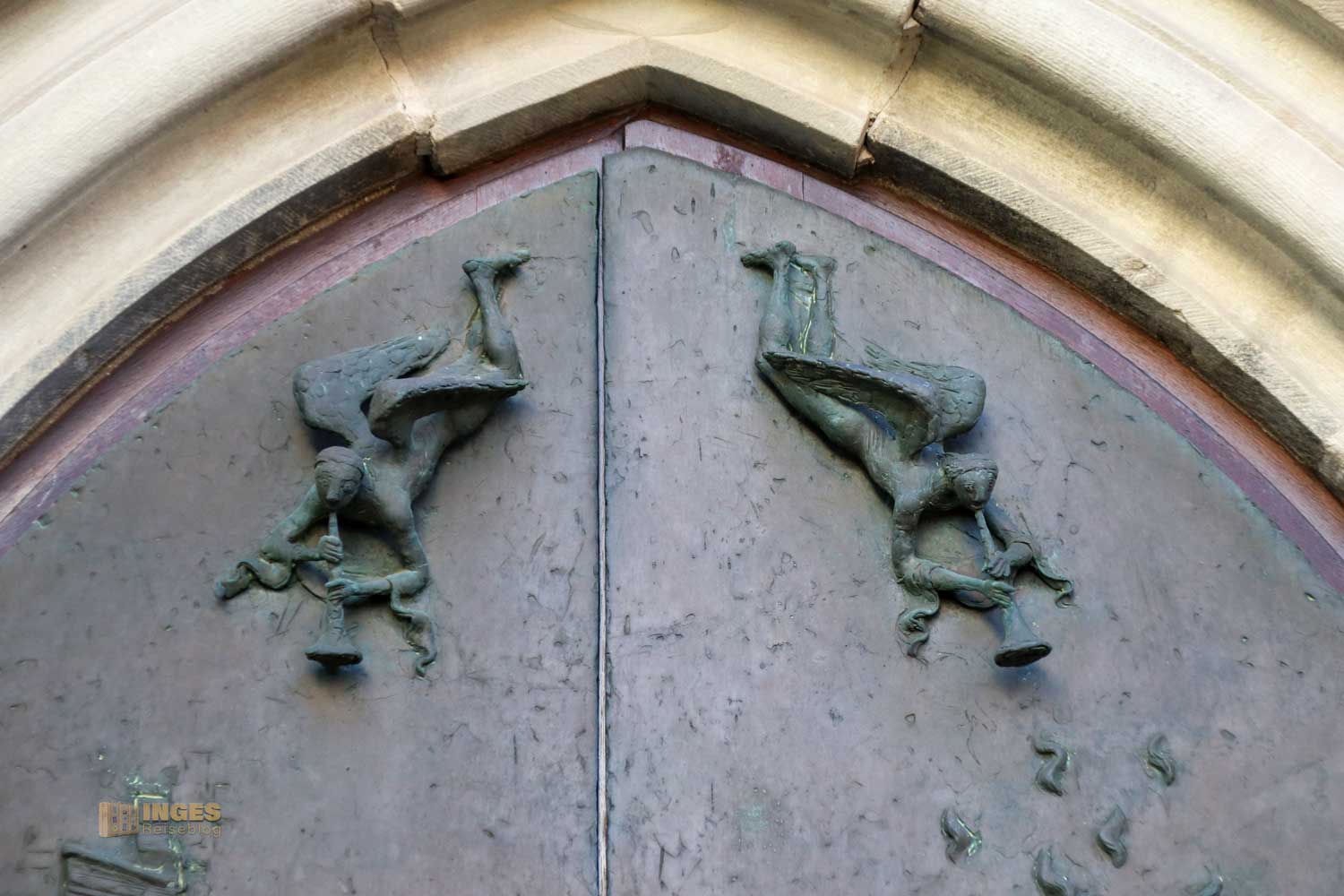 darf ausgiebig betrachtet und interpretiert werden. Erst ein paar Tage davor stand ich vor einer ähnlichen Kirchentüre, die, noch aufwändiger gestaltet, die Eingangstüre zur evangelischen Stadtkirche in Göppingen ist.
