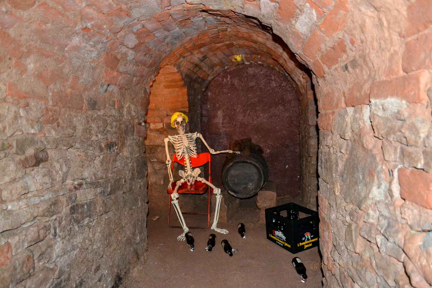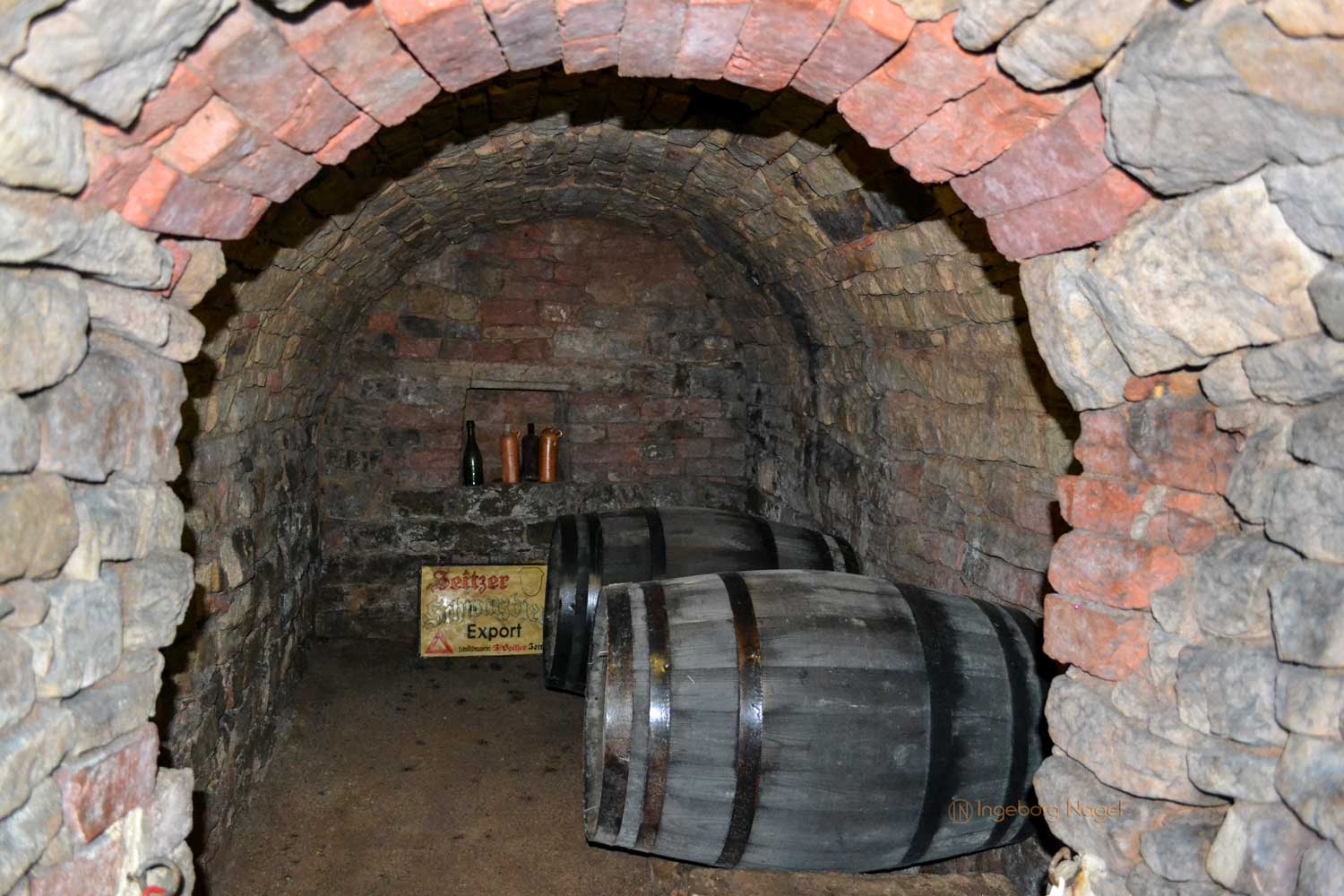 Soweit so gut, das Bier musste aber auch reifen und lagern. Und dazu brauchte es eine konstante Temperatur, die mit 11-13 Grad Celsius in den Gewölben gegeben war. Das war aber nicht der einzige Grund, bis zu acht Meter in die Tiefe zu gehen. Denn brauen durfte nur derjenige, der auch eine entsprechende Lagerkapazität nachweisen konnte. Viele kleine Keller ergaben auch ein Großes, denn einen großen Keller anzulegen war viel zu mühsam. Schaut mal, wie das aussieht ....