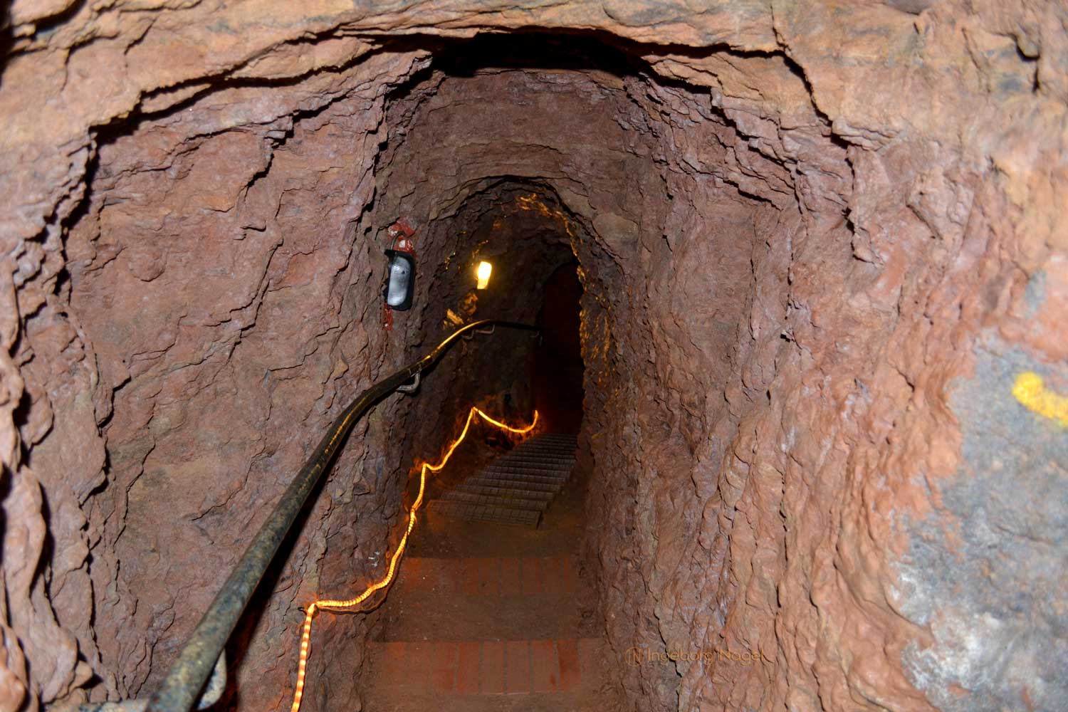 Die Gänge selbst sind ganz verschiedenartig angelegt - tunnelartig mit nach oben zulaufenden Wänden (jetzt weiß ich auch, warum der Helm so wichtig ist!), oft waagerecht begrenzt oder mit rundlichen Bögen. Manchmal sind die Seitenwände sorgfältig geglättet und 'Stein auf Stein', manchmal einfach so gelassen wie man den Weg aus dem Stein geschlagen hat.