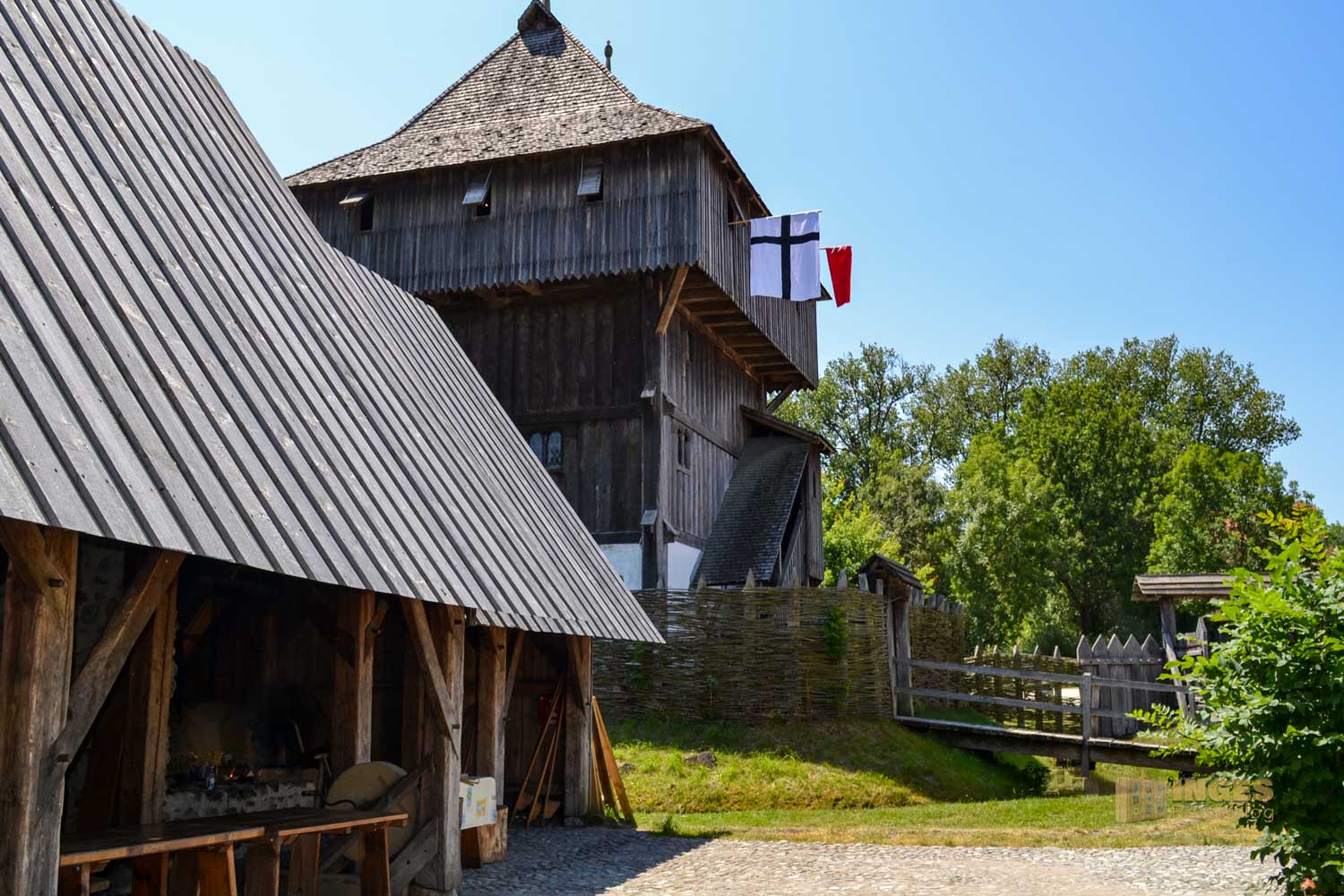 Einzigartig ist dieser erste Nachbau einer Holzburg, und mit viel Liebe zum Detail wurden in der Anlage alle Bauten, Möbel, Geräte und Einrichtungsgegenstände nachgebaut. Und nicht etwa hinter Glasvitrinen versteckt, sondern so, als würde man sich als Bachritter oder Burgfräulein der mittelalterlichen Arbeit widmen.