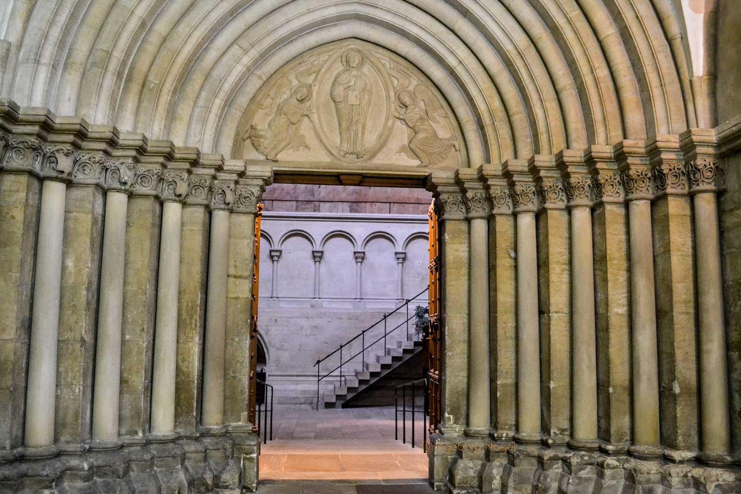 Der Lettner hat aber noch eine weitere Funktion wie nur den Chor vom Langhaus abzutrennen, und damit die Geistlichkeit vom Laienvolk. Es wird auch als eine Art Lesebühne bezeichnet, von der aus sich der Geistliche an die Laien im Langhaus richten konnte. Die beiden Türen rechts und links neben dem Altar, die in den Ostchor hochführen, ermöglichten es der Geistlichkeit bei Zeremonien oder Prozessionen direkt zu ihren Plätzen im jeweiligen Block des Chorgestühls oben im Ostchor zu kommen. Getrennt vom Volk und bei ausgewählten Anlässen doch in der Nähe. Geschickt gelöst wie ich finde.
