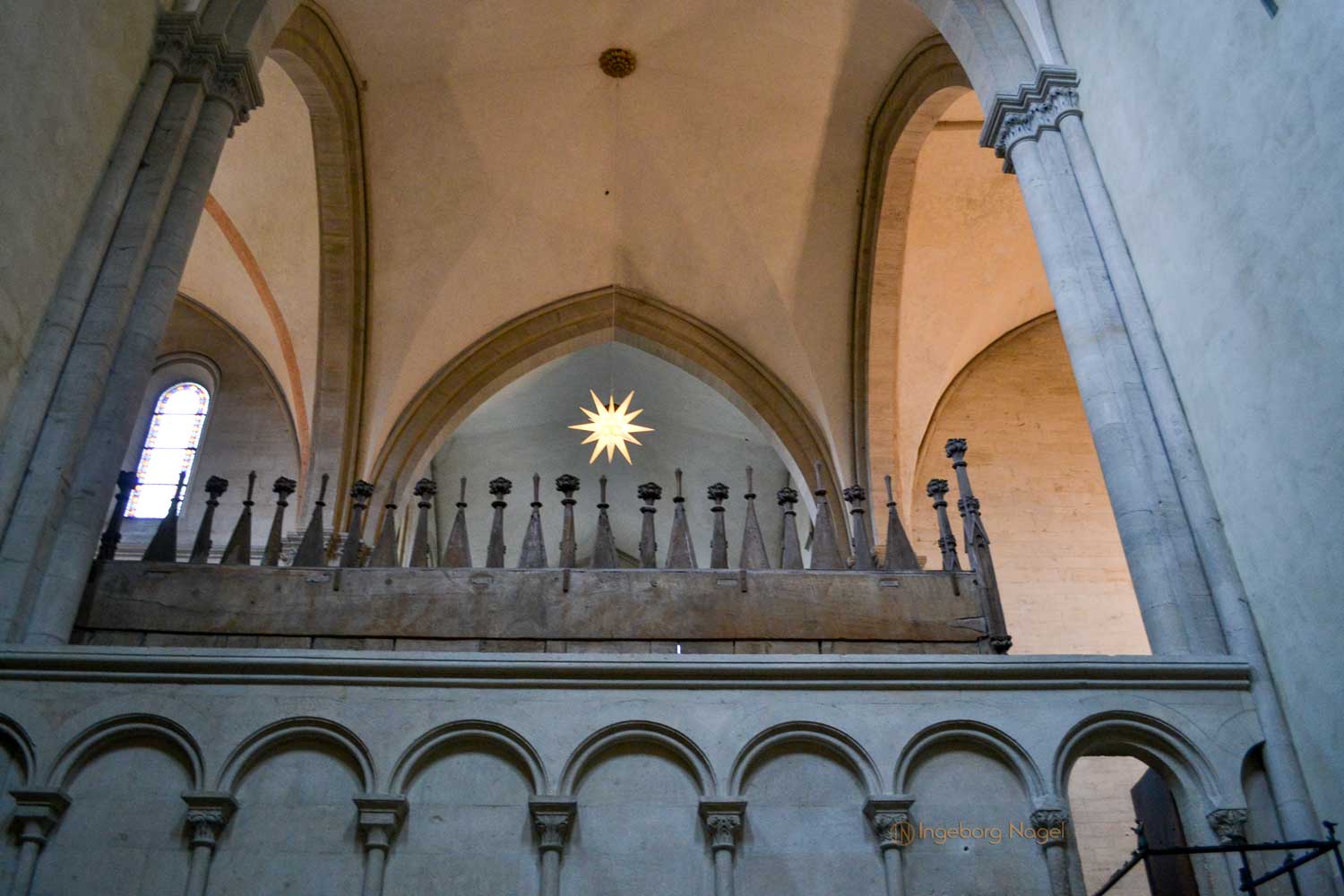 Wenn man von unten nach oben auf den Ostchor blickt, fällt der Blick auf den Ostlettner.