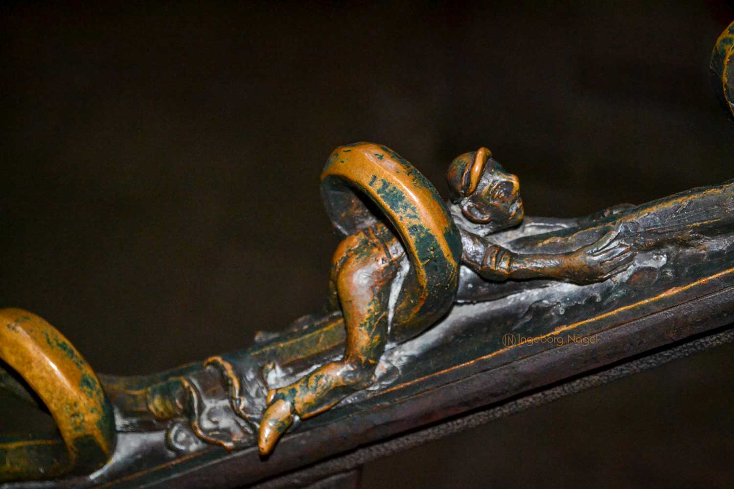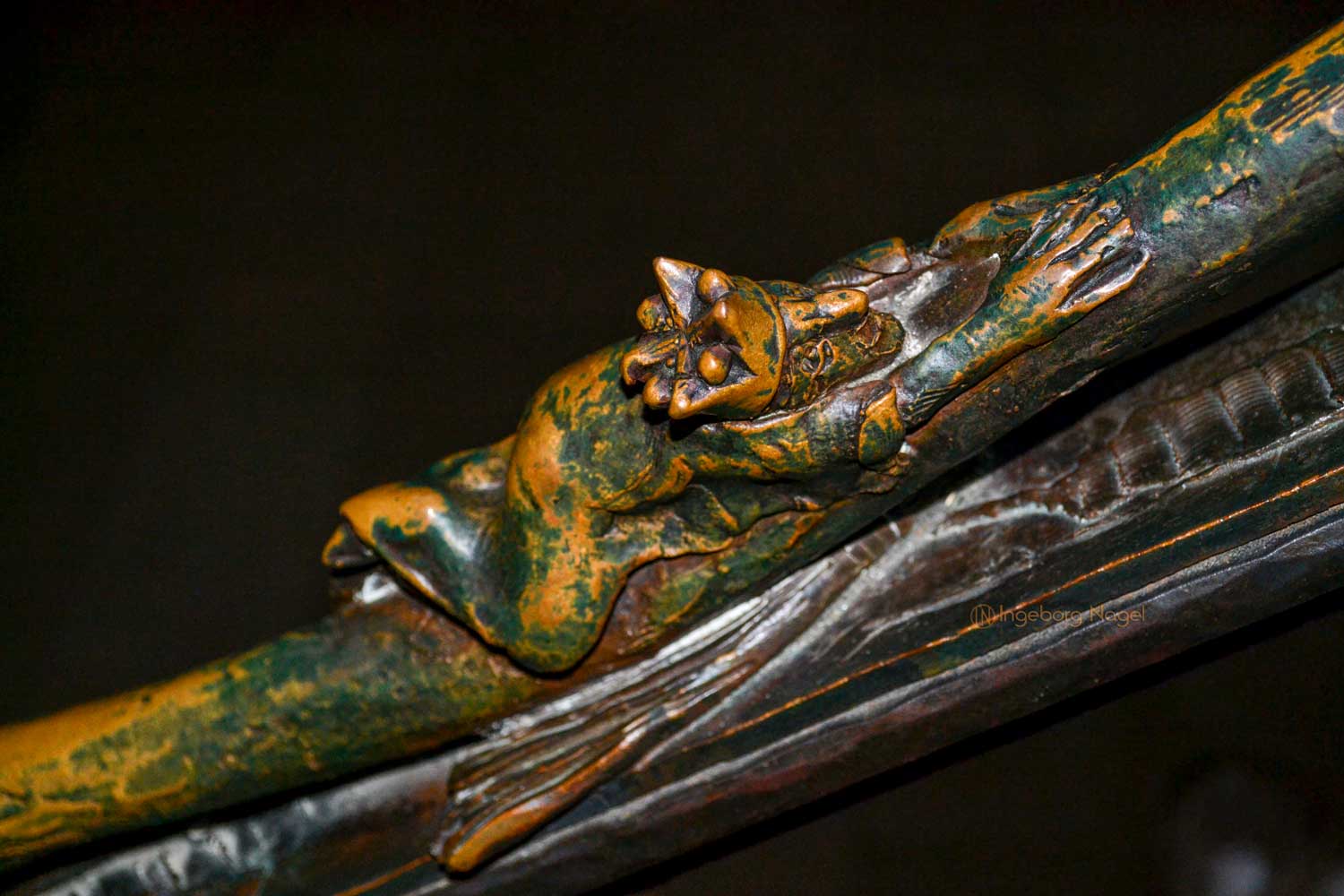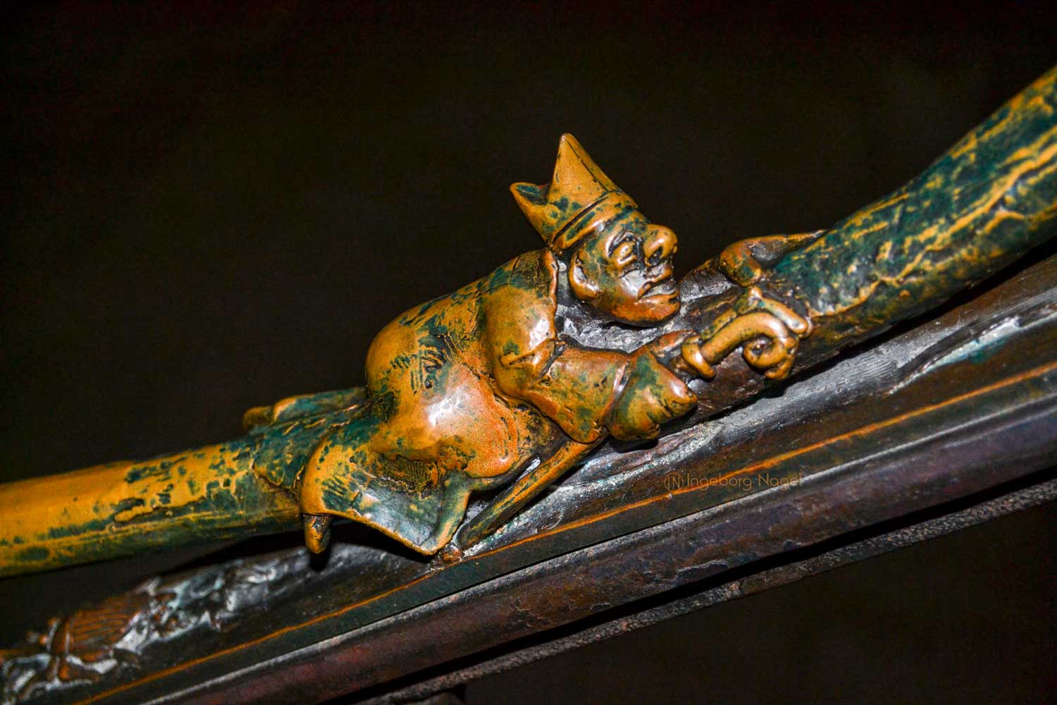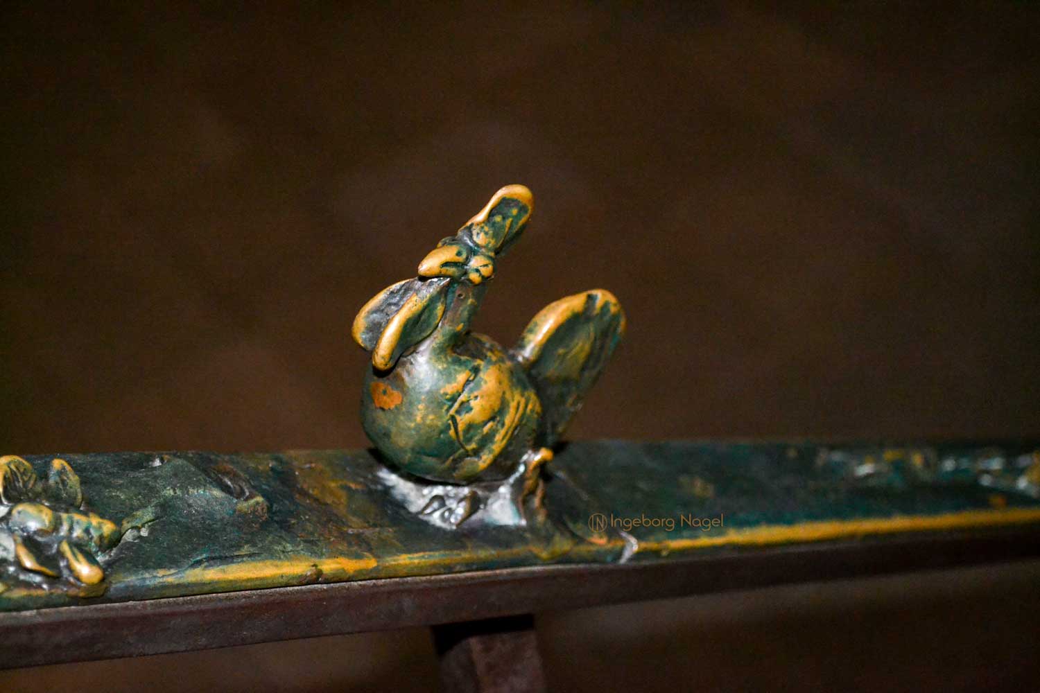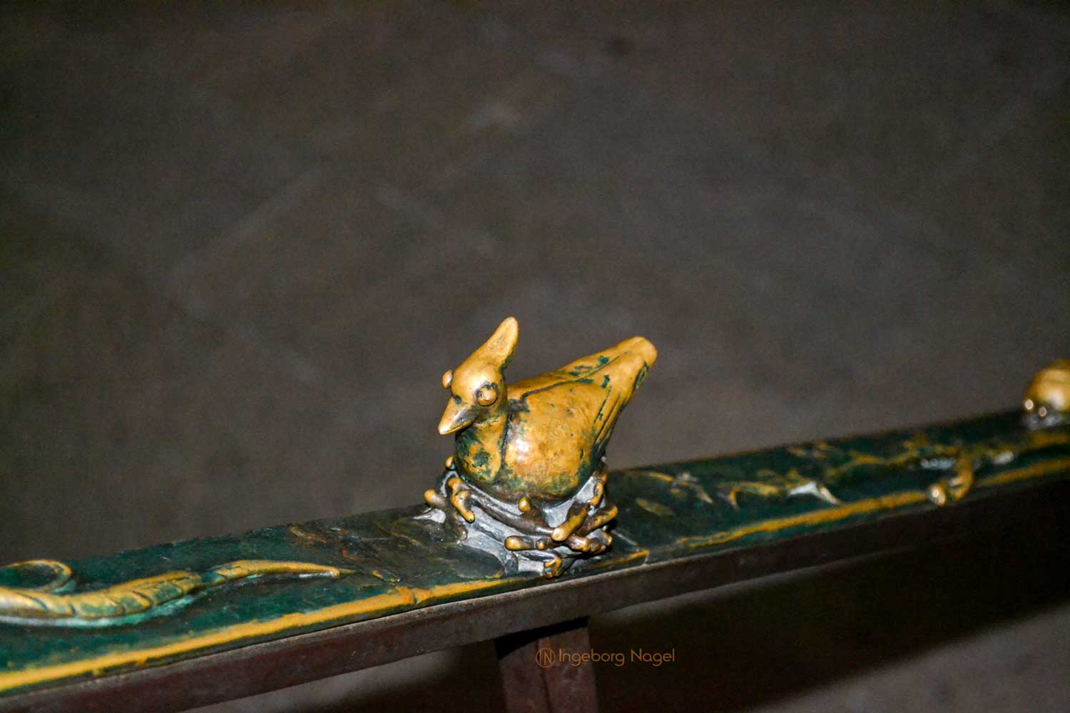 Von beiden Querhäusern geht der Blick nach oben in den Ostchor. Steinerne Stufen führen hinauf und ich war fasziniert über die beiden bronzenen Handläufe, die in den 70er und 80er Jahre von Heinrich Apel geschaffen wurden. Auf der Nordseite werden Szenen von "Der schmale Pfad ins Paradies" (teilweise auch ironisch dargestellt) gezeigt, auf der Südseite ist der "Hl. Franziskus der zu den Tieren predigt" dargestellt. Ich war begeistert ....
