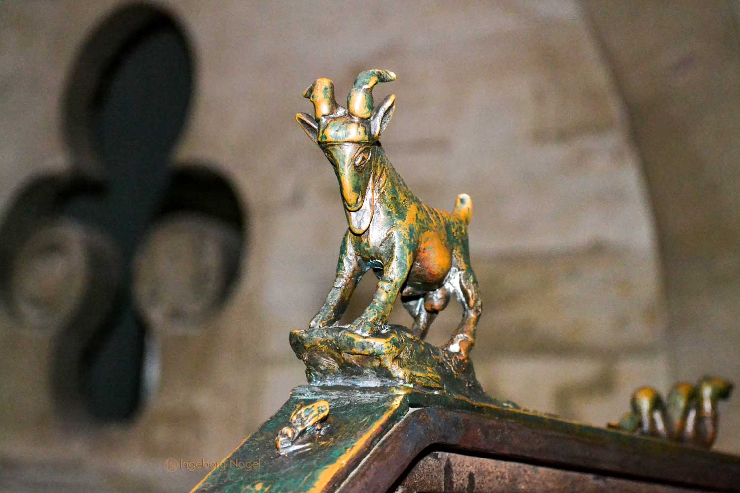 Die steinerne Skulptur, die um 1250 vom Naumburger Meister geschaffen wurde, stellt den weltweit ältesten sogenannten Atzmann dar. Dies ist eine Sonderform eines Lesepults in Gestalt eines Diakons, die dem Priester durch das Halten der Messbücher am Altar assistierten.