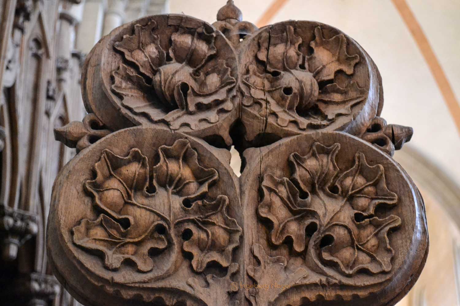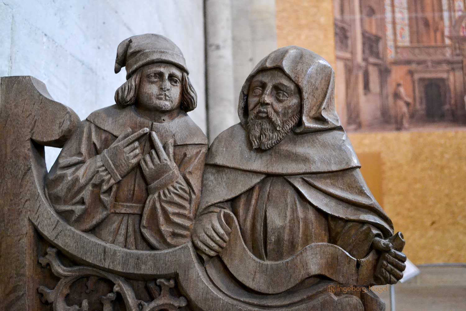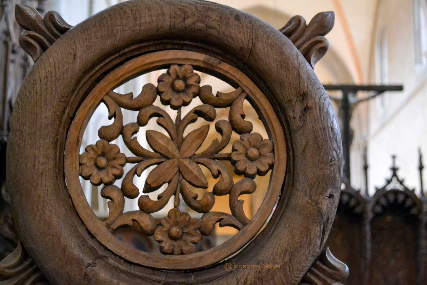 Beeindruckend finde ich das Chorgestühl des Ostchors. Aufgrund der Vergrößerung der Geistlichen wurde das anfänglich geschaffene Chorgestühl aus dem 13. Jahrhundert im 14. Jahrhundert umfangreich auf 42 Stallungen erweitert. Da der Ostchor ja das liturgische Zentrum des Dom war, trafen sich die Domherren und Vikare an oft bis zu acht Terminen am Tag und in der Nacht zu gemeinsamen Gebeten und Gesängen.