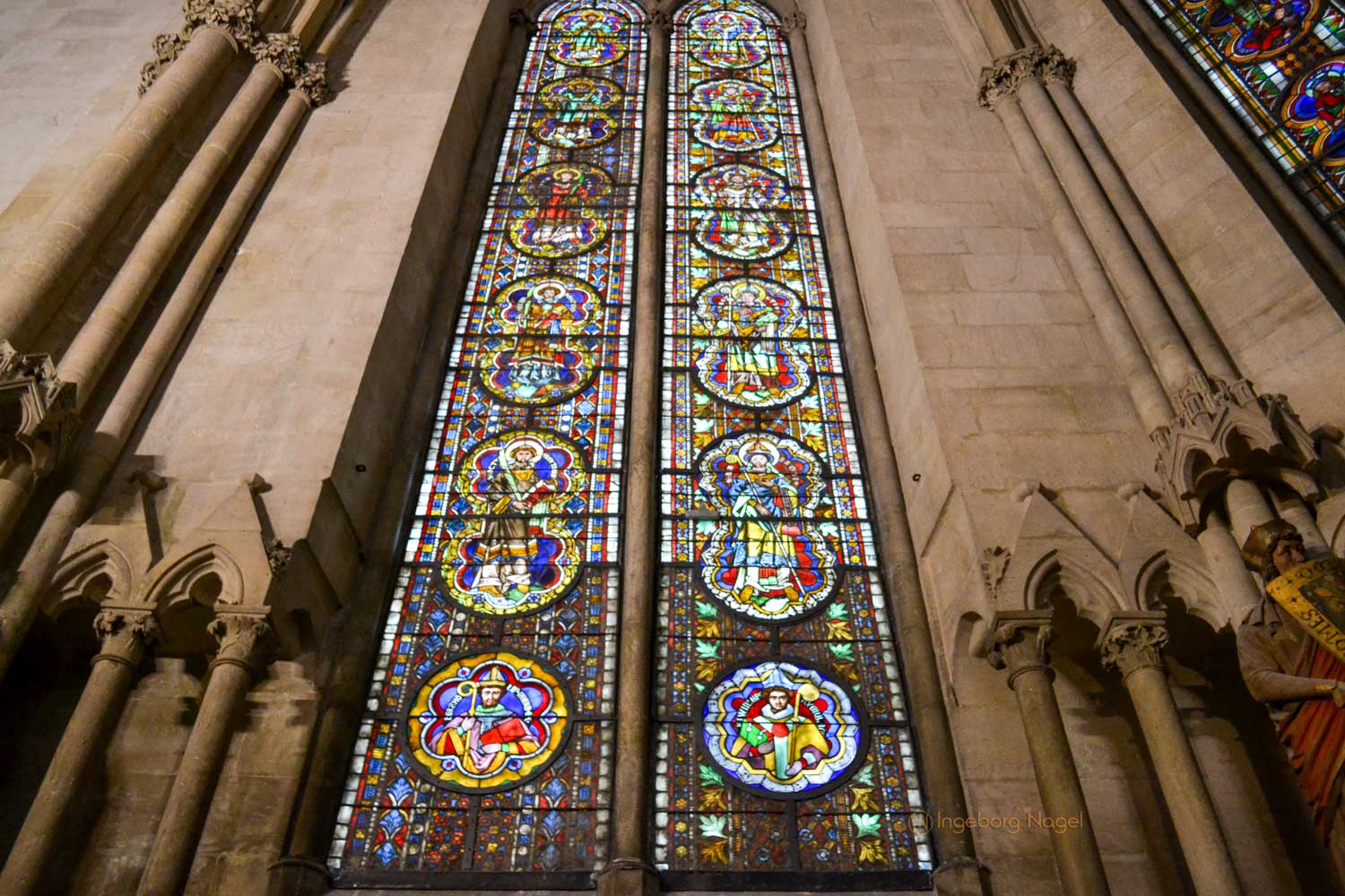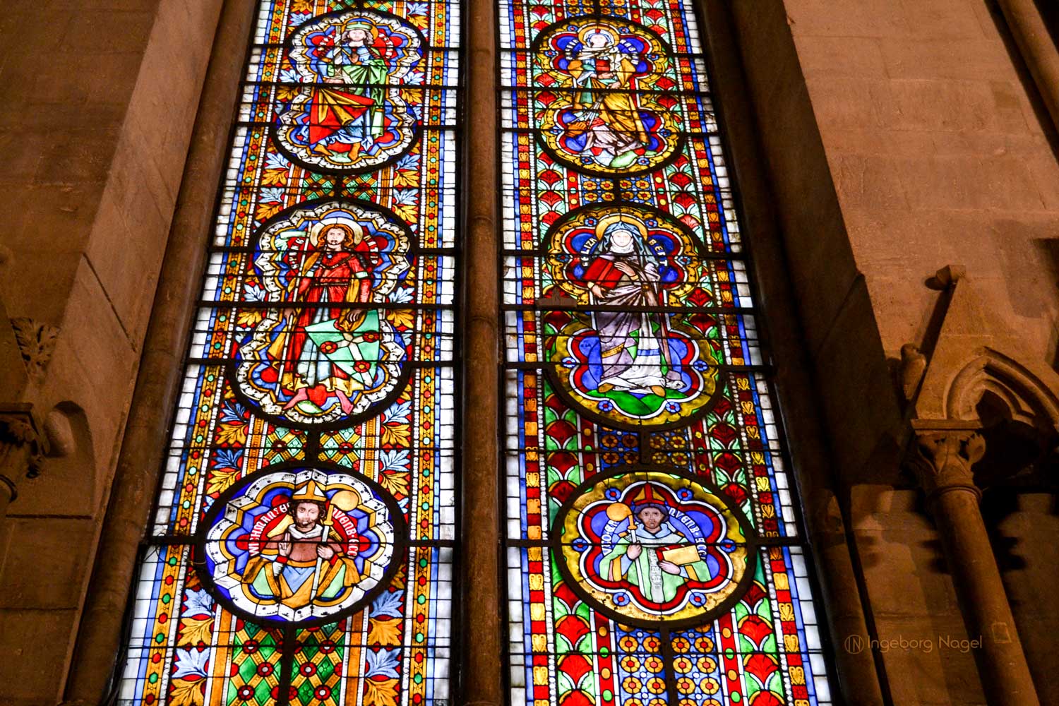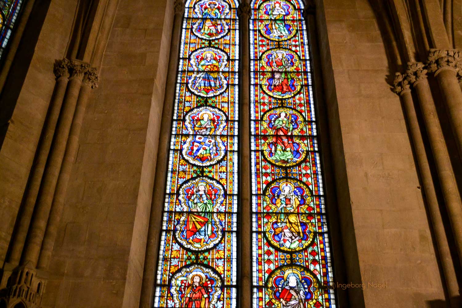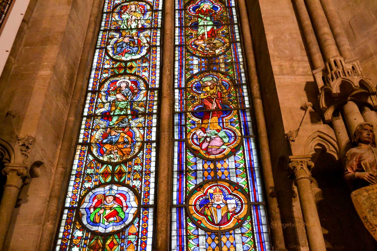 Ja, der Westlettner und der Westchor waren (neben dem Domschatz) die Plätze im Dom, wo wir uns am längsten aufgehalten haben. Tritt man durch das Portal in den Westchor, so fallen als erstes die Fenster des Chores ins Auge. Sie zählen zu den bedeutendsen Glasmalereifenster des Hochmittelalters. Von den fünf Fenstern enthalten drei den größten Teils des Originalbestandes aus dem 13. Jahrhundert.