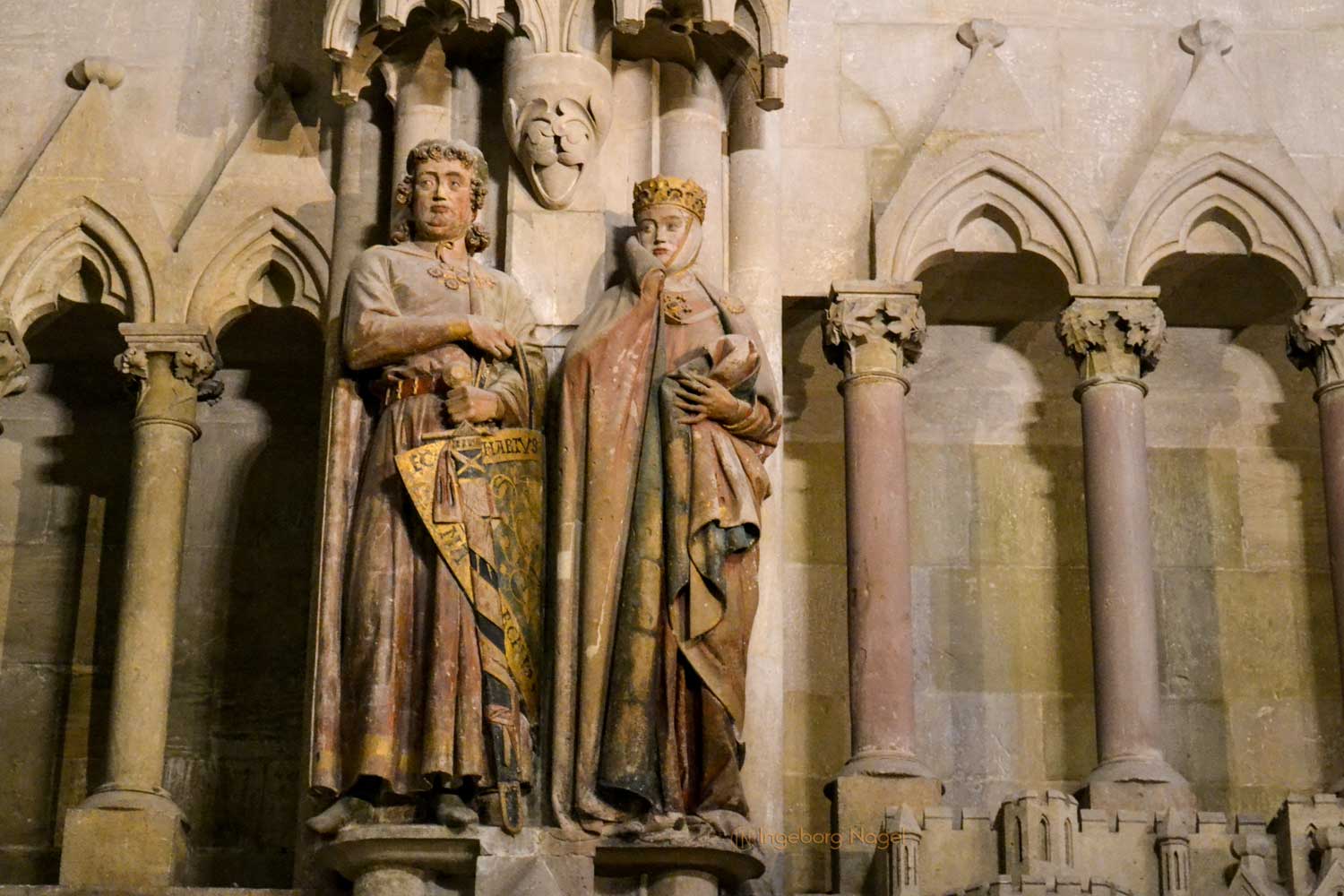 So wie sie als Stifterin im Dom dargestellt wird - den Mantelkragen zu ihrem Gemahl hin hochgeschlagen, so als wolle sie sich von ihm abschirmen, wirkt sie auf mich abgrenzend.