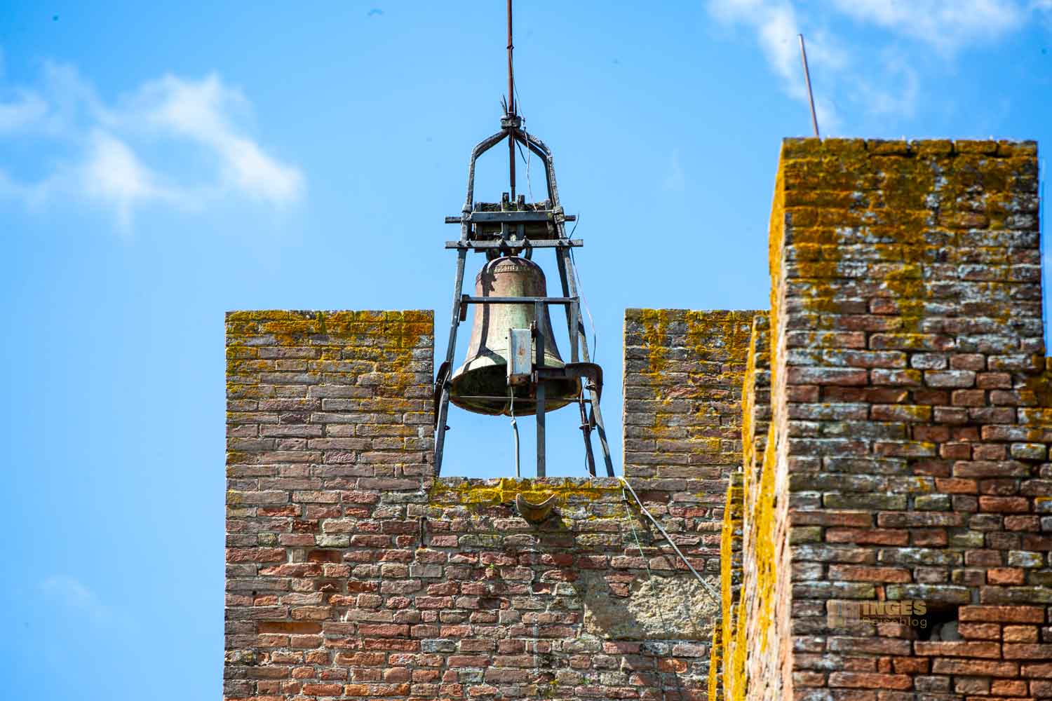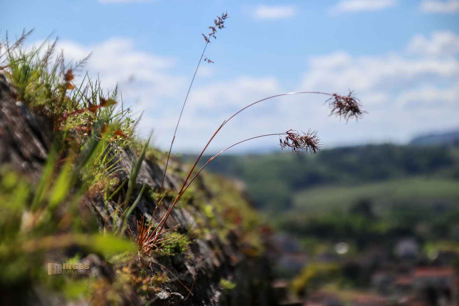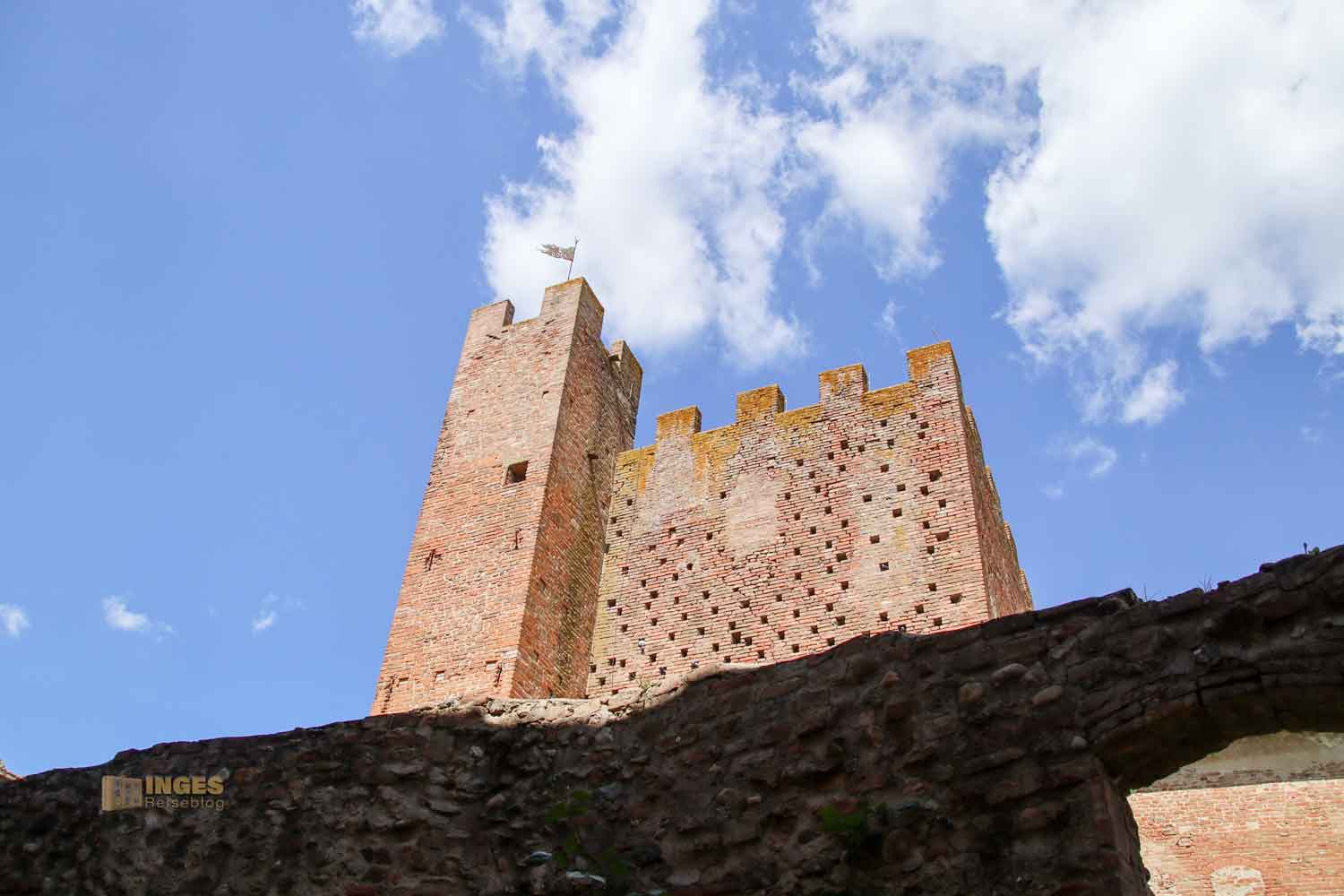 Die Burg wurde damals direkt an die Stadtmauer des kleinen Hügelortes gebaut (oder vielleicht auch umgekehrt? 😊), und über eine kleine Treppe kann man einen Teil davon erklimmen. Mit dem Ergebnis -
