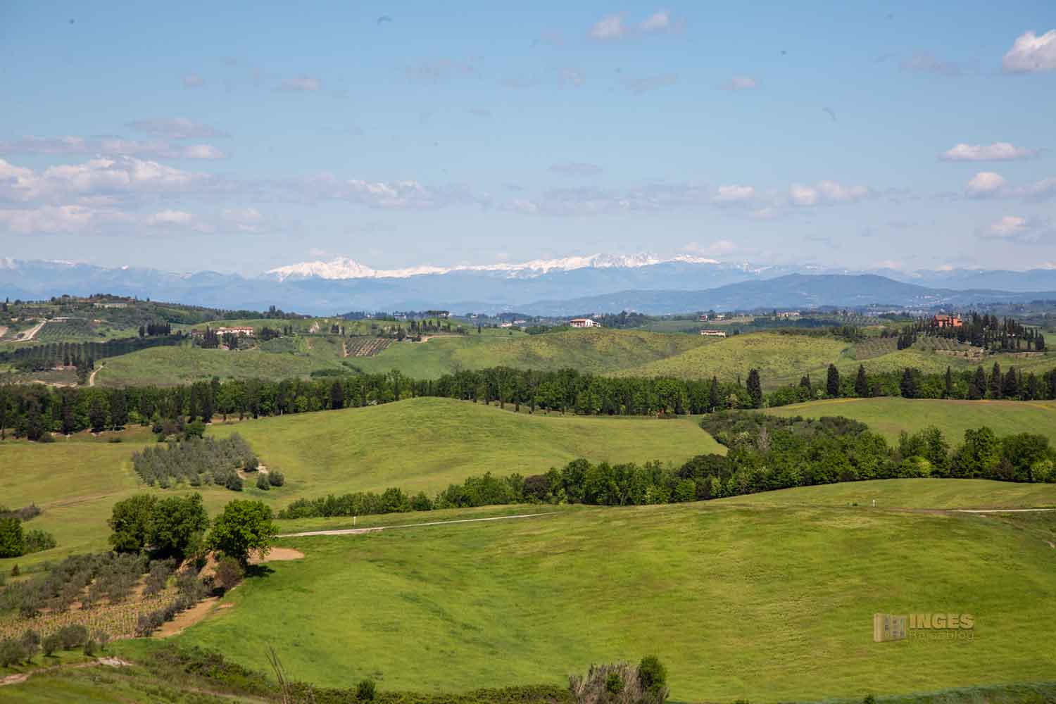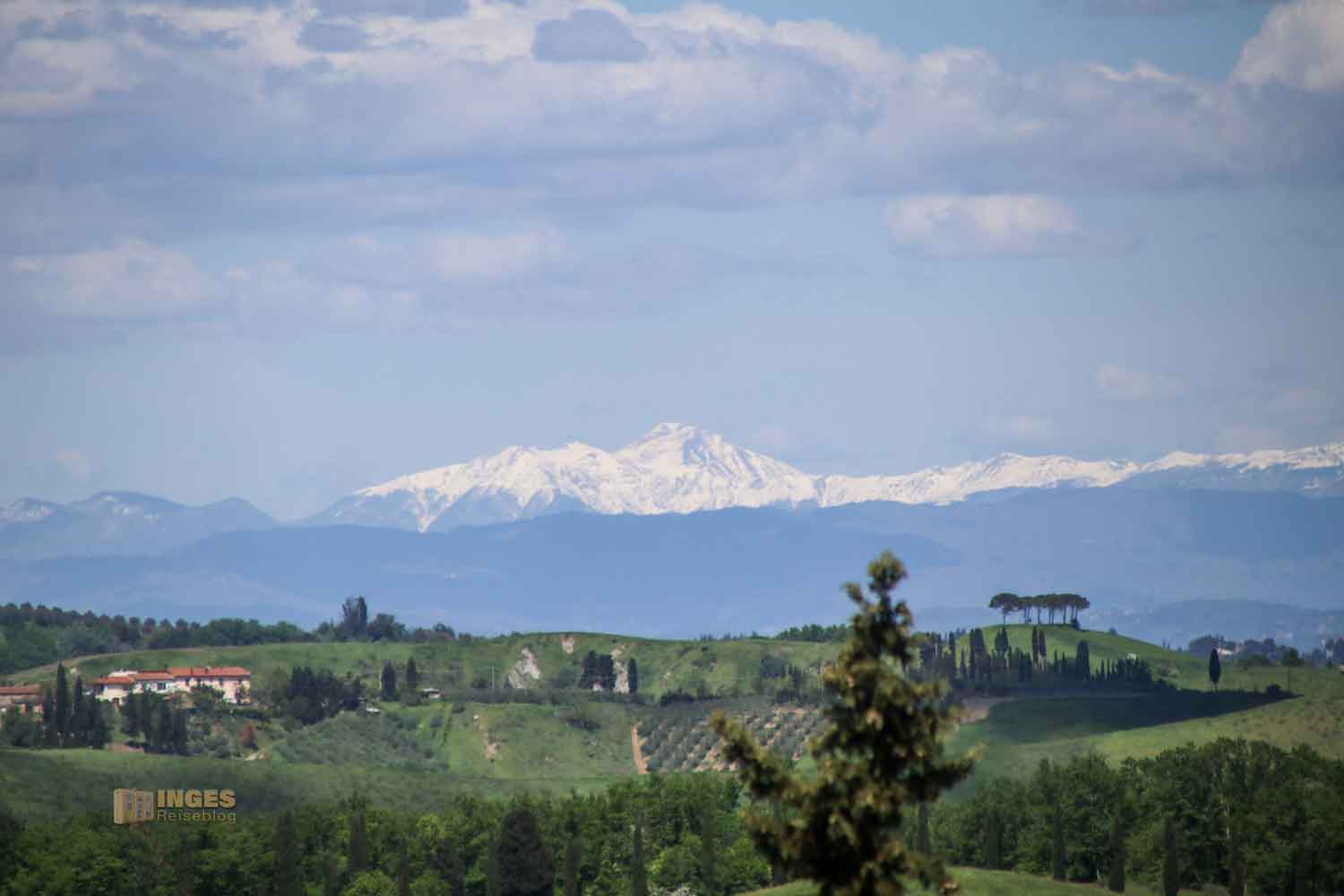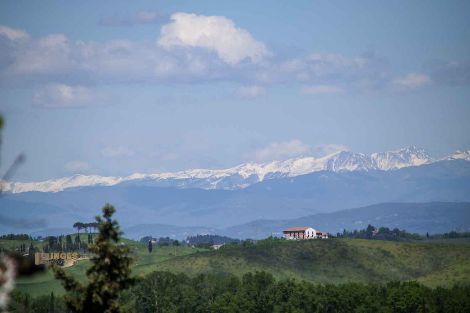 Absolut traumhaft sind die Ausblicke Richtung Norden zum Apennin Gebirgszug. Rund 1500 km zieht er sich durch ganz Italien. Der nördliche Teil, der Beginn des Gebirgszug liegt nördlich von Lucca, doch eine ganz schöne Strecke von unserem Standort aus.