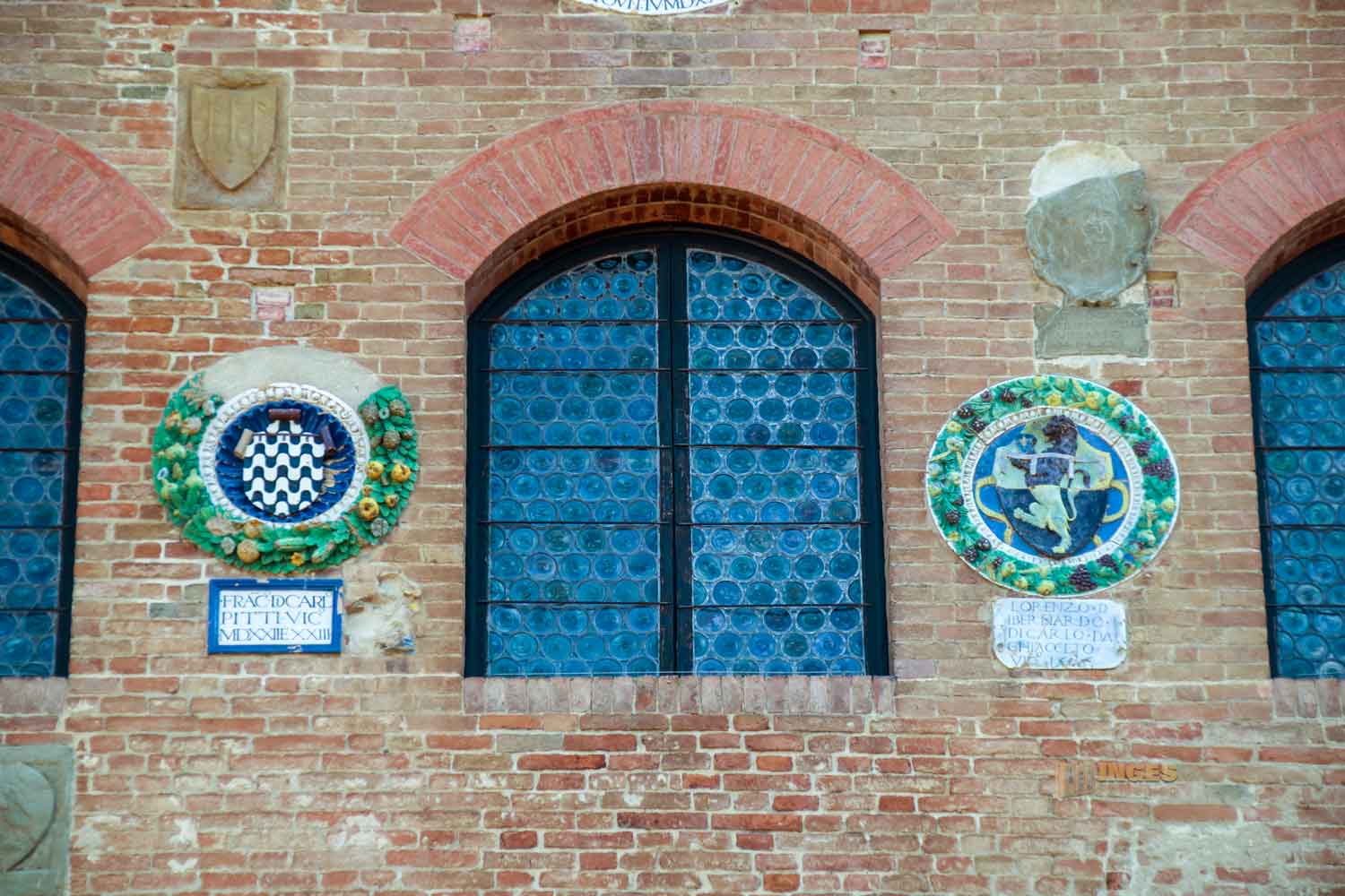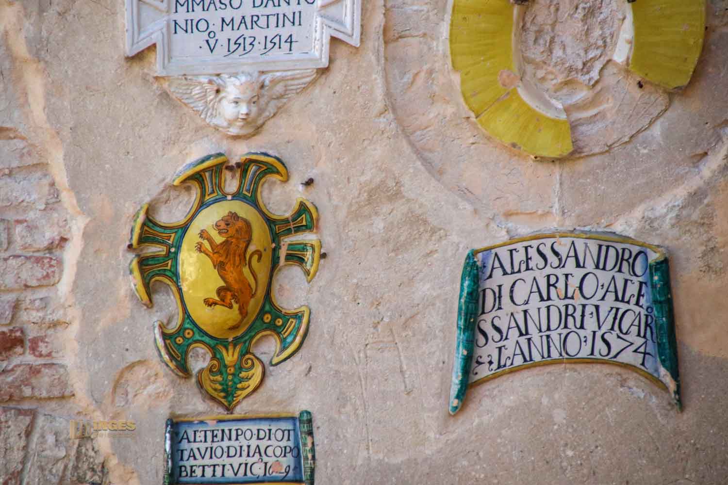 Die Wappen im Innenhof des Palazzo Pretorio in Certaldo