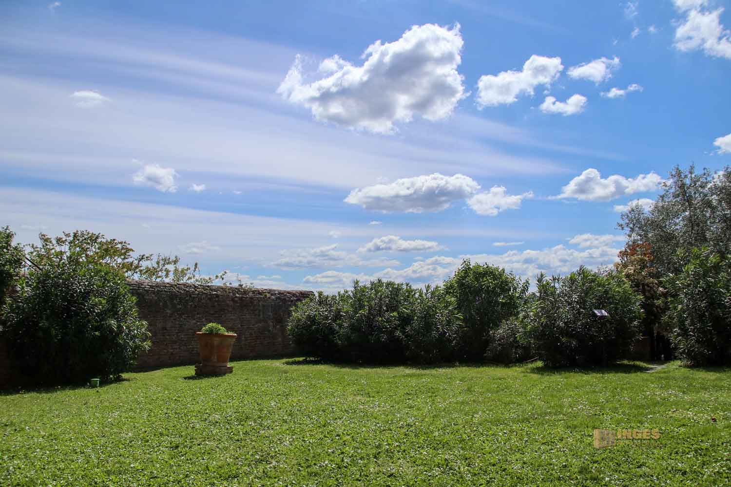 Über die Treppen geht es wieder nach unten in den Innhof des Palazzo, bei dem mich eine kleine geöffnete Türe anzog. Die führte in einen kleinen Garten, und mitten darin steht