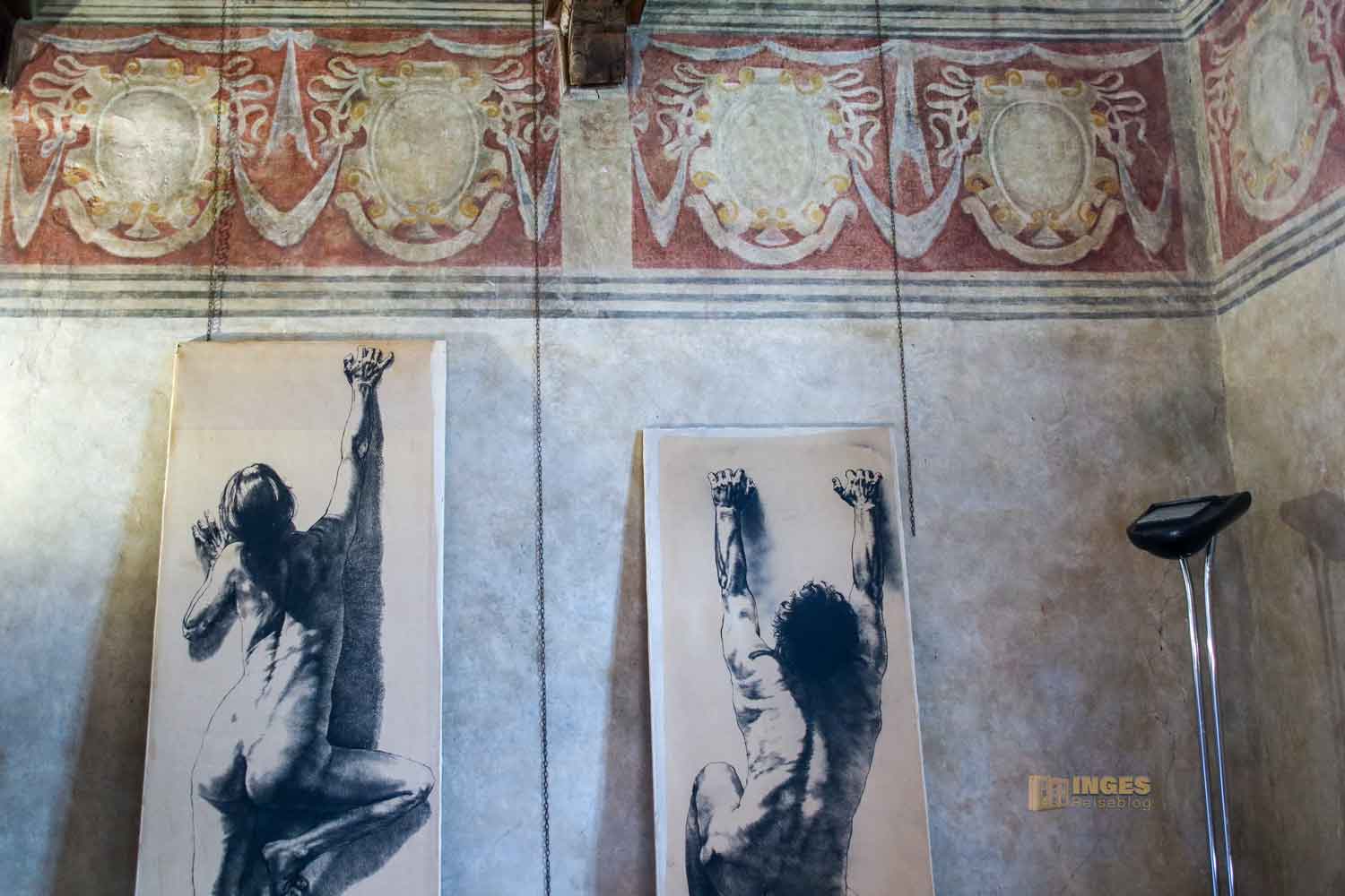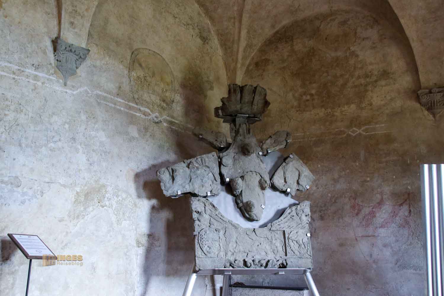 fort. Denn irgendwo musste der ja auch wohnen, samt Dienerschaft. Spuren von Fresken, mal mehr, mal weniger gut erhalten sind an den Wänden zu sehen. Die Räume werden für Ausstellungen genutzt.