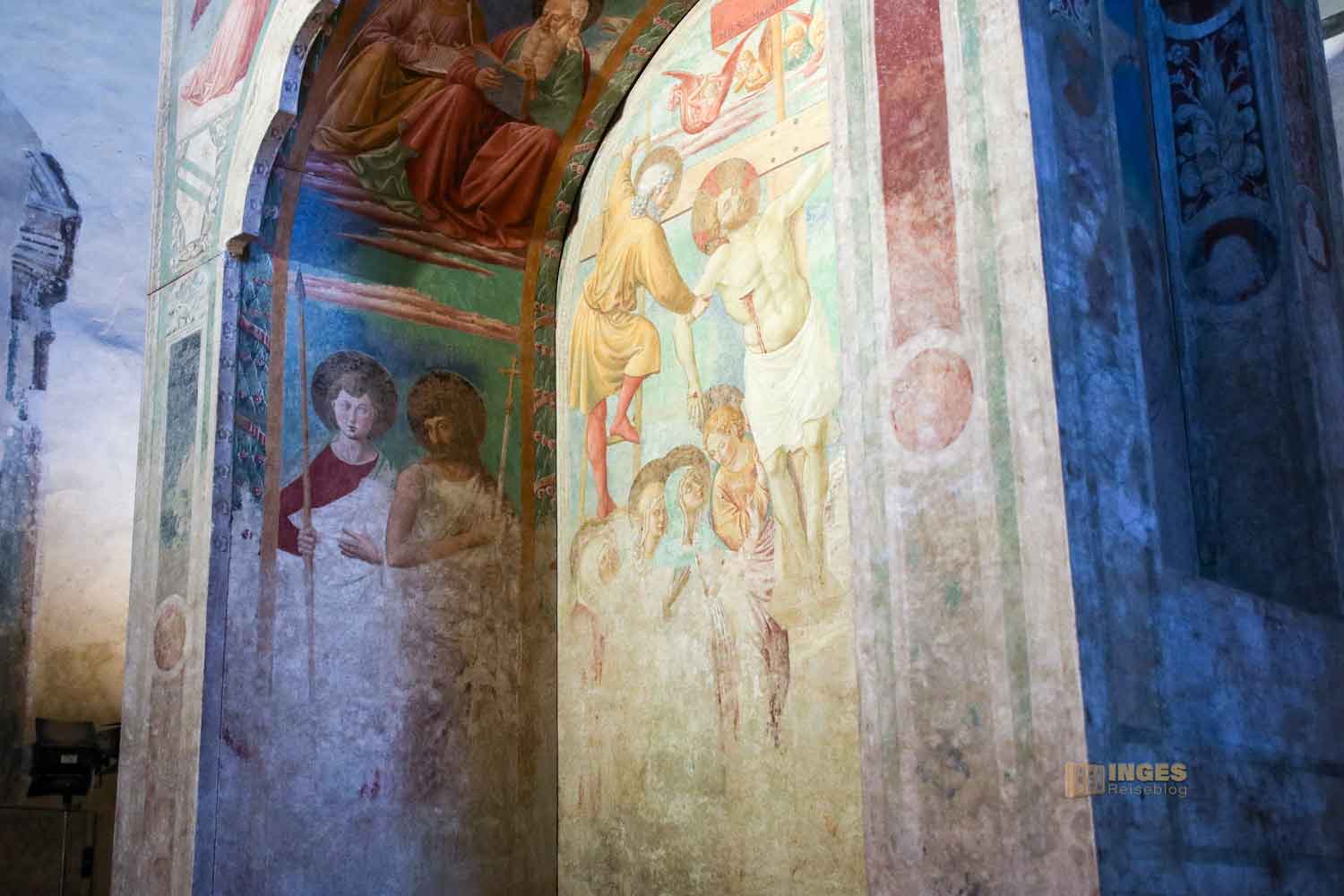 die teilweise doch noch recht gut erhalten sind. Auch hier ist das menschliche Leiden das Hauptthema, was z.B. das Martyrium des Hl. Sebastian zeigt. Nur einen kleinen Teil könnt ihr hier sehen. Den Rest dürft ihr selbst vor Ort entdecken.