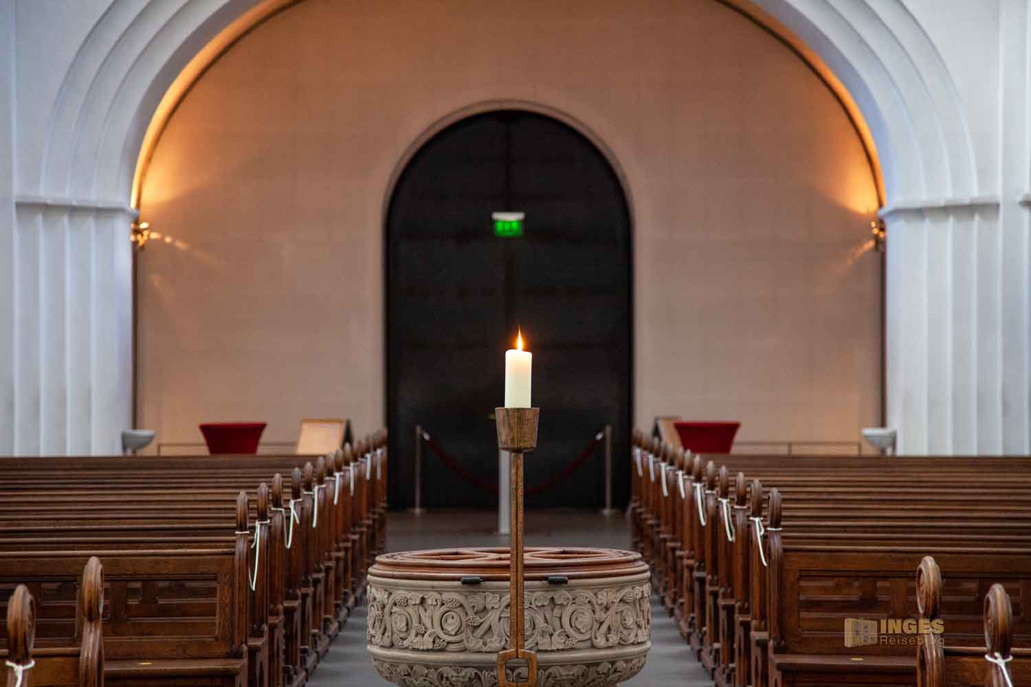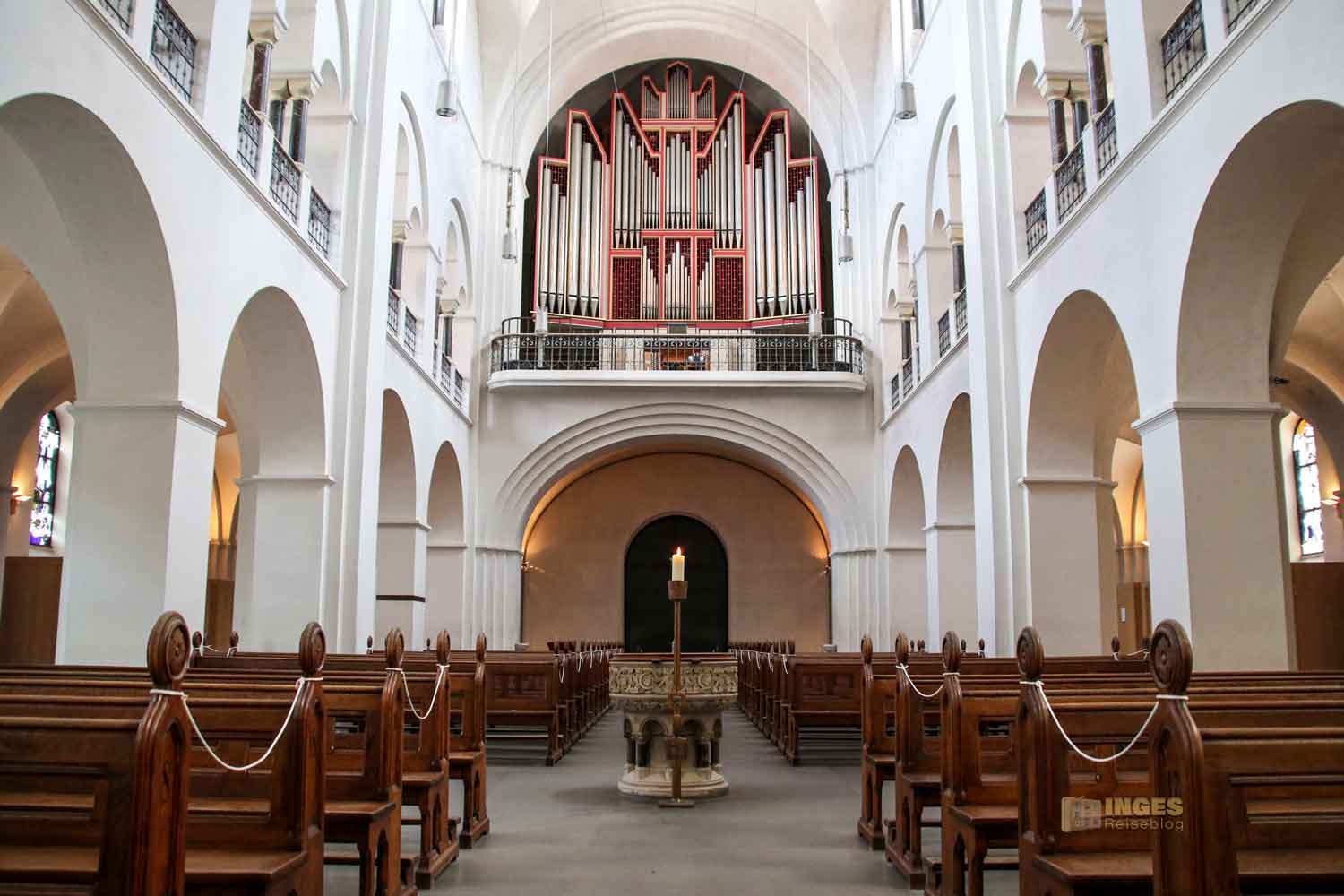 Ca. 50 Meter geht es vom Eingang der dreischiffigen Basilika im Neuromanischen Stil und für den Norden im typischen Backsteinstil bis zur
