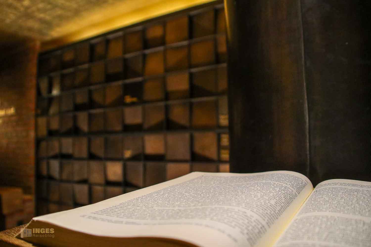 Nur noch der Hinweis: wir waren allein im Kolumbarium. Ansonsten hätte ich an diesem Ort der Trauer und Ruhe im Beisein von Menschen keine Fotos gemacht.