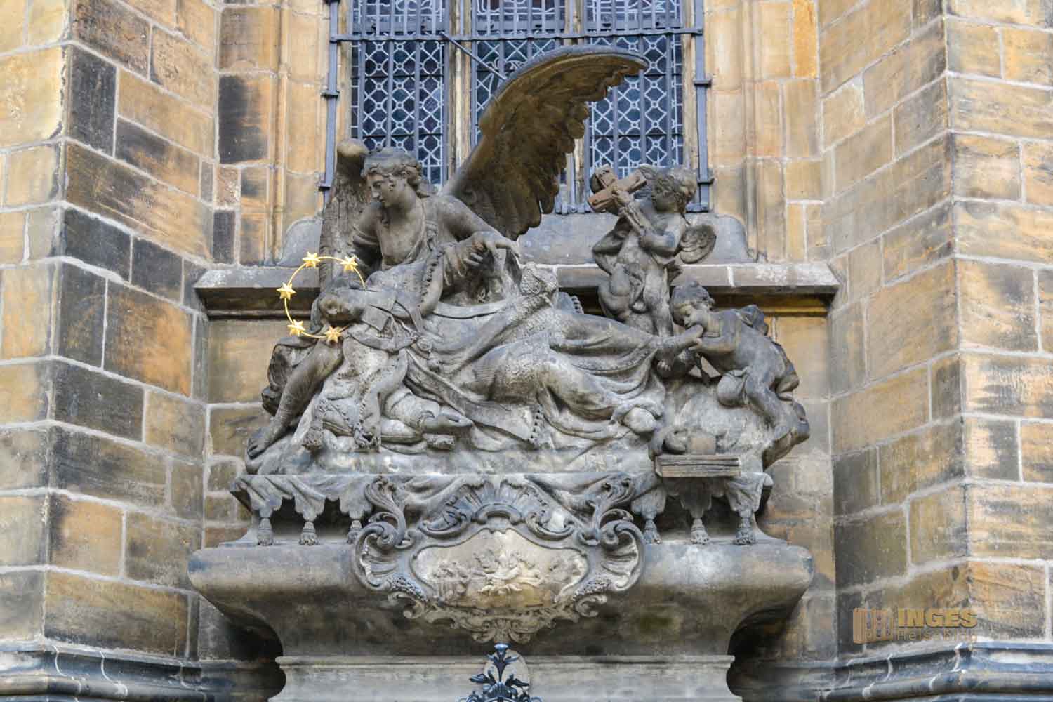 Insgesamt bietet die Südseite des Veitsdoms einige Hingucker, abgesehen von dem herrlichen Goldtor, zeigt sie noch ein Denkmal vom Hl. Nepomuk - und vielleicht entdeckt ihr den Hl. Wenzel auch noch?