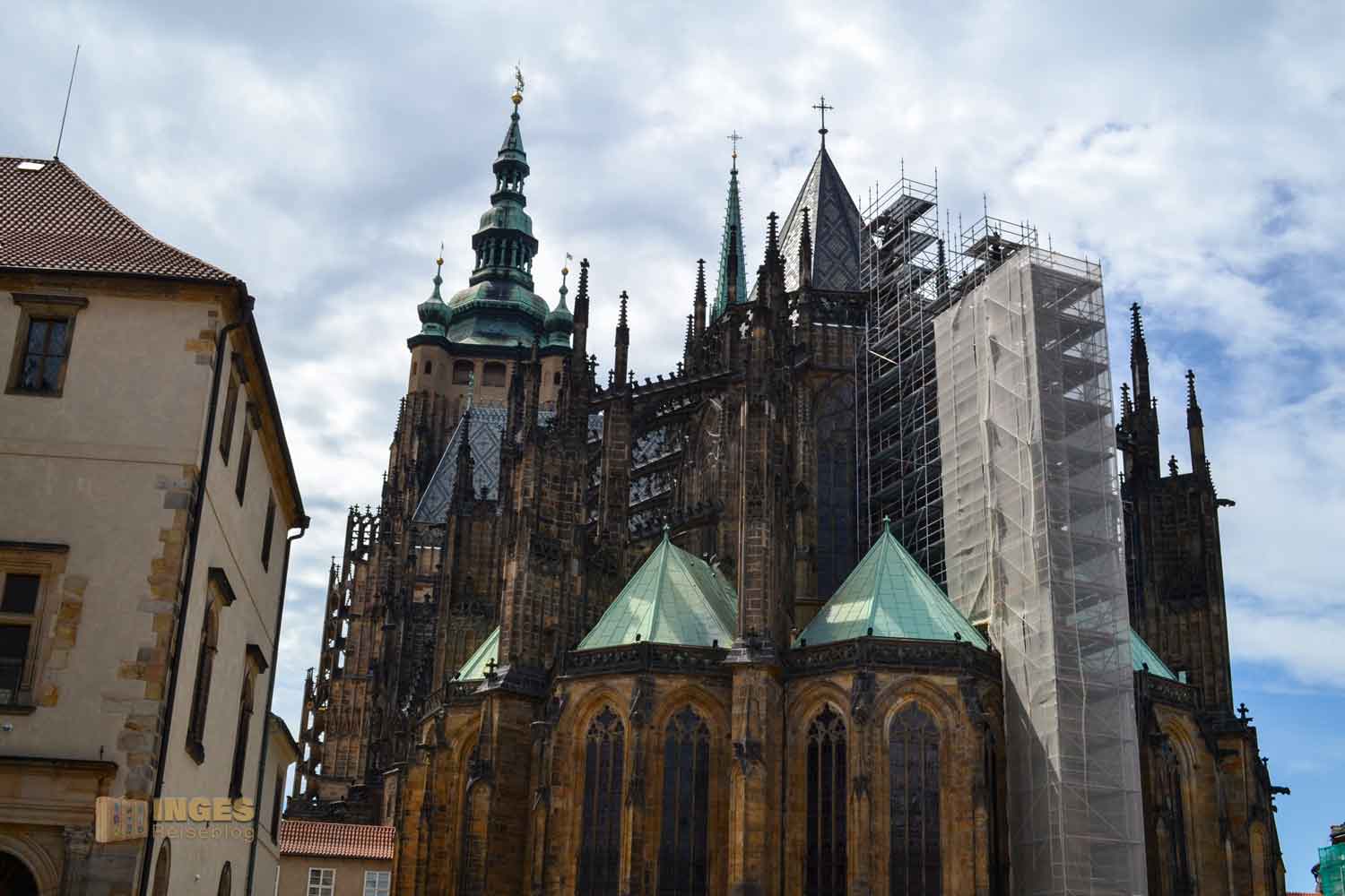 Man kommt sich schon sehr klein vor, wenn man hinauf zu den Türmen des Veitdoms schaut ...