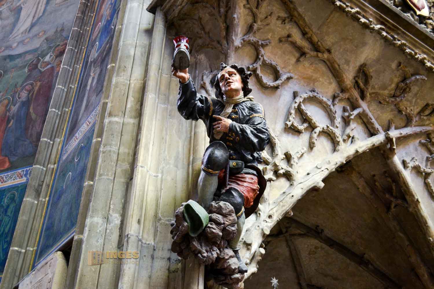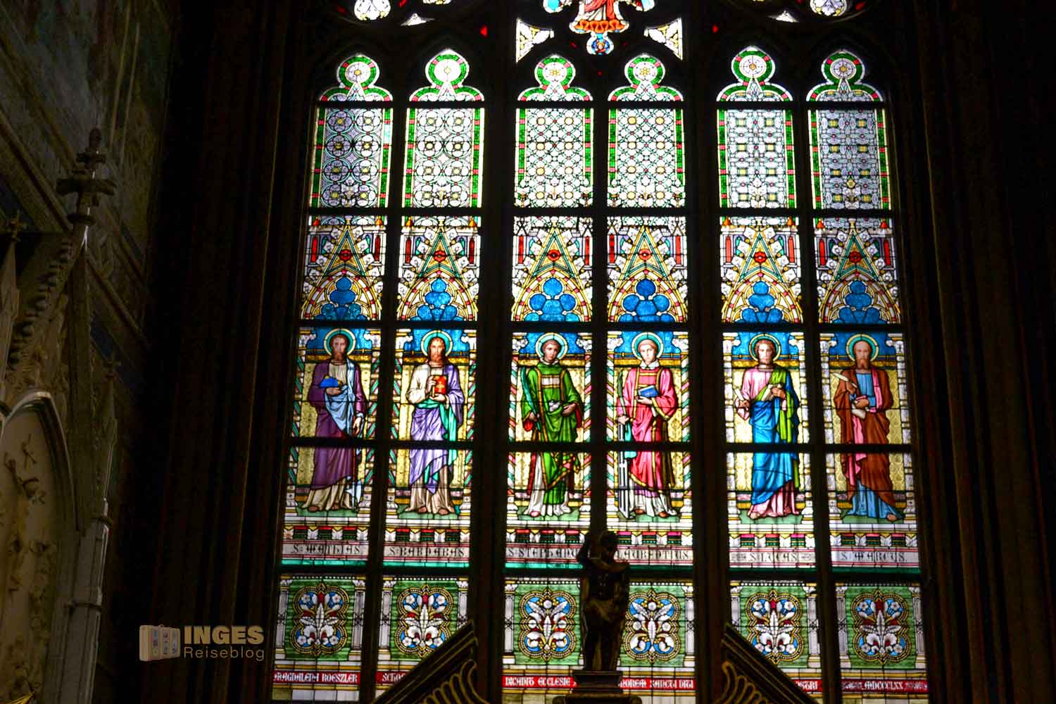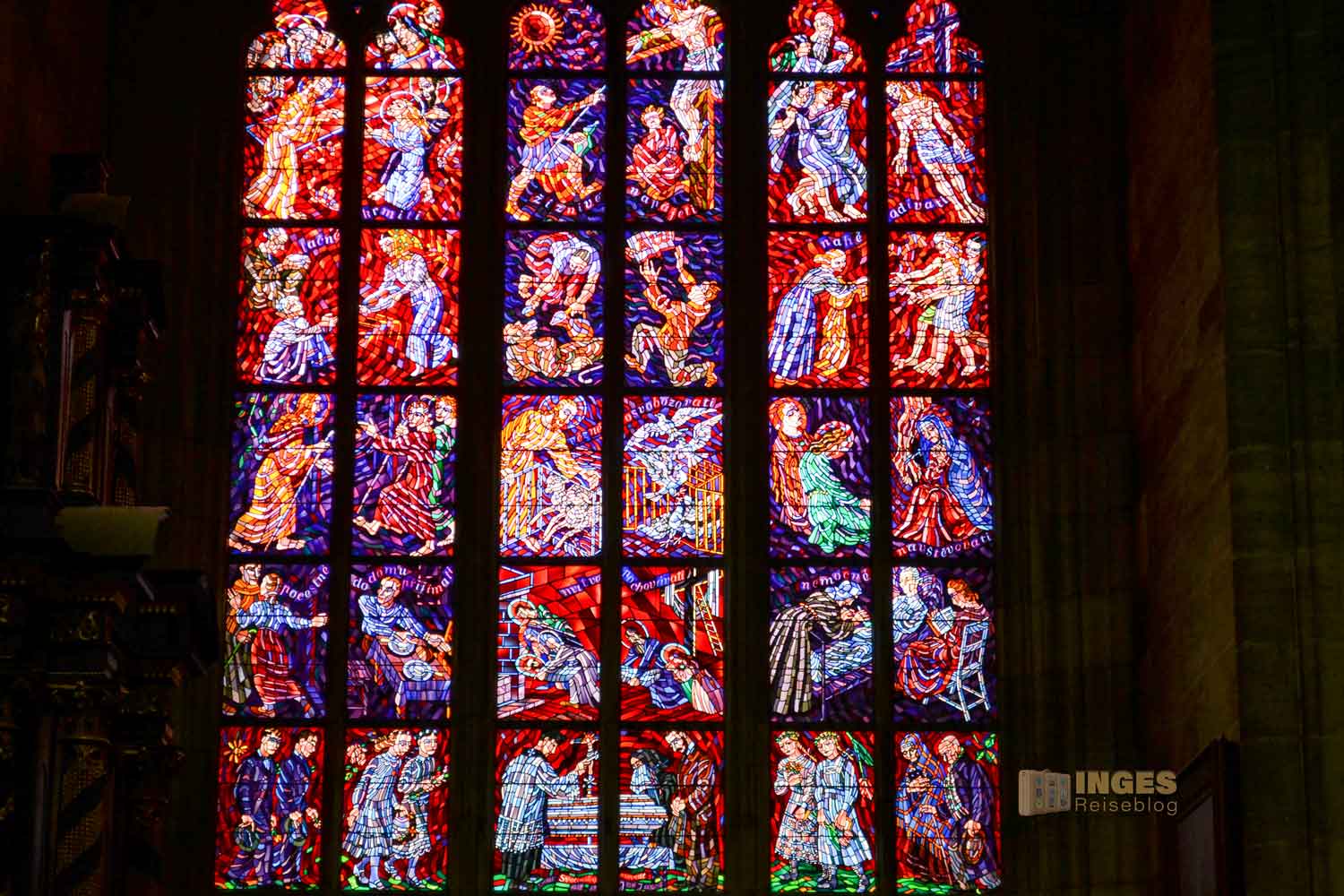 Auch die Fenster von Alfons Mucha fallen euch im Dom gleich auf. Am 1860 ist er in Mähren geboren und seine künstlerische Laufbahn begann eher weniger gut. Von der Prager Kunsthochschule wurde er abgelehnt, was ihn aber nicht davon abgehalten hat, sich die künstlerischen Fähigkeiten selber beizubringen. An der staatlichen Akademie in Münschen absolvierte er dann aber doch ein Studium. Er zählte zu den größten Künstler des Jugendstils und verstarb im Juli 1939.