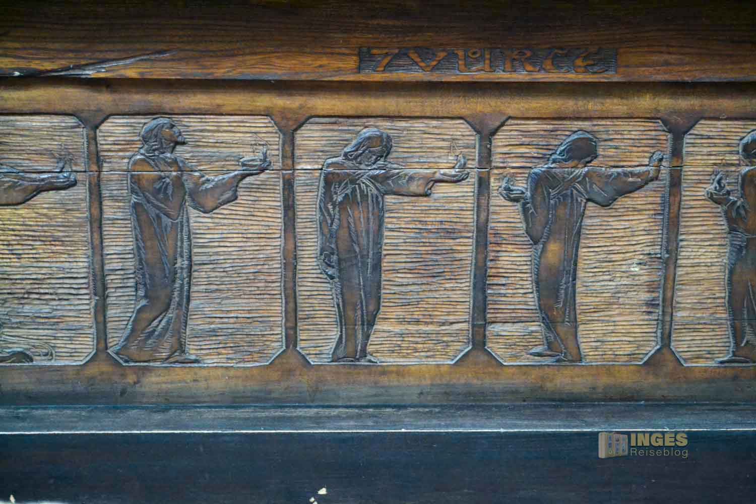 Eine Kapelle, die nicht auf den ersten Blick als Kapelle auffällt ist die Chorkapelle, die Kapelle des Allerheiligsten. Sie ist nicht zu besichtigen (bzw. war es bei unserem Besuch nicht). Aber allein schon die herrlichen Holztüren, hat mich eine Weile vor der Kapelle verweilen lassen.