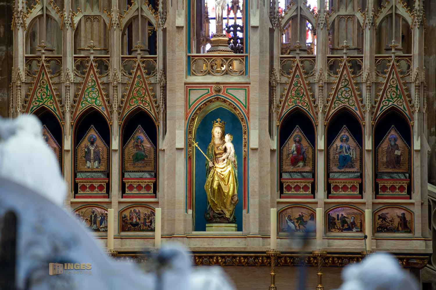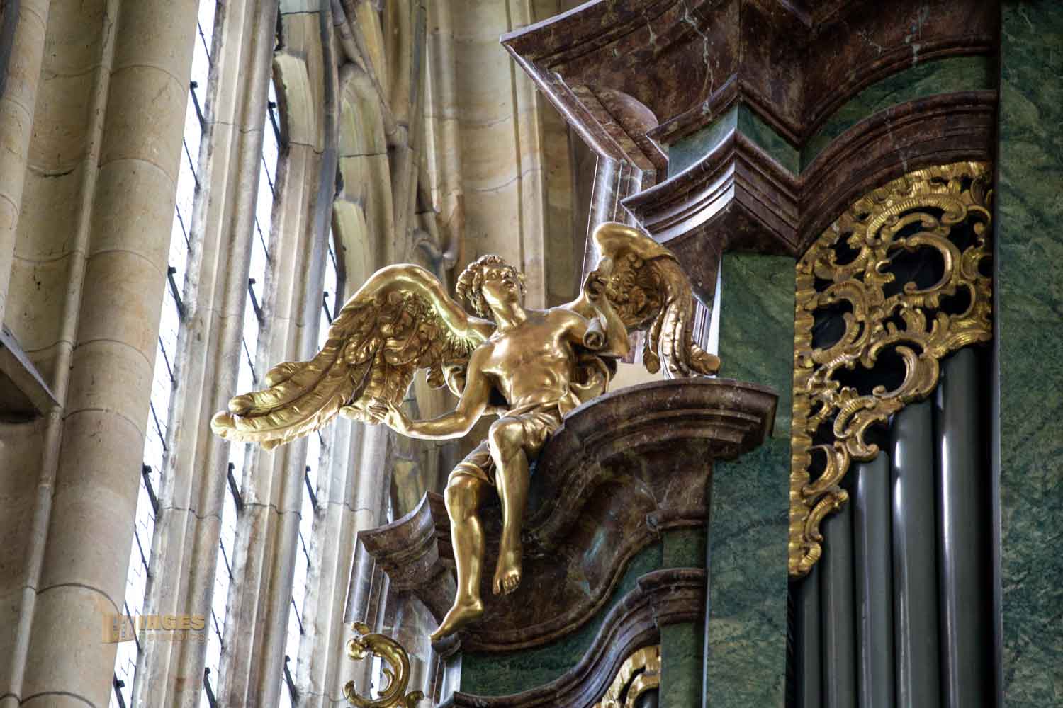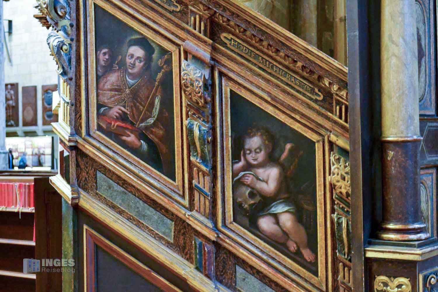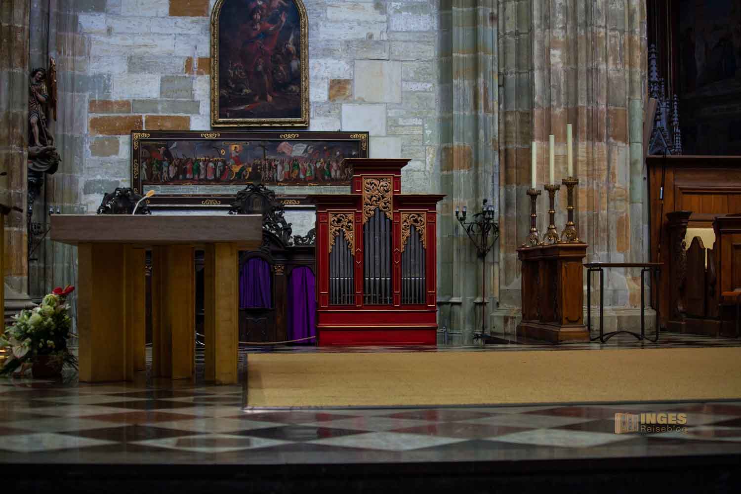 In der Empore darunter ist die derzeitige Orgel des Doms, ab 1929 wurde sie gebaut. Im Juni 2020 sollte eine dritte Orgel am Westeingang eingeweiht werden (diese Info fand ich bei meinen Recherchen). Auch bei noch so genauem Hinblicken - sorry, ich habe dort keine Orgel entdeckt. Nur noch eine kleine rote Orgel neben dem Hochaltarbereich 🙂
