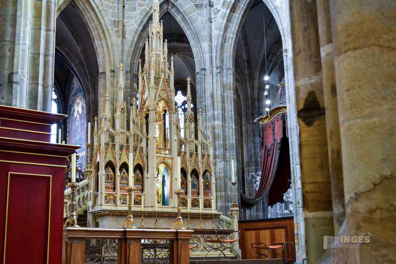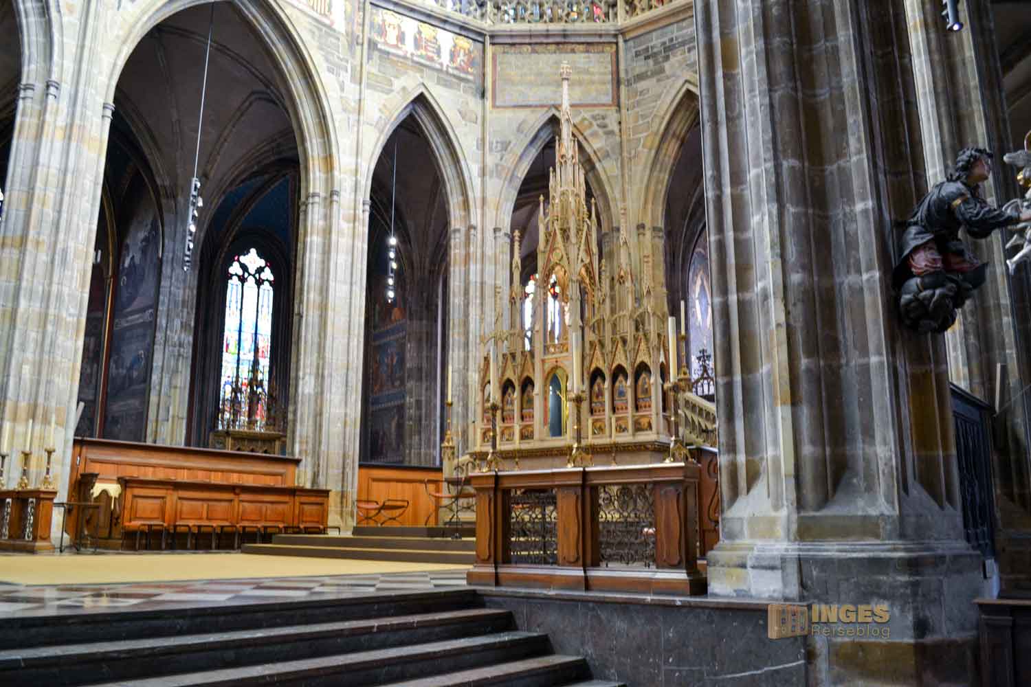 Auf dem Rundgang durch den Veitsdom fällt mir dieser moderne Holzaltar auf.