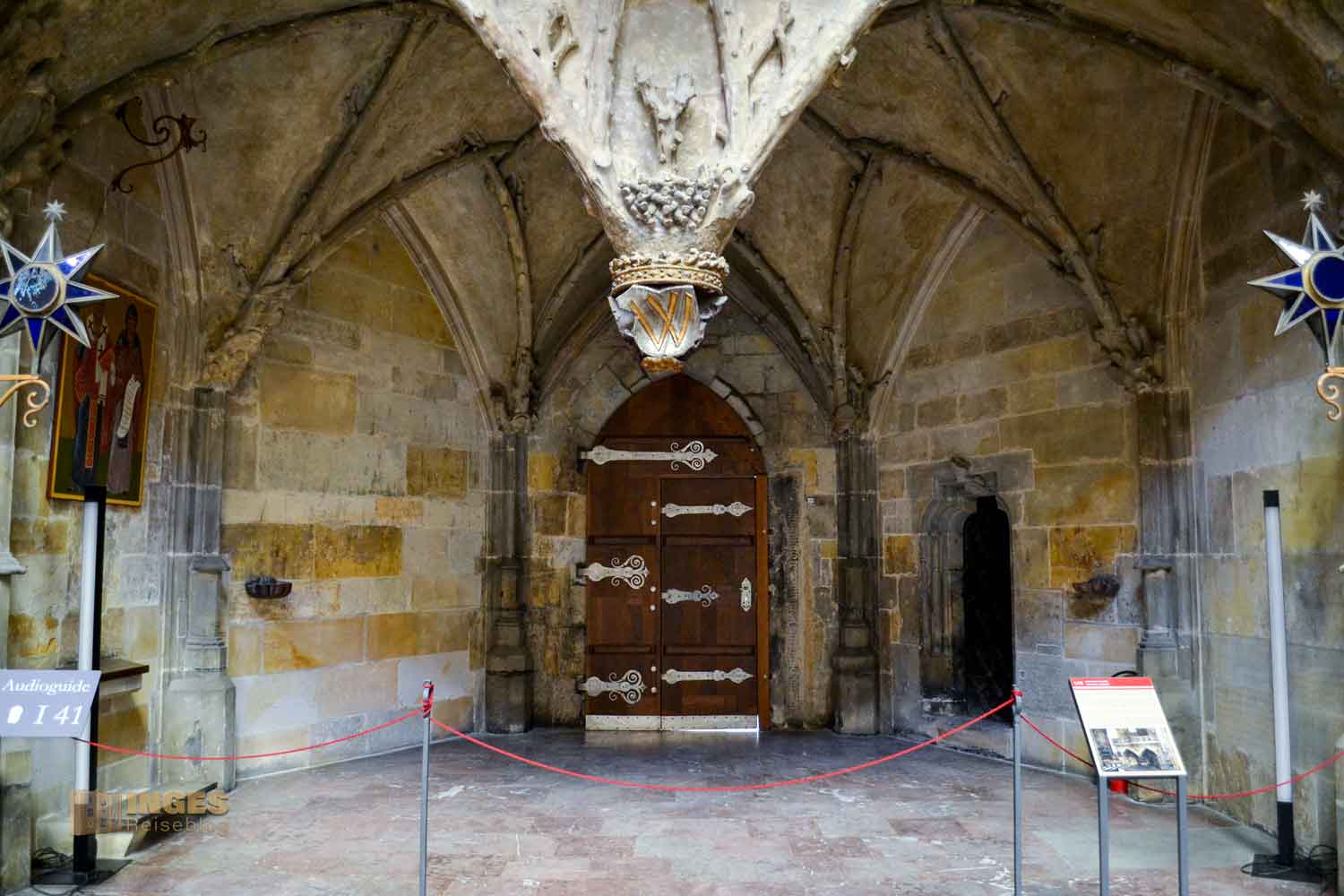 Mehr zum Leben und Wirken des Hl. Wenzels und zur Kronkammer über der Kapelle mit der Wenzelskrone erfahrt ihr in einem eigenen Beitrag.